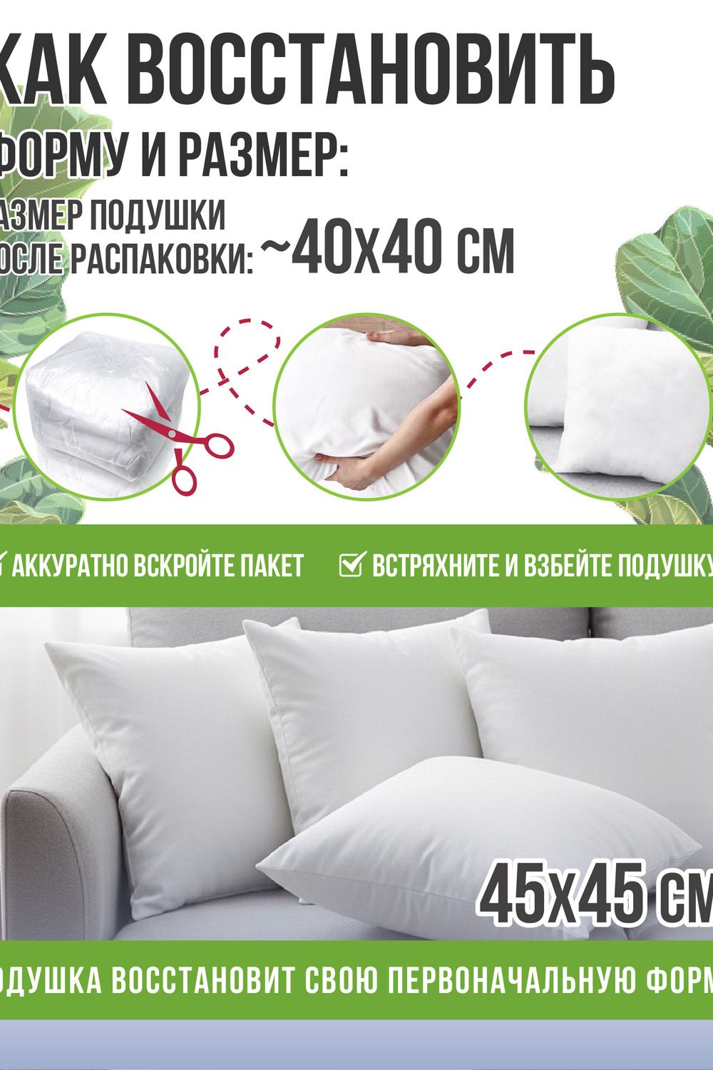 Подушки сохраняют идеальную квадратную форму 45×45 см на весь срок службы. Они не сминаются и не деформируются даже при активном использовании, обеспечивая эстетичный вид внешнего чехла.