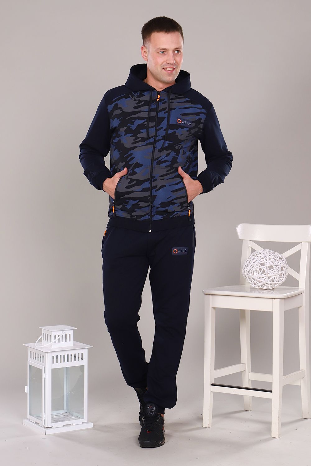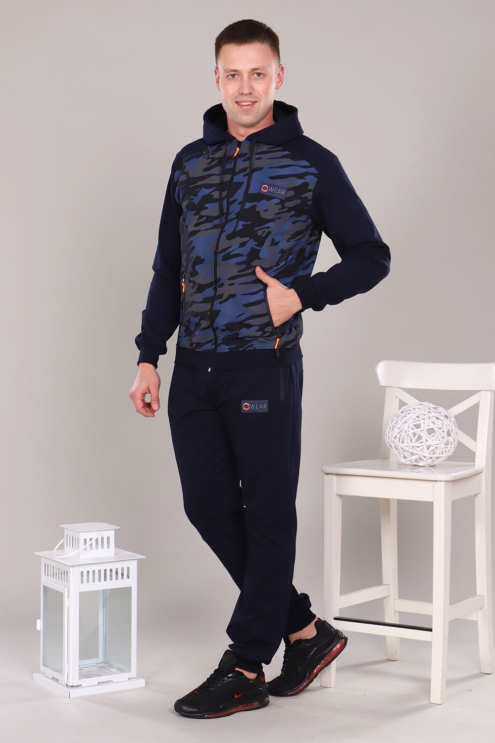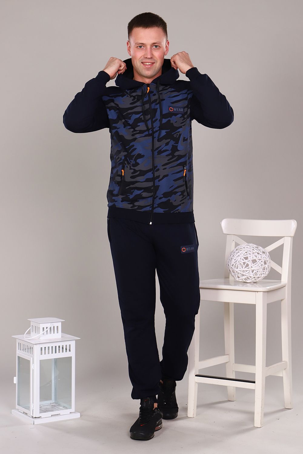 Стильный, удобный, легкий спортивный костюм, представлен в двух практичных расцветках, выполнен из футера 2-х нитки. Интересная модель с двойным капюшоном, толстовкой на молнии, низ на манжете, карманы на кофте и брюках на молнии. Модель может быть использована для прогулок, как домашний костюм, так и для спорта. Ткань отличного качества держит форму, не скатывается, не расползается. Камуфляжная расцветка всегда актуальна. Носите с удовольствием.