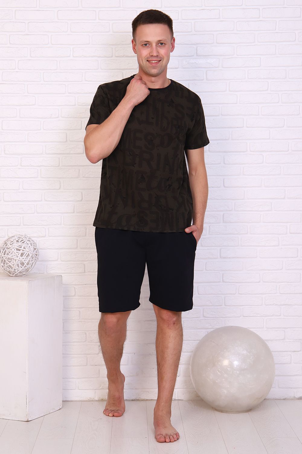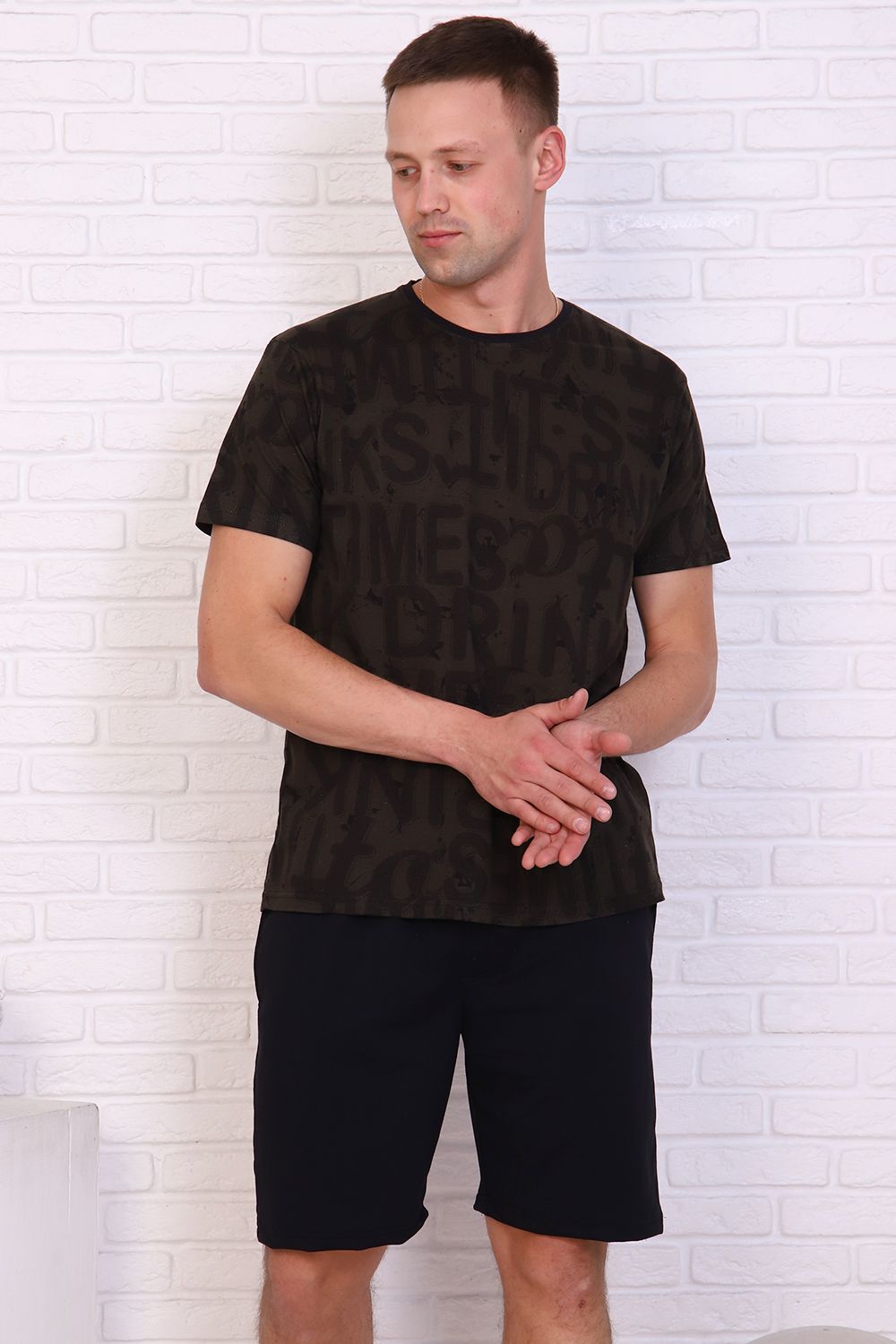 Костюм мужской комбинированный: футболка из кулирки, шорты из двухнитки. Футболка приятная к телу, хорошо пропускает воздух, не скатывается и не дает усадку. Шорты с карманами по бокам хорошо держат форму. Костюм сшит аккуратно, ткань турецкого качества - стиль и простота.