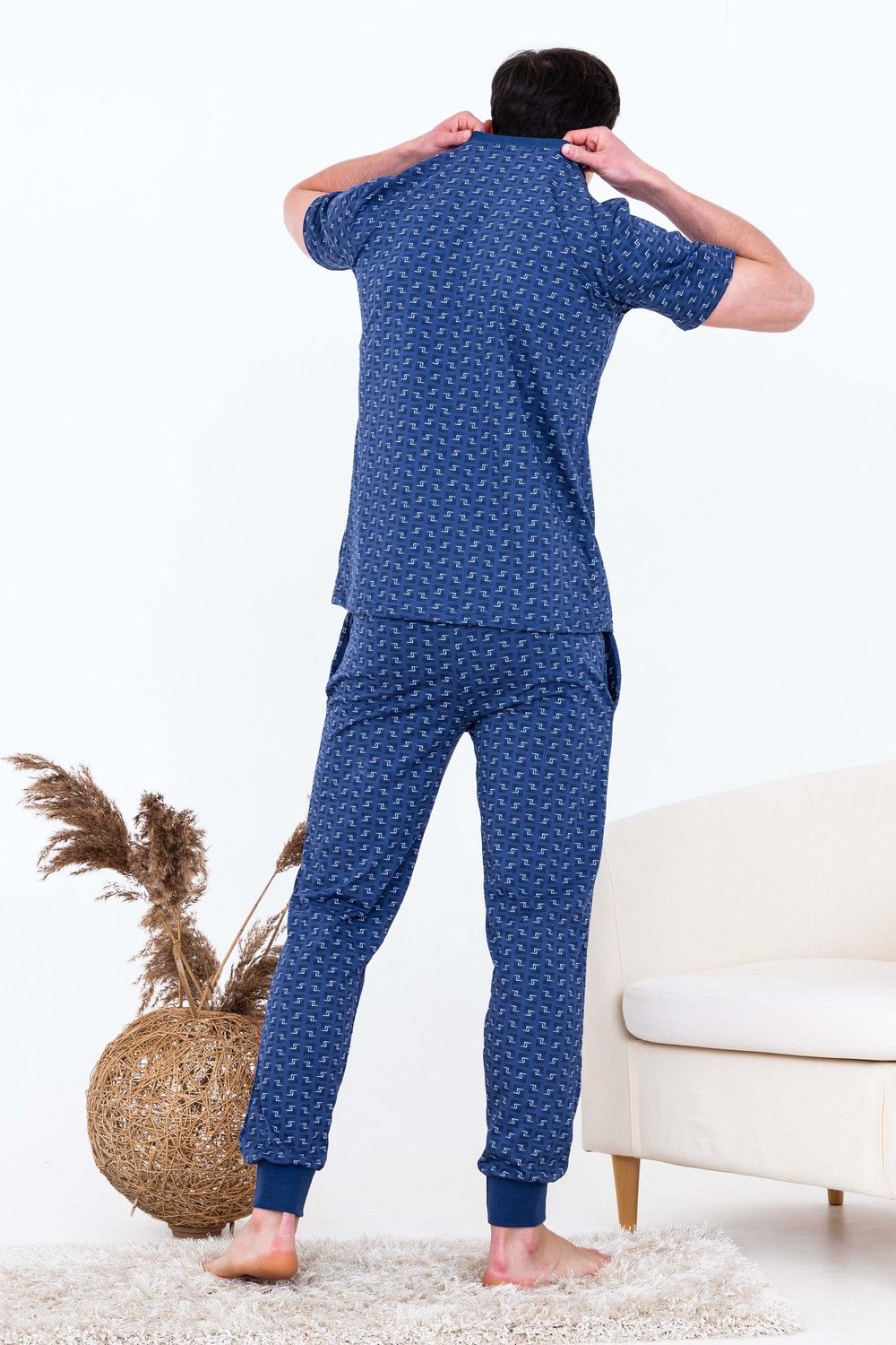 Костюм домашний из 100% хлопка. Очень уютный и удобный. Горловина и манжеты брюк выполнены из эластичной резинки-кашкорсе. Благодаря наличию лайкры в манжетах после стирки они не вытягиваются. Карманы в боковых швах брюк. Пояс на плотной резинке 2 см. Костюм можно с удовольствием носить на любимой даче.