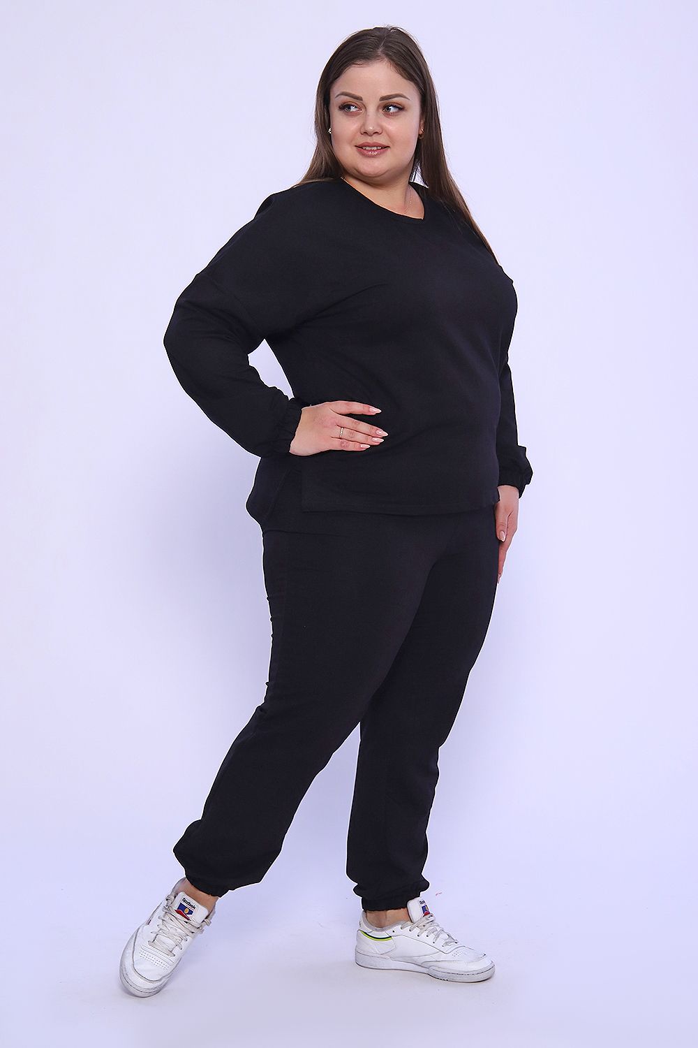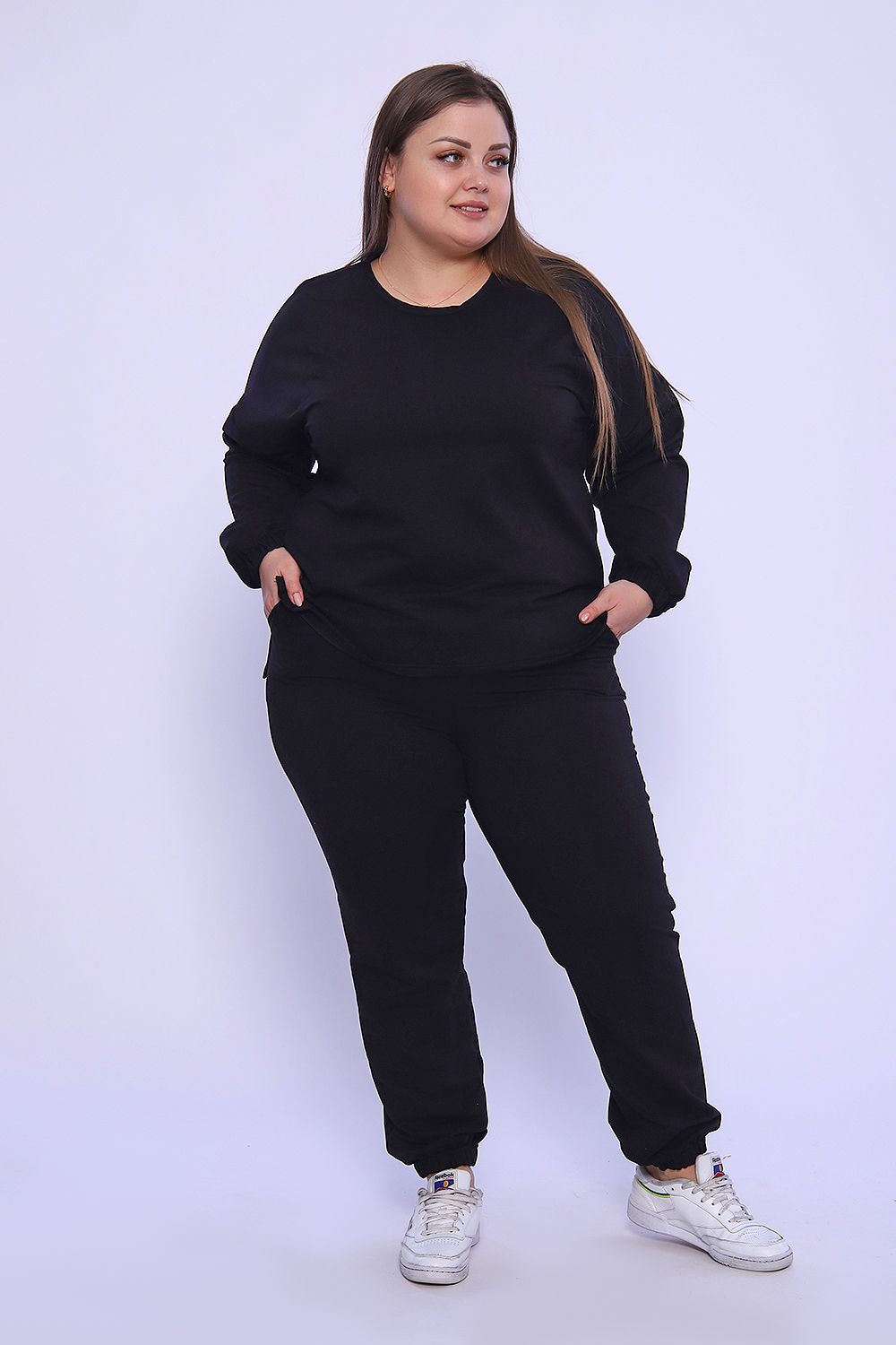 Повседневный наряд для шикарных женщин, толстовка с длинным рукавом на резинке, разрезы по бокам, брюки с карманами, резинка внизу, пояс обработан на поясной машине.