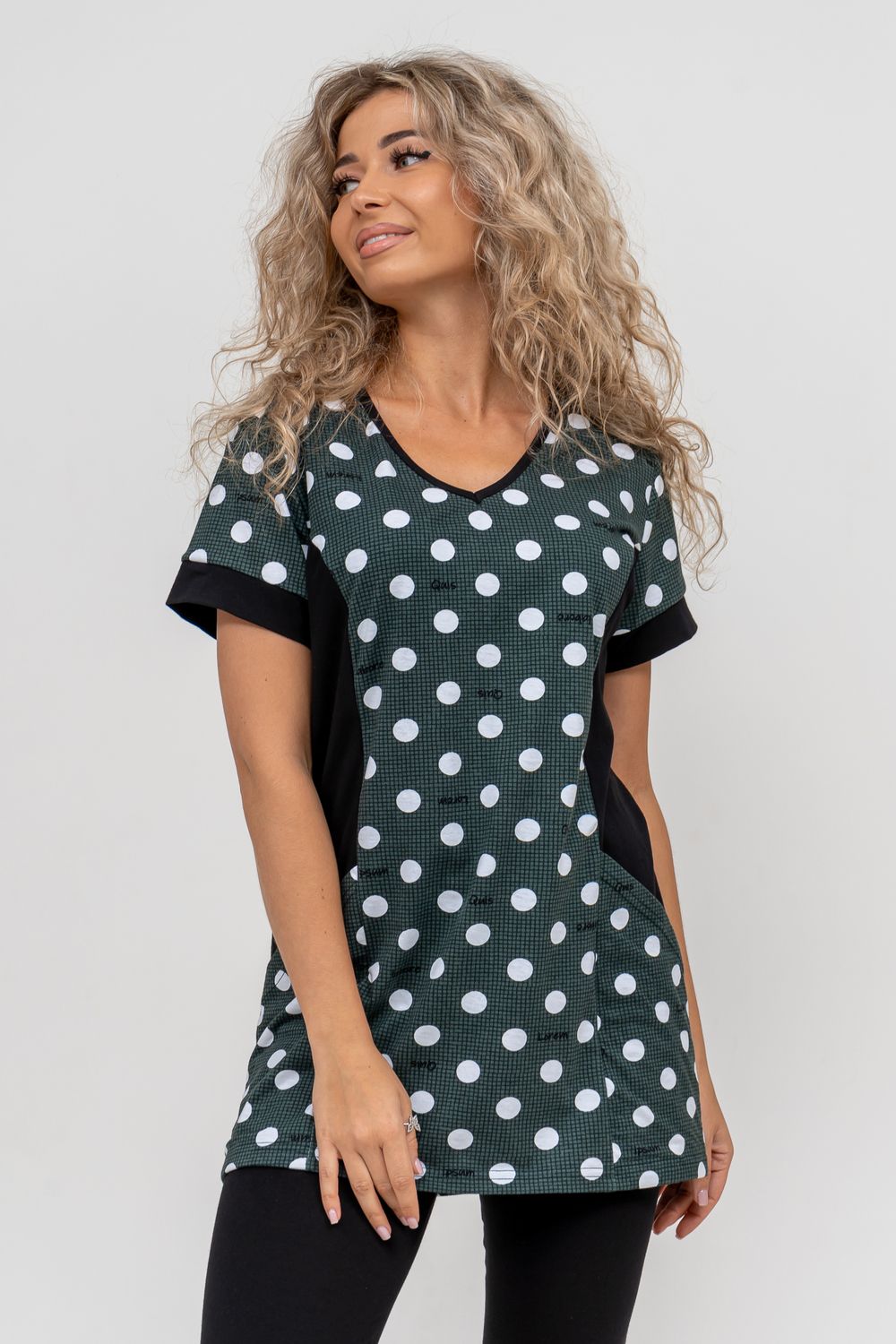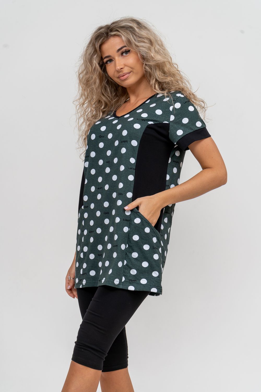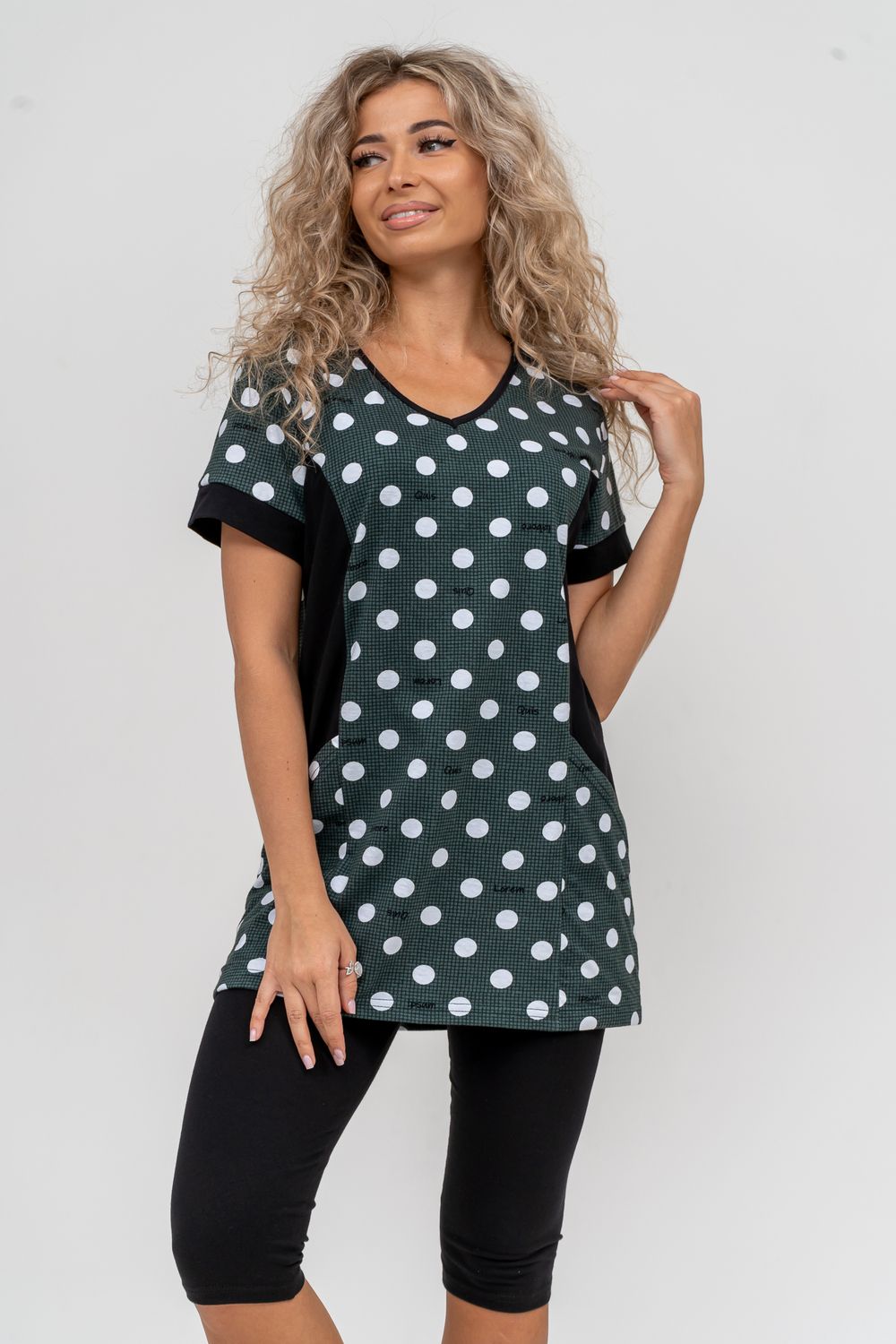Женский костюм полуприлегающего силуэта состоит из туники и бриджей. 100% дышащий хлопок туники и эластичная вискоза бриджей несут в себе удобство при носке, гигроскопичность и износостойкость. V-образный вырез горловины придаёт изделию женственный вид. Для удобства туника имеет вместительные накладные карманы и втачные рукава с манжетами. Рельефы на полочке изделия создают идеальную посадку и безупречный внешний вид. Бриджи на резинке с высокой посадкой. В костюме такого плана Вы будете чувствовать себя комфортно как дома, так и на любимой даче. Эта двойка идеально подойдет для летнего отдыха на даче, на море или просто для девушек, которые хотят чувствовать себя уютно и комфортно дома. Летний женский костюм подходит для поездок и путешествий, загородного отдыха на природе, а также для получения лечения в больнице или санатории. Повседневное хлопковое изделие с бриджами - отличная идея для подарка любимой жене, маме, сестре или подруге на день рождения, 8 Марта или по любому другому приятному поводу. Рекомендация: для того чтобы продлить яркую жизнь Вашему костюму для дома и отдыха из хлопка, стирку производить при температуре не выше 30 градусов, а во избежание деформации изделия не прибегать к ручному отжиму (не перекручивать), утюжить слегка недосушенное изделие утюгом на паровом режиме. Покупайте наши красивые и удобные домашние костюмы с бриджами и носите с удовольствием! Приятных покупок!