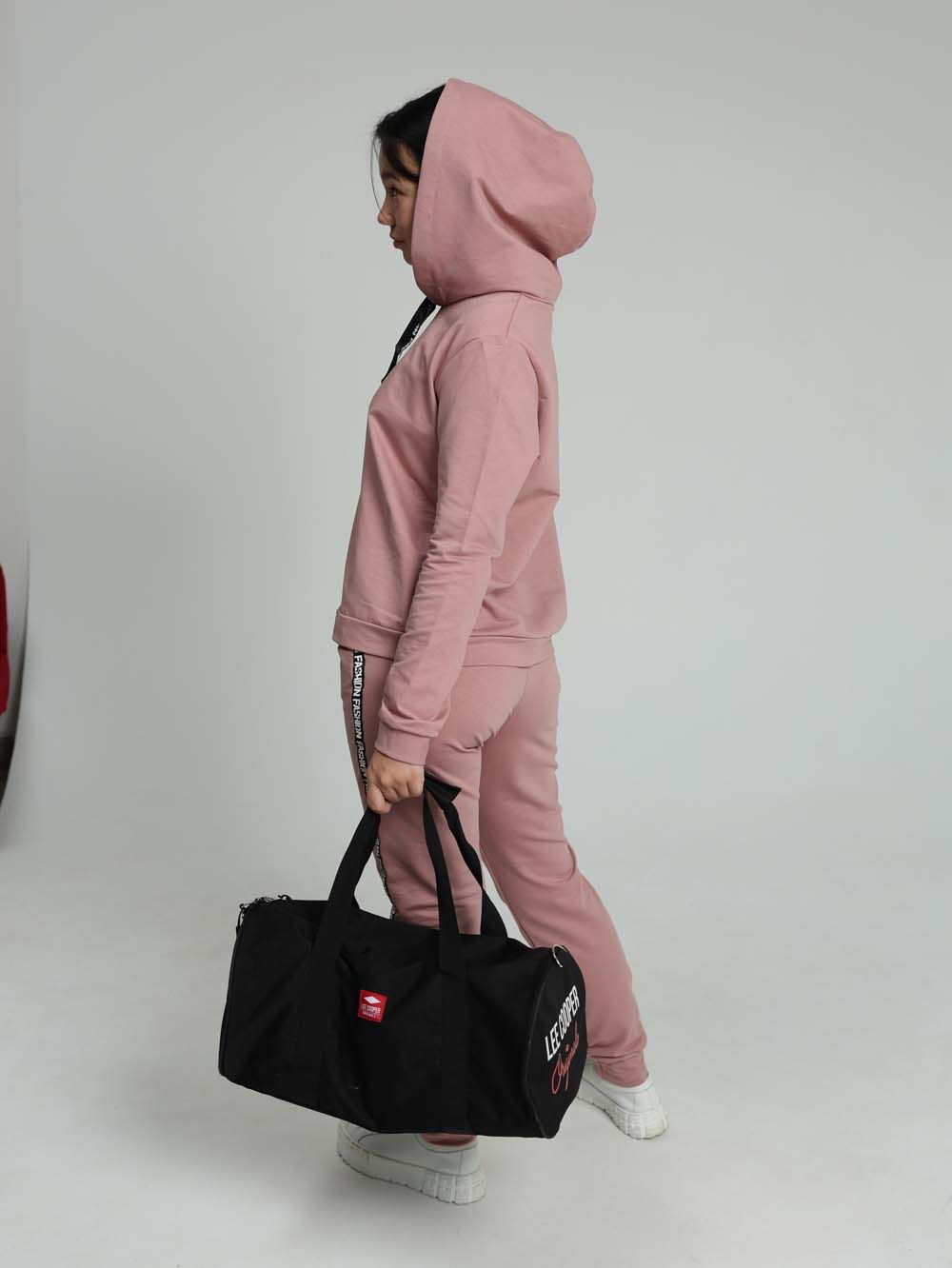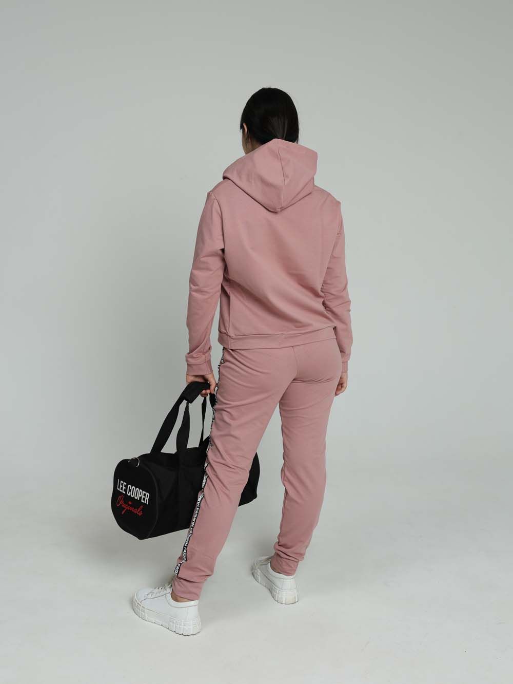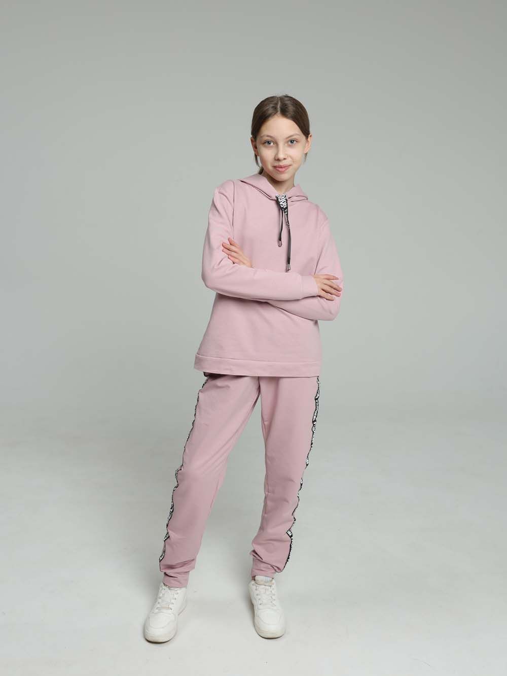 Стильный костюм с брюками сшит из трикотажного полотна высокого качества - футера двухнитки. Лицевая сторона футера гладкая, изнаночная - петлеобразная. Это полотно выполнено из хлопковой пряжи пенье, прошедшей обработку. Такой трикотаж устойчив к истиранию, появлению затяжек и катышков, меньше мнется и хорошо держит форму. Манжеты из резинки-кашкорсе. Лампасы с надписями визуально добавляют стройности. За счёт уникальных авторских лекал современный костюм выигрышно смотрится на стандартной фигуре любого размера. Практичный костюм в спортивном стиле будет удобным и комфортным во многих ситуациях. Универсальный костюм идеален для встреч с друзьями и прогулок, активного отдыха и любительского спорта, для поездок и путешествий, для дома, улицы, дачи, для похода в магазин и поездки на пикник. Этот модный качественный костюм с удобной посадкой отлично подойдет для невысоких девушек и женщин ростом до 165 см.