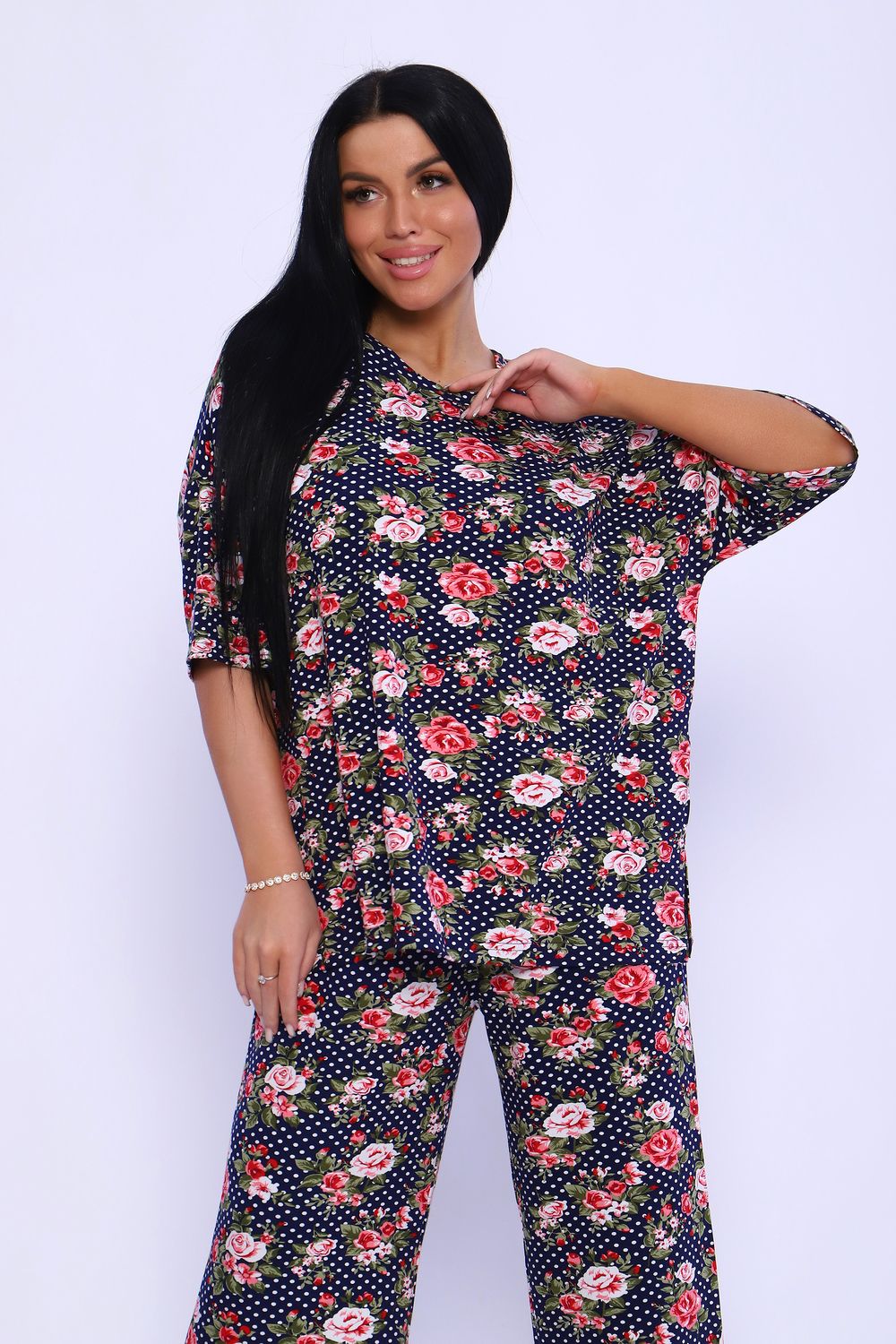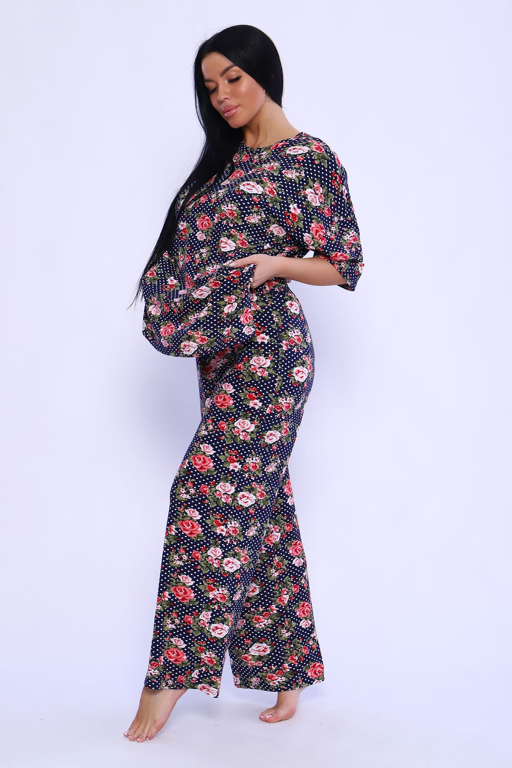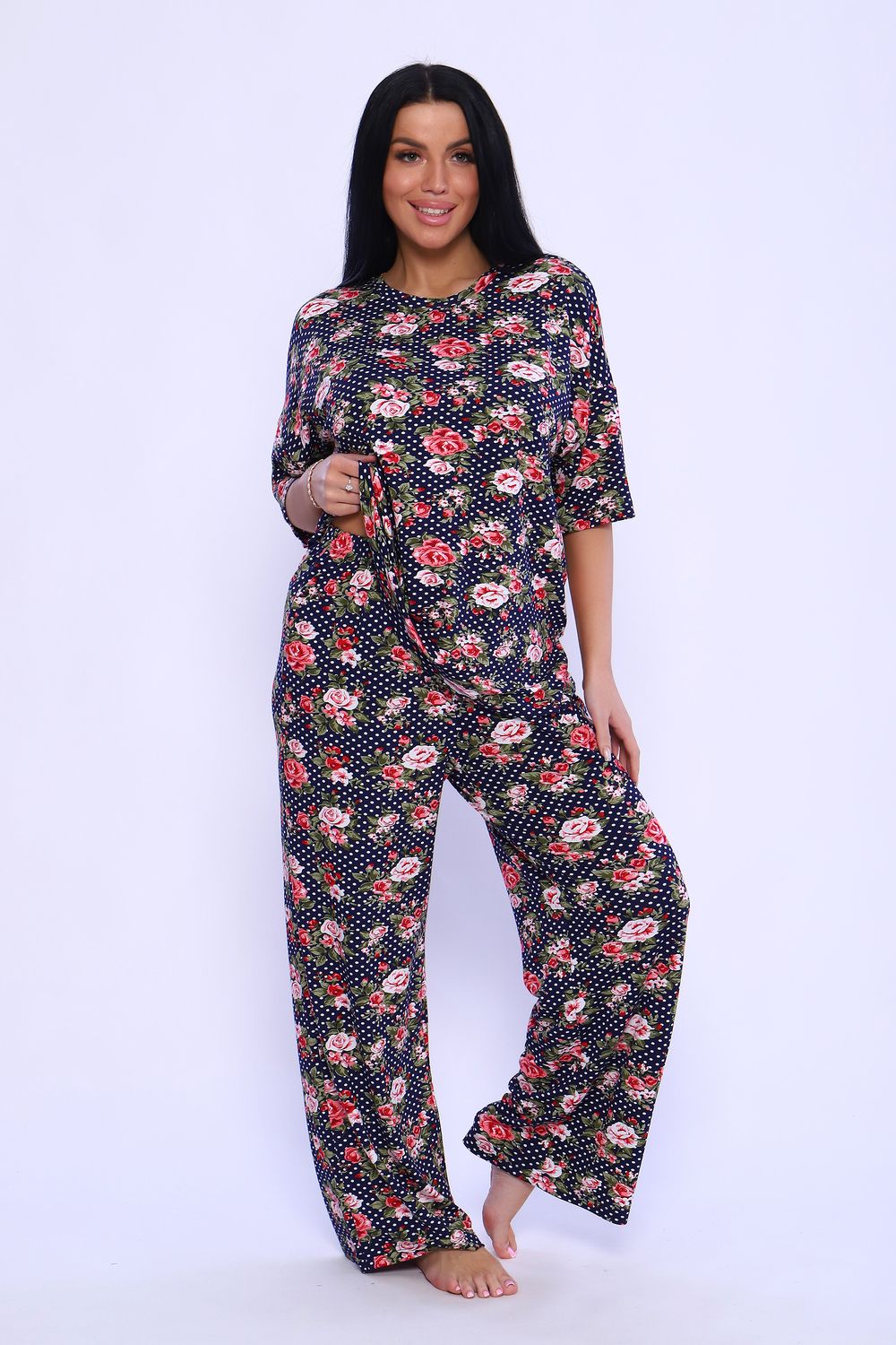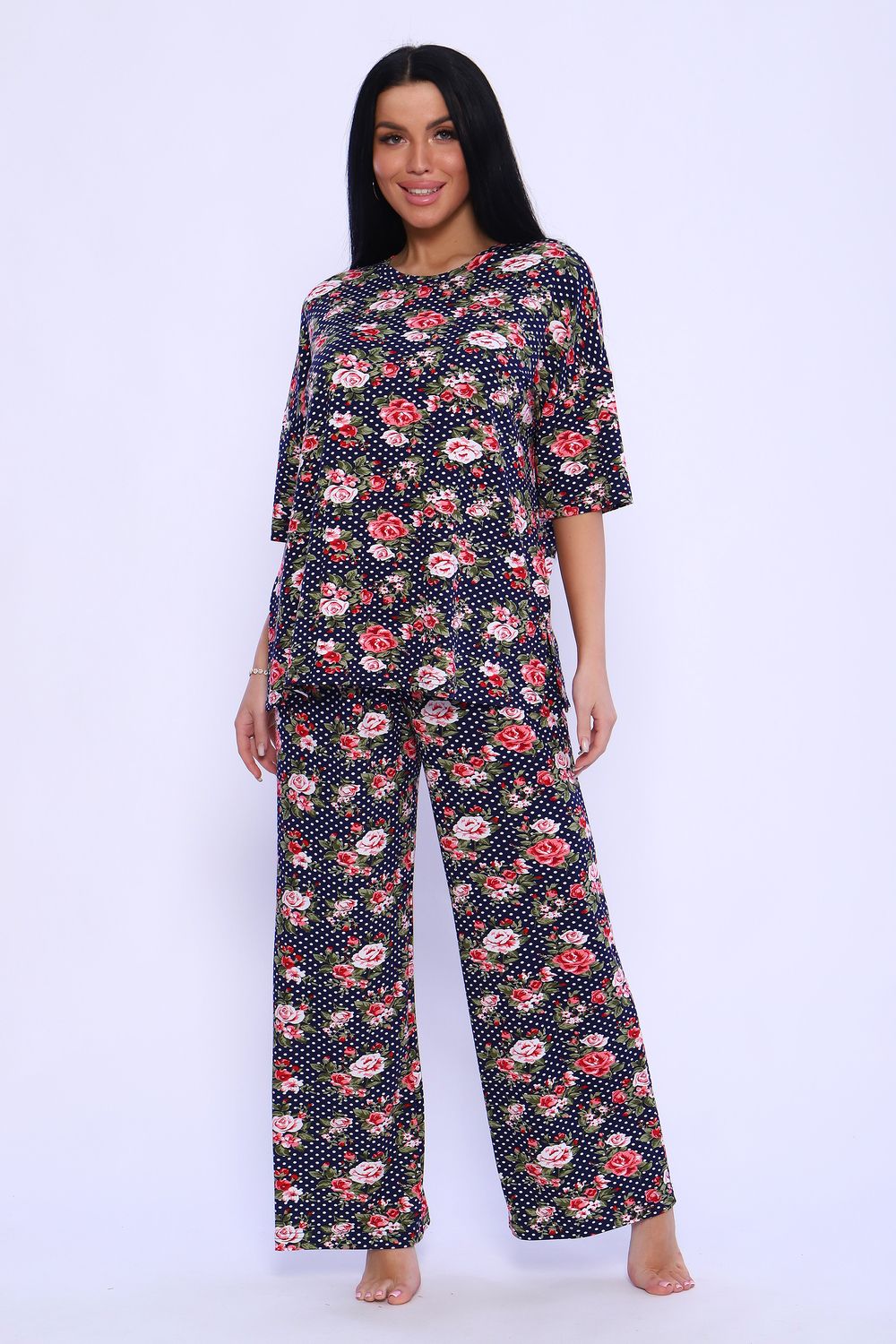 Женский костюм из вискозы с лайкрой кофта + брюки, кофта свободная с короткими рукавами и разрезом по бокам. Брюки "палаццо" с высокой посадкой, Костюм прекрасно подойдёт для дома, обращаем ваше внимание что модель свободного покроя и указанные размеры подходят и для девушек на размер больше, например размер 48 подходит девушка 48 и 50.