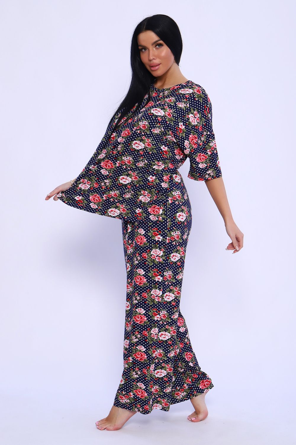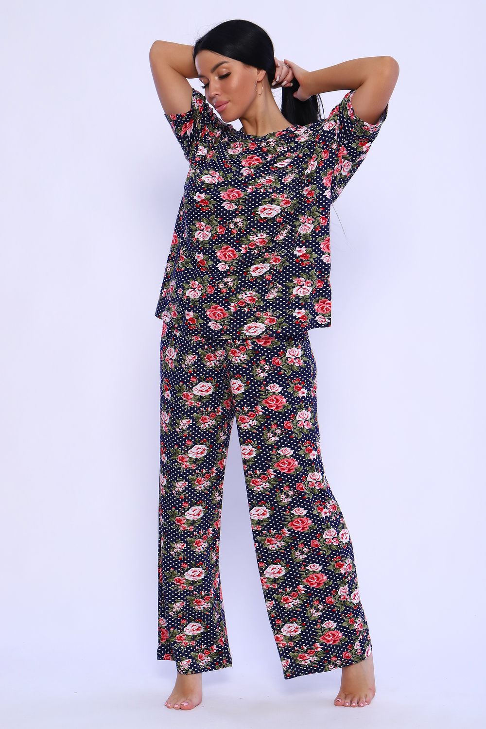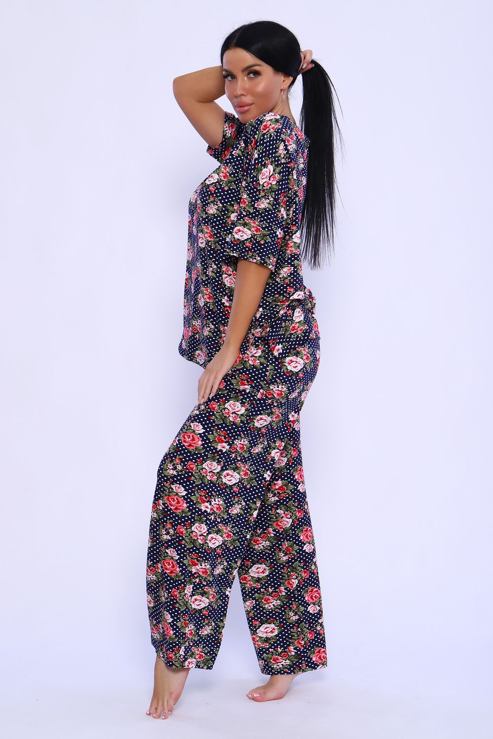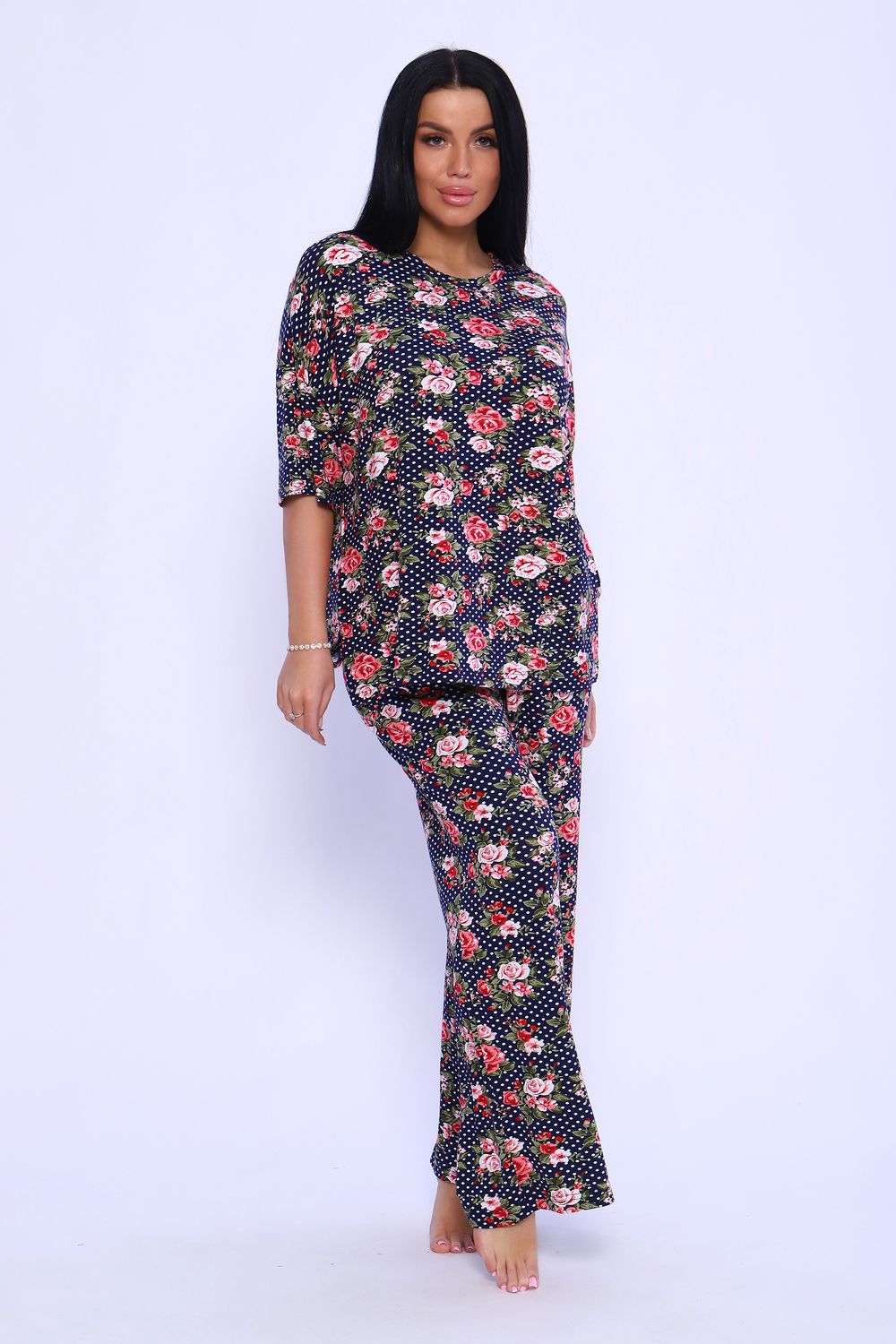 Женский костюм из вискозы с лайкрой кофта + брюки, кофта свободная с короткими рукавами и разрезом по бокам. Брюки "палаццо" с высокой посадкой, Костюм прекрасно подойдёт для дома, обращаем ваше внимание что модель свободного покроя и указанные размеры подходят и для девушек на размер больше, например размер 48 подходит девушка 48 и 50.