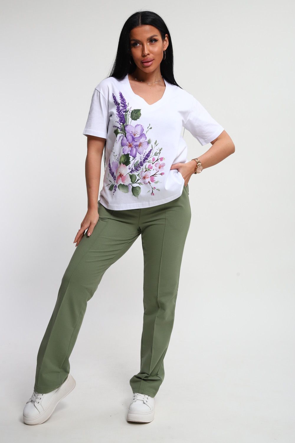Костюм женский – это стильный и идеальный предмет гардероба ,идеально подходящий для дома и отдыха на любой период :весенний ,осенний, летний и зимний . Комплект состоит из футболки с красочным принтом и брюки в контрастном цвете. В составе ткани 100% хлопок . Хлопковый материал очень комфортный и лёгкий в носке . Брюки с удобной посадкой придадут вашему образу стильный и модный вид . Базовый современный костюмчик – популярный повседневный выбор на каждый день : на работу , для прогулок , праздников и на дачу . Универсальный стиль позволит вам создавать разнообразные образы , подходящие для любого события.
