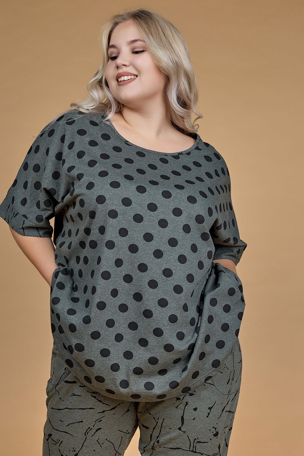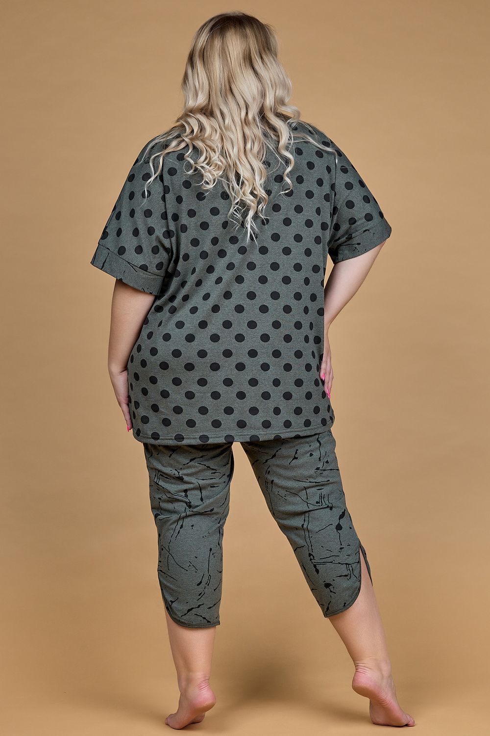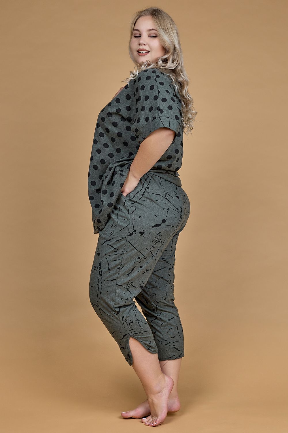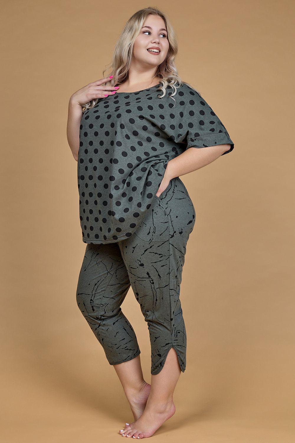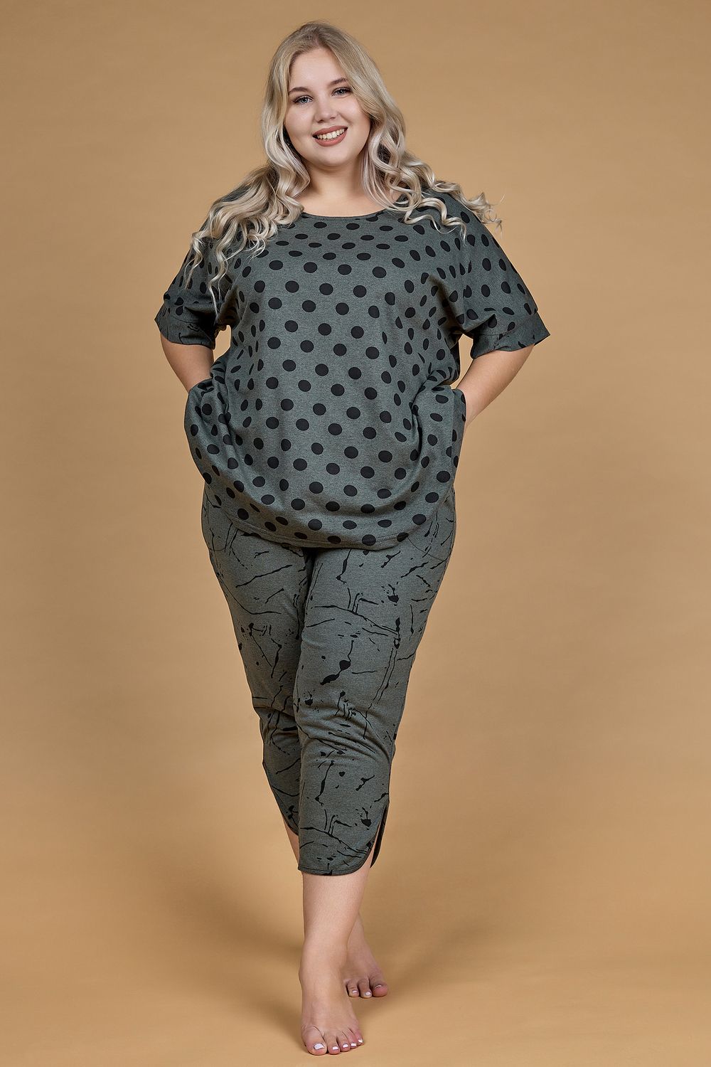 Костюм больших размеров для дома и дачи - это идеальный выбор для комфортного отдыха. Сшит из 100% хлопка, он приятен к телу и позволяет коже дышать. Укороченные брюки и свободный крой обеспечивают максимальную свободу движений, а накладные карманы - удобство хранения мелочей. Яркий рисунок добавит настроения, а трикотажная фактура материала подарит ощущение уюта. Этот костюм станет незаменимым для дома, дачи, а также для будущих мам.