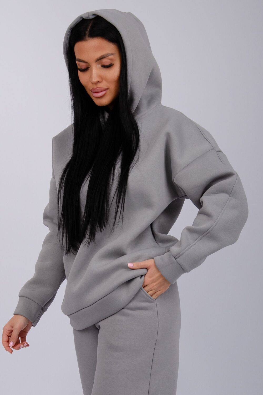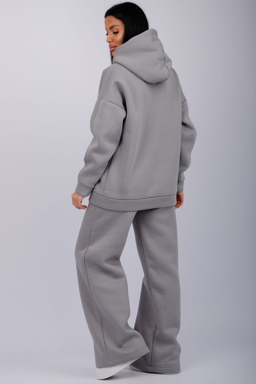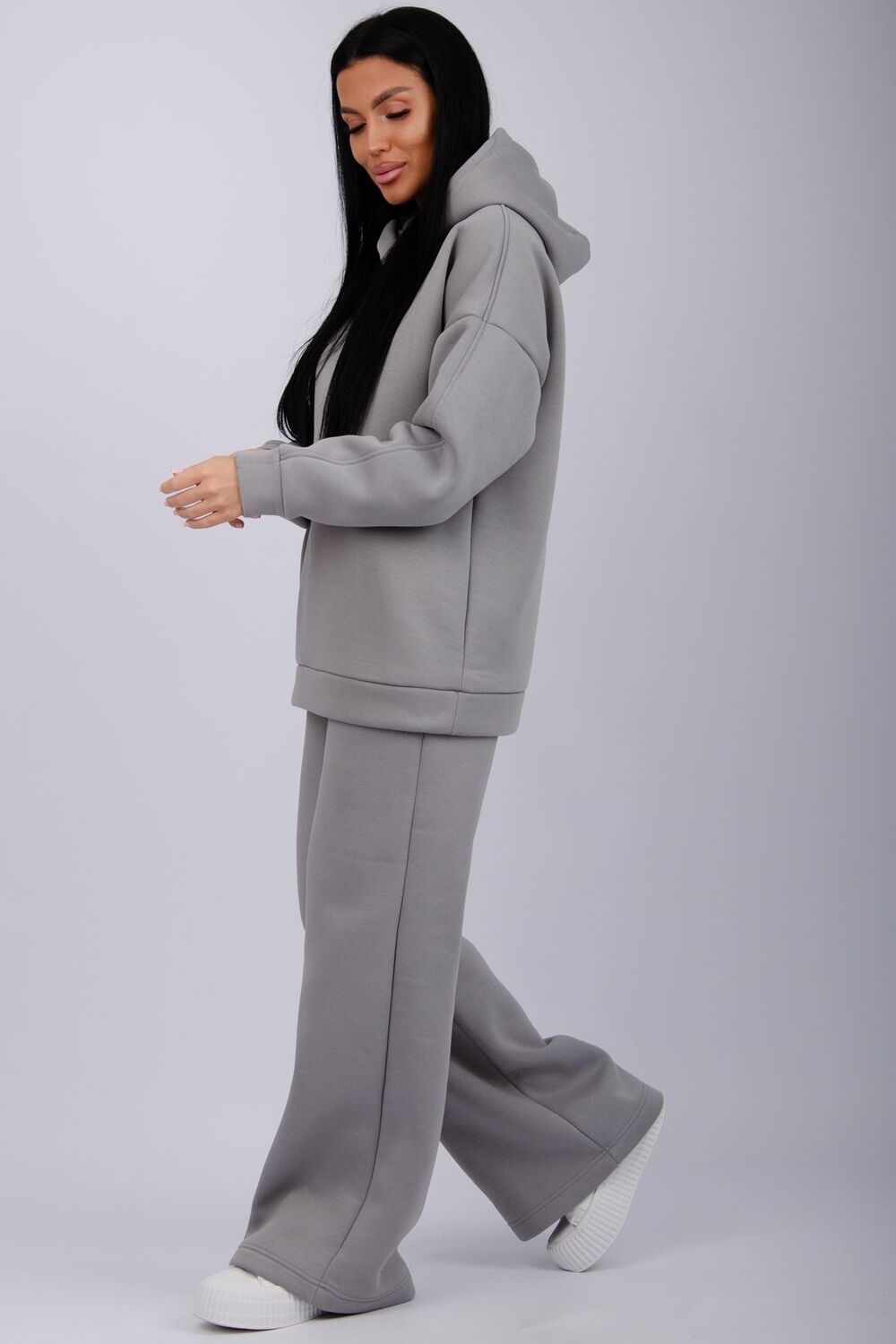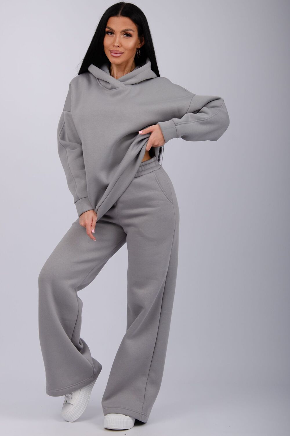 Теплый женский спортивный костюм из плотного футера, который выполнен из 3-х ниточного трикотажного полотна с начесом. Утепленное худи прямого силуэта с втачным спущенным рукавом и капюшоном, брюки палаццо на резинке свободного кроя подходит для прогулок и занятия спортом в прохладную погоду. Благодаря натуральному составу ткани, костюм прекрасно подходит для прохладной погоды, он выполнен из мягкого хлопка с лицевой стороны и с начесом внутри.