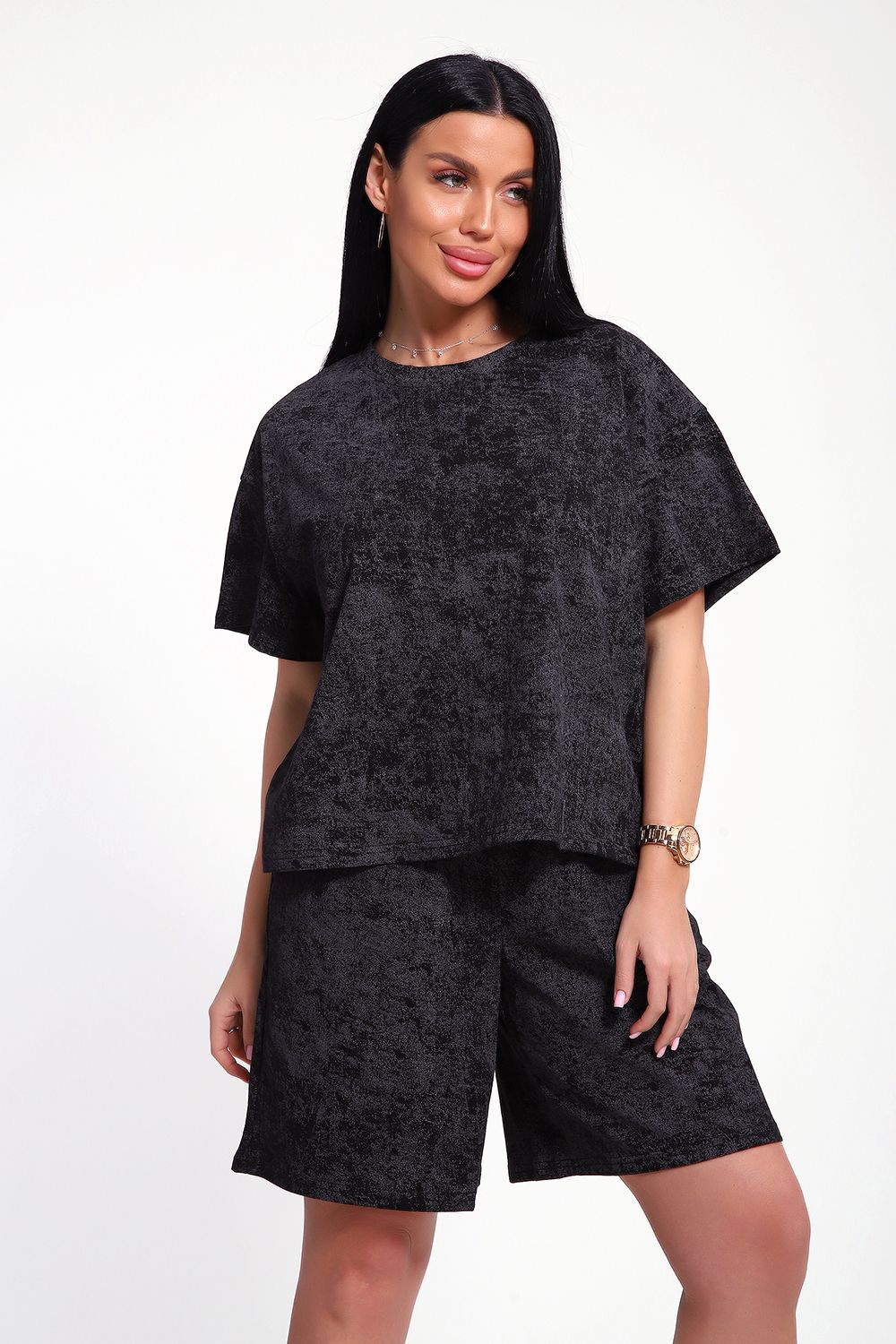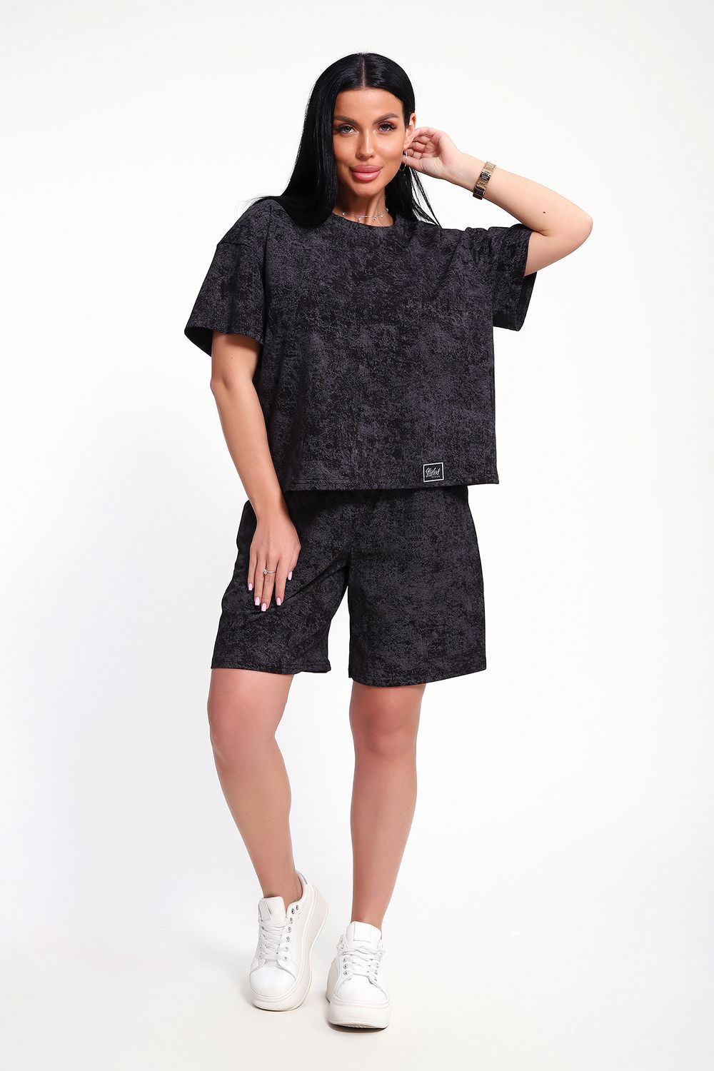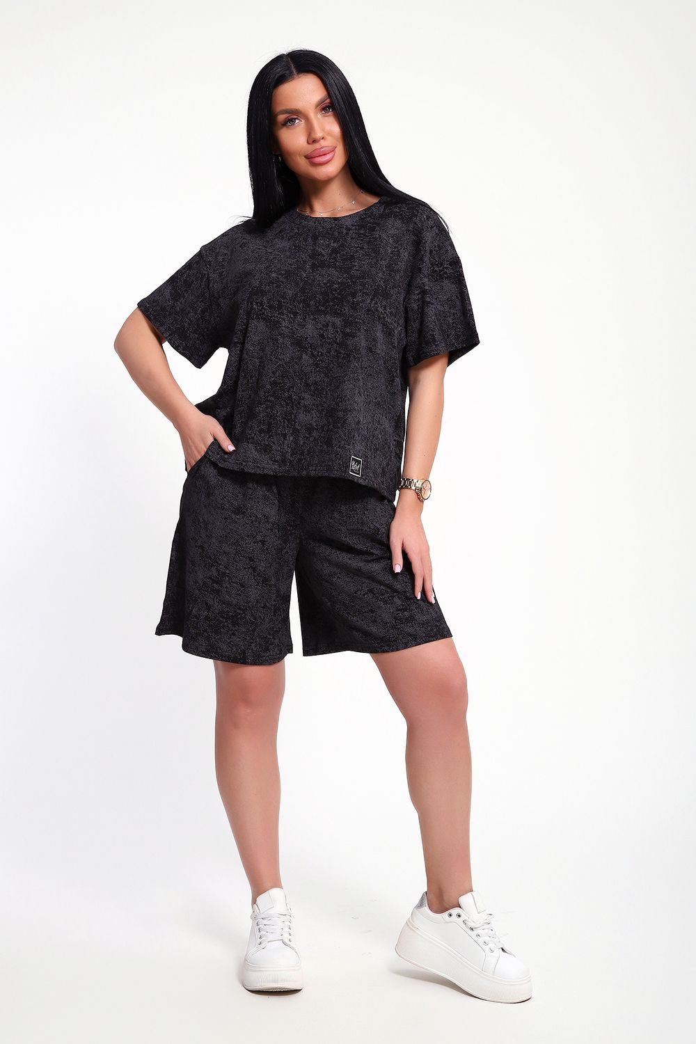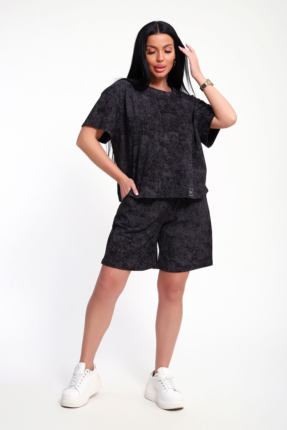 Женский домашний костюм-двойка фасона оверсайз - это стильный и очень уютный вариант, который подойдет всем без исключения. Он отлично сядет на любой тип фигуры и рост, благодаря своему свободному крою. Костюм изготовлен из высококачественного материала - кулирка (100% хлопок), который не только приятен на ощупь, но и обеспечивает комфорт во время носки благодаря своей хорошей воздухопроницаемости. Модный летний костюмчик имеет свободный крой, который не стесняет движений. Он состоит из футболки и шорт. Футболка со спущенной линией плеча и коротким рукавом, горловина круглая. Широкие шорты с эластичным поясом на резинке. Этот костюм-двойка - отличный выбор для домашнего отдыха или для летних прогулок. Он не только стильный, но и очень удобный. Так что, если вы ищете комфортный и модный вариант для своего гардероба, то этот костюм-двойка - именно то, что вам нужно!
