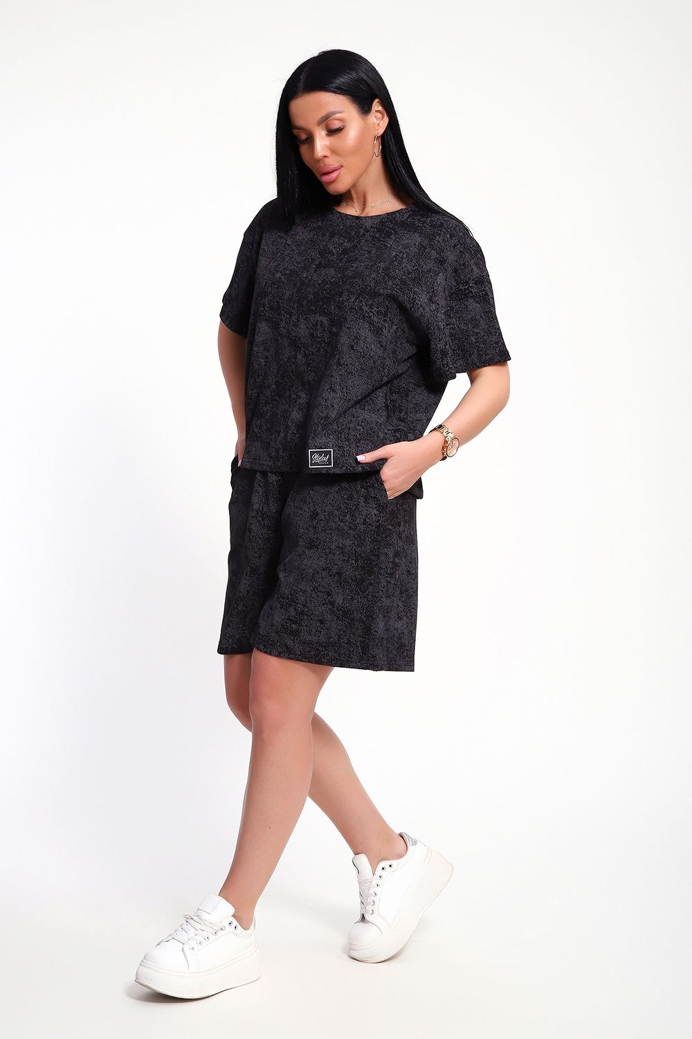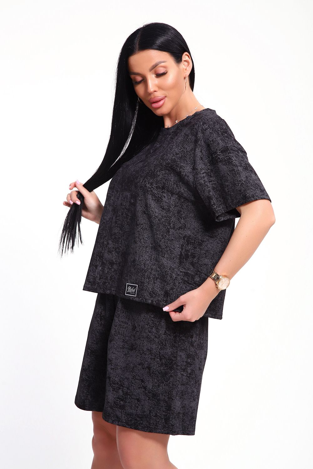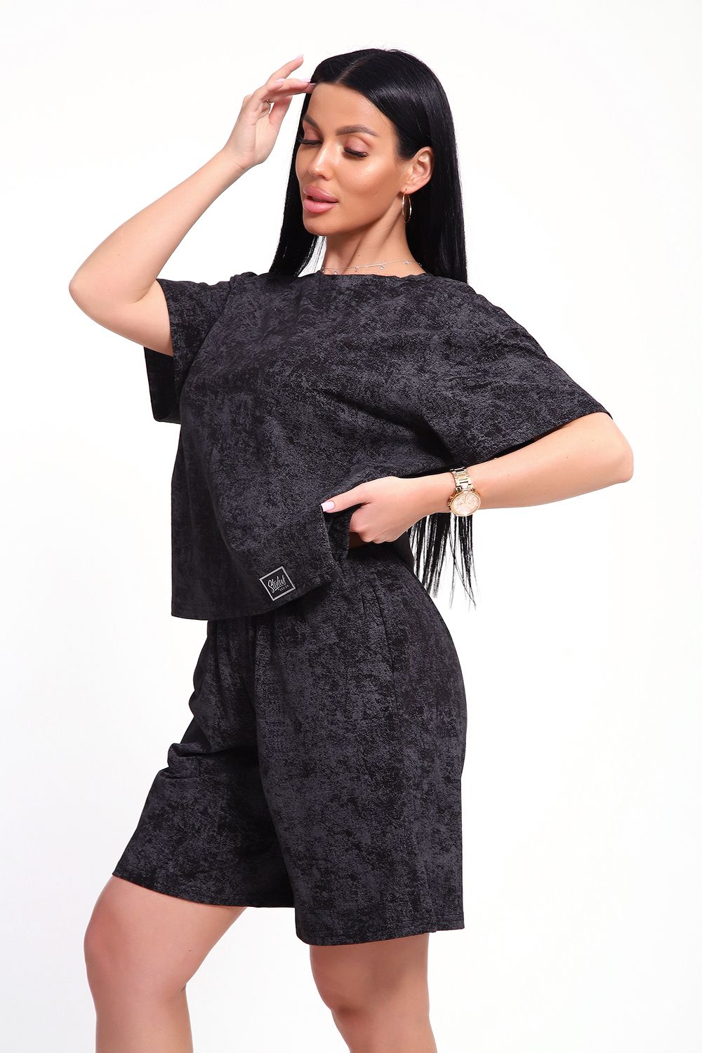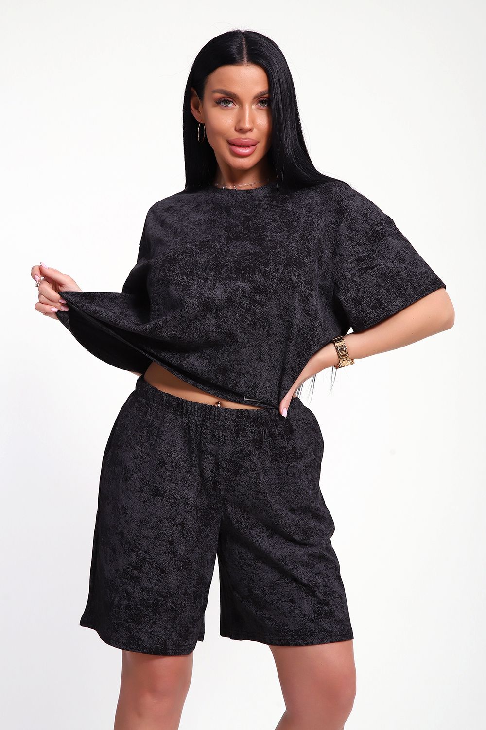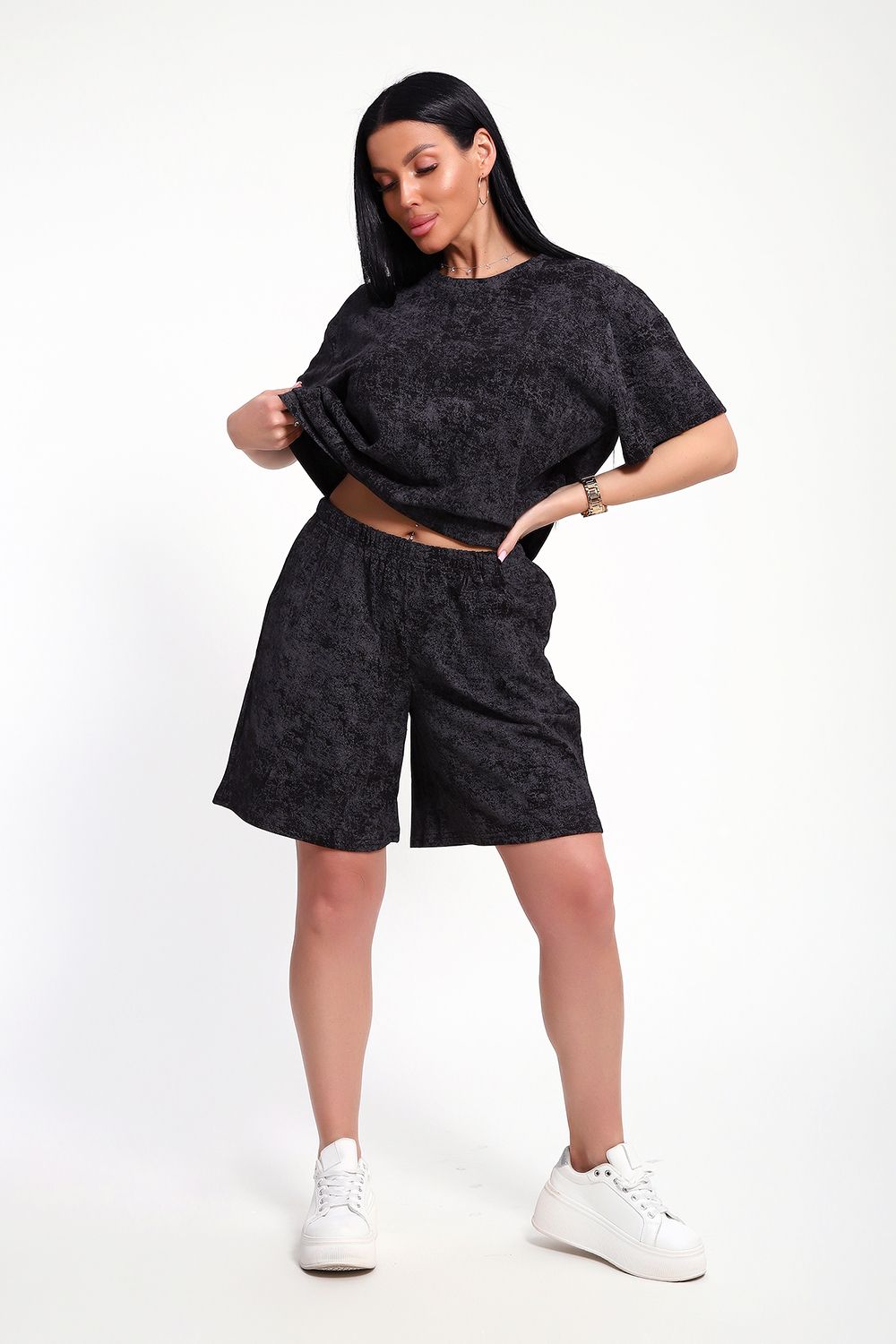 Женский домашний костюм-двойка фасона оверсайз - это стильный и очень уютный вариант, который подойдет всем без исключения. Он отлично сядет на любой тип фигуры и рост, благодаря своему свободному крою. Костюм изготовлен из высококачественного материала - кулирка (100% хлопок), который не только приятен на ощупь, но и обеспечивает комфорт во время носки благодаря своей хорошей воздухопроницаемости. Модный летний костюмчик имеет свободный крой, который не стесняет движений. Он состоит из футболки и шорт. Футболка со спущенной линией плеча и коротким рукавом, горловина круглая. Широкие шорты с эластичным поясом на резинке. Этот костюм-двойка - отличный выбор для домашнего отдыха или для летних прогулок. Он не только стильный, но и очень удобный. Так что, если вы ищете комфортный и модный вариант для своего гардероба, то этот костюм-двойка - именно то, что вам нужно!