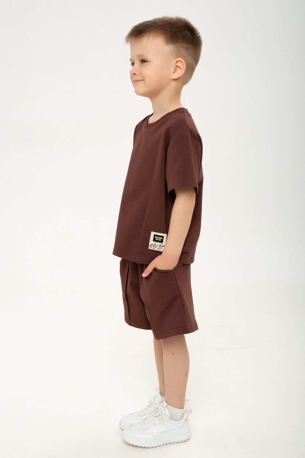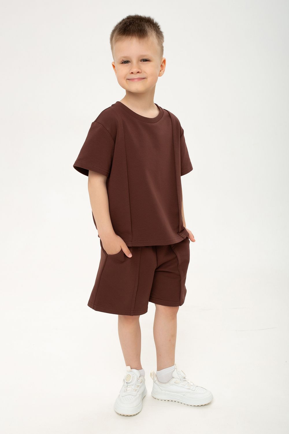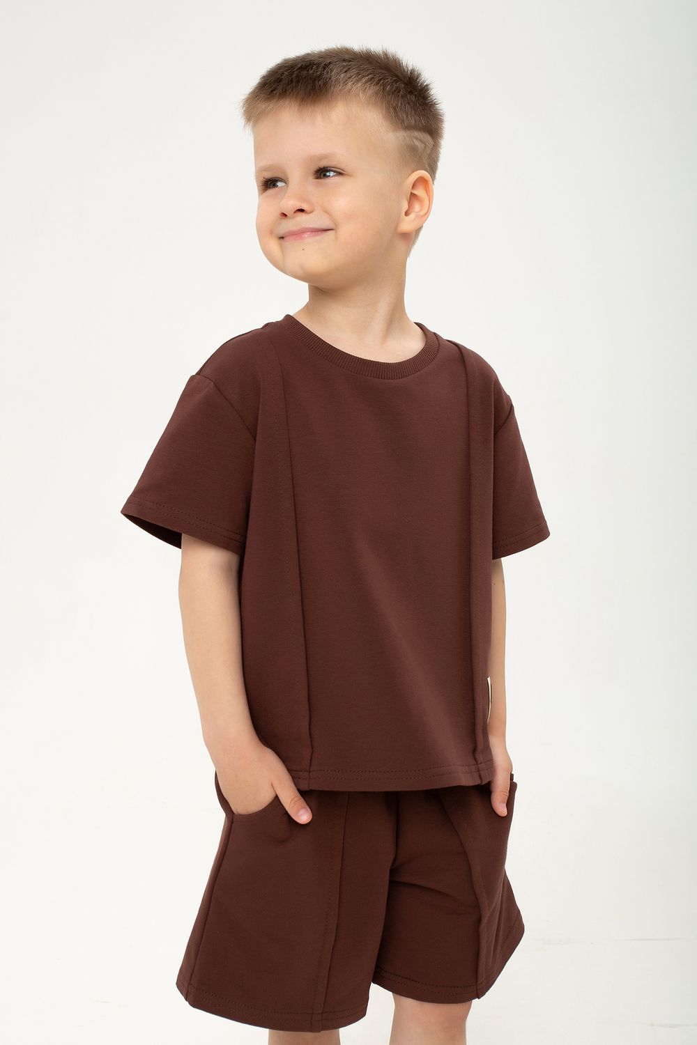 Футболка оснащена короткими рукавами и свободно сидит на теле, позволяя ребенку активно двигаться и играть без ограничений. А шорты с мягким поясом на резинке обеспечивают идеальный комфорт и дополнительную свободу действий, а вместительные боковые карманы удобно разместят мелкие игрушки и необходимые мелочи.