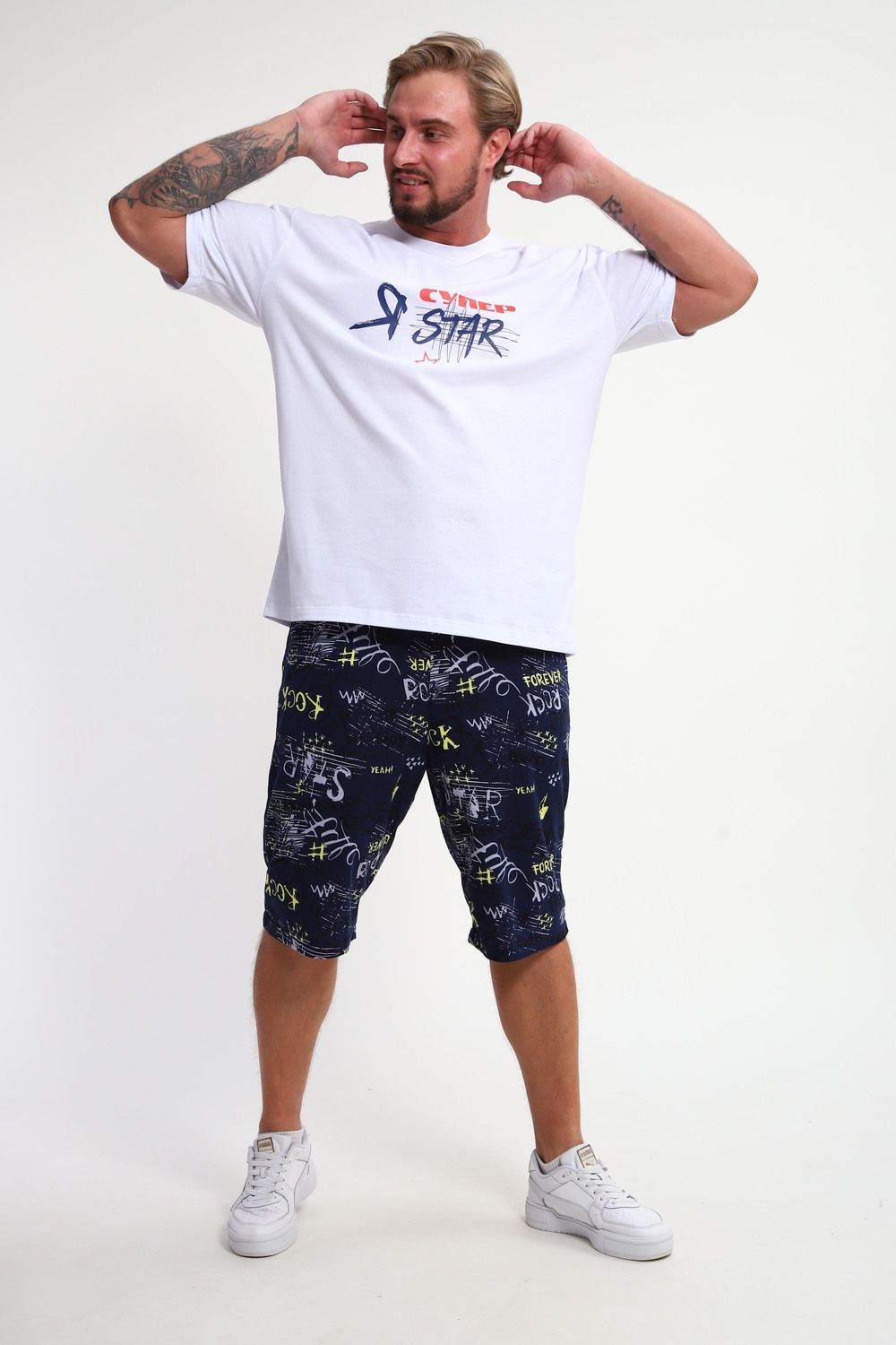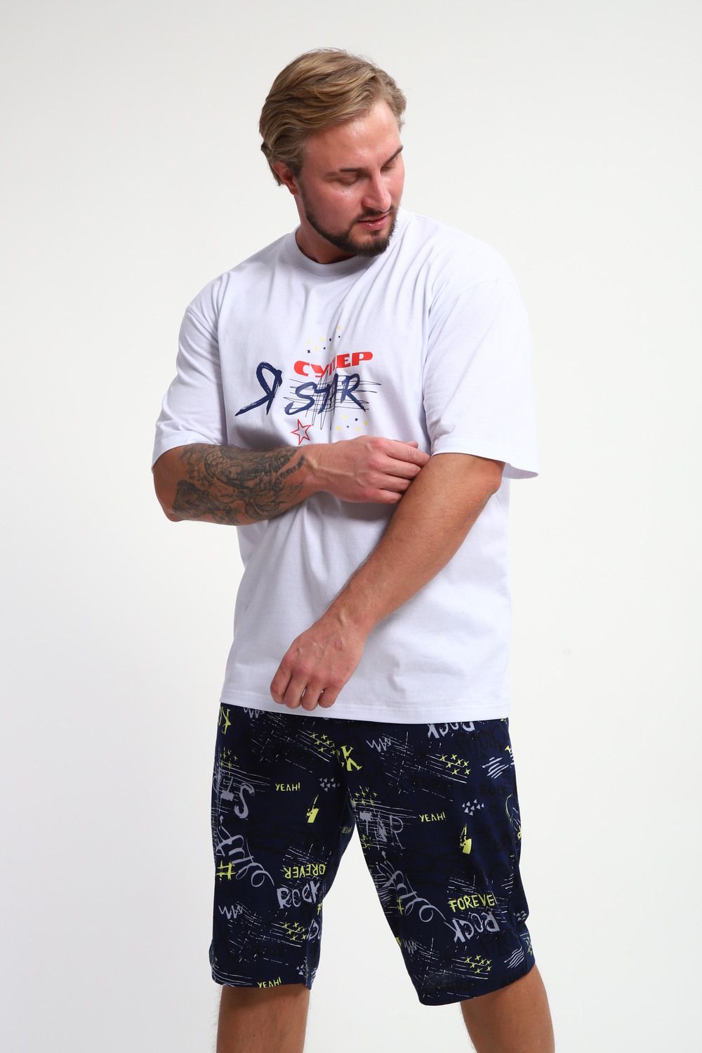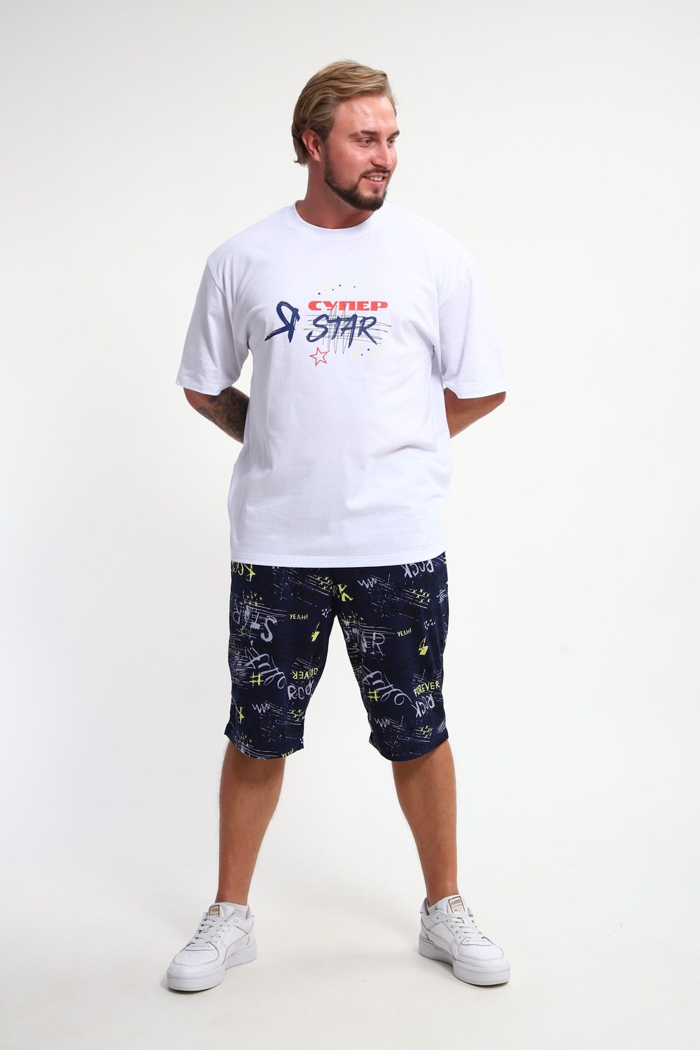 Костюм домашний мужской КМ-01 - синий/желтый/белый Буквы Star