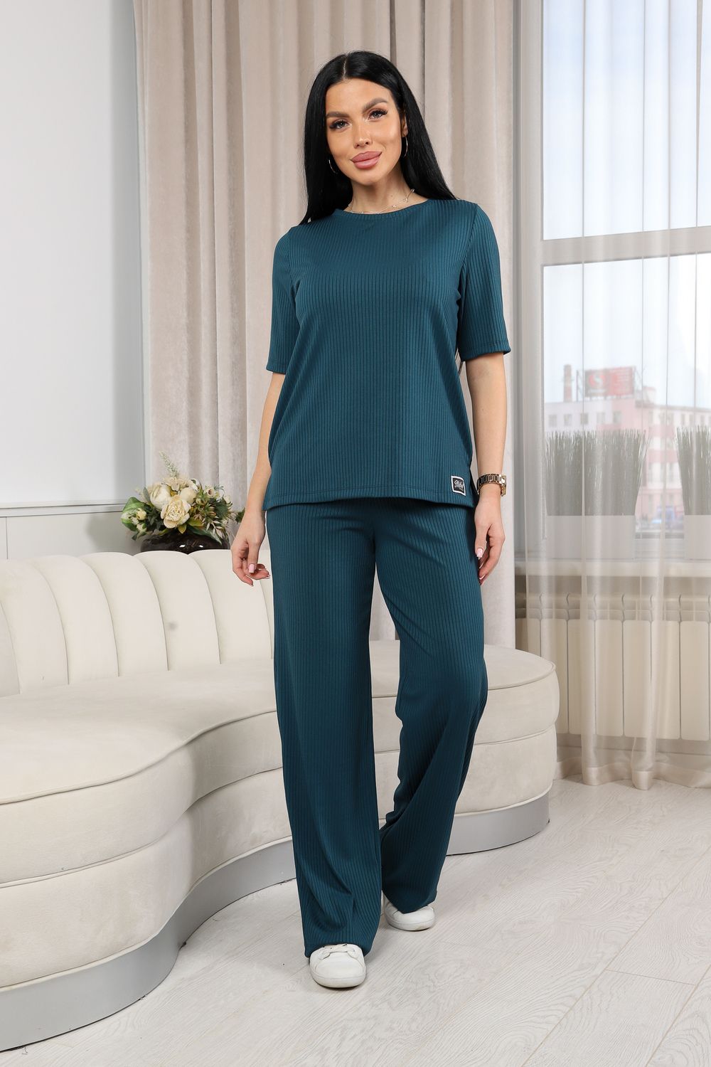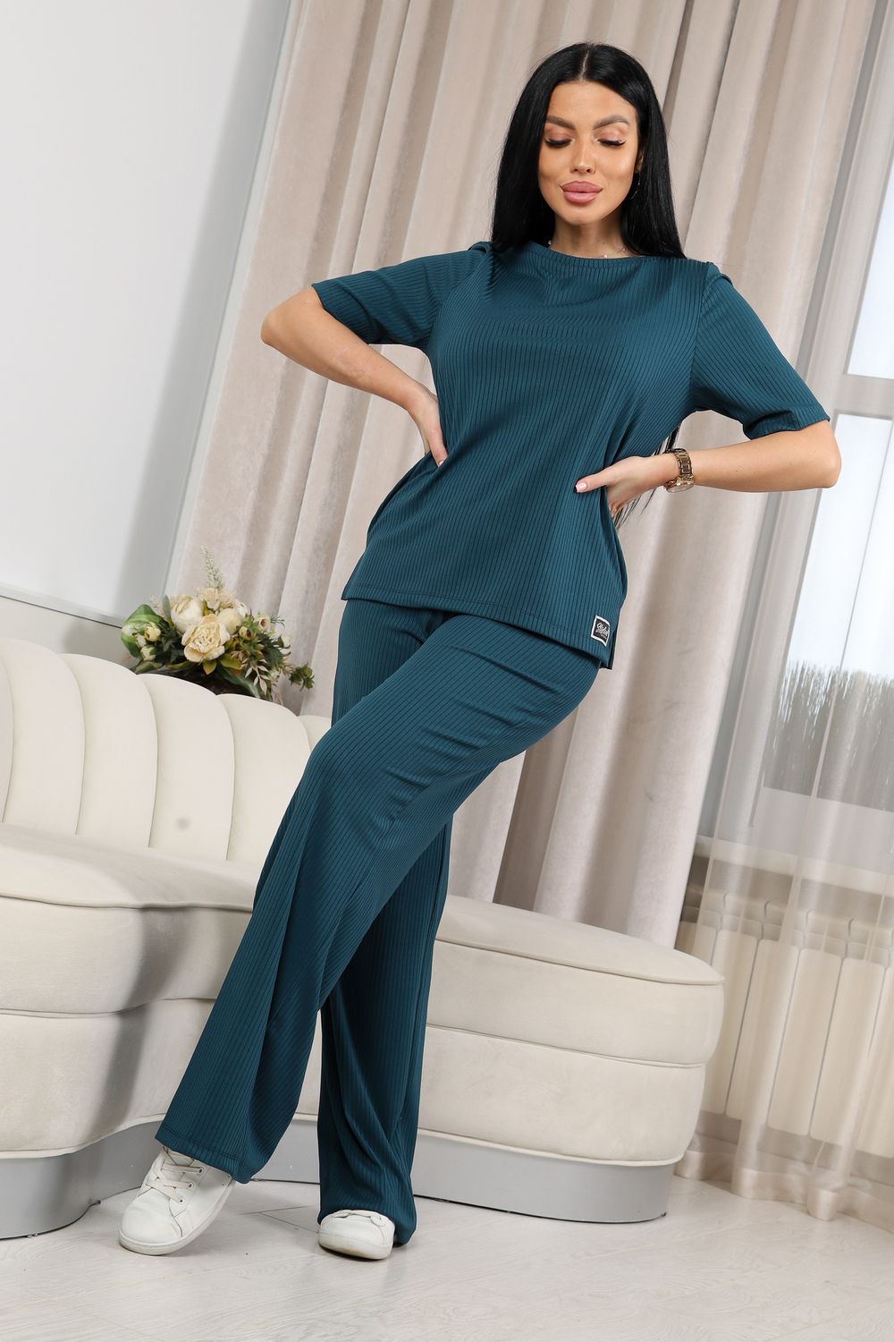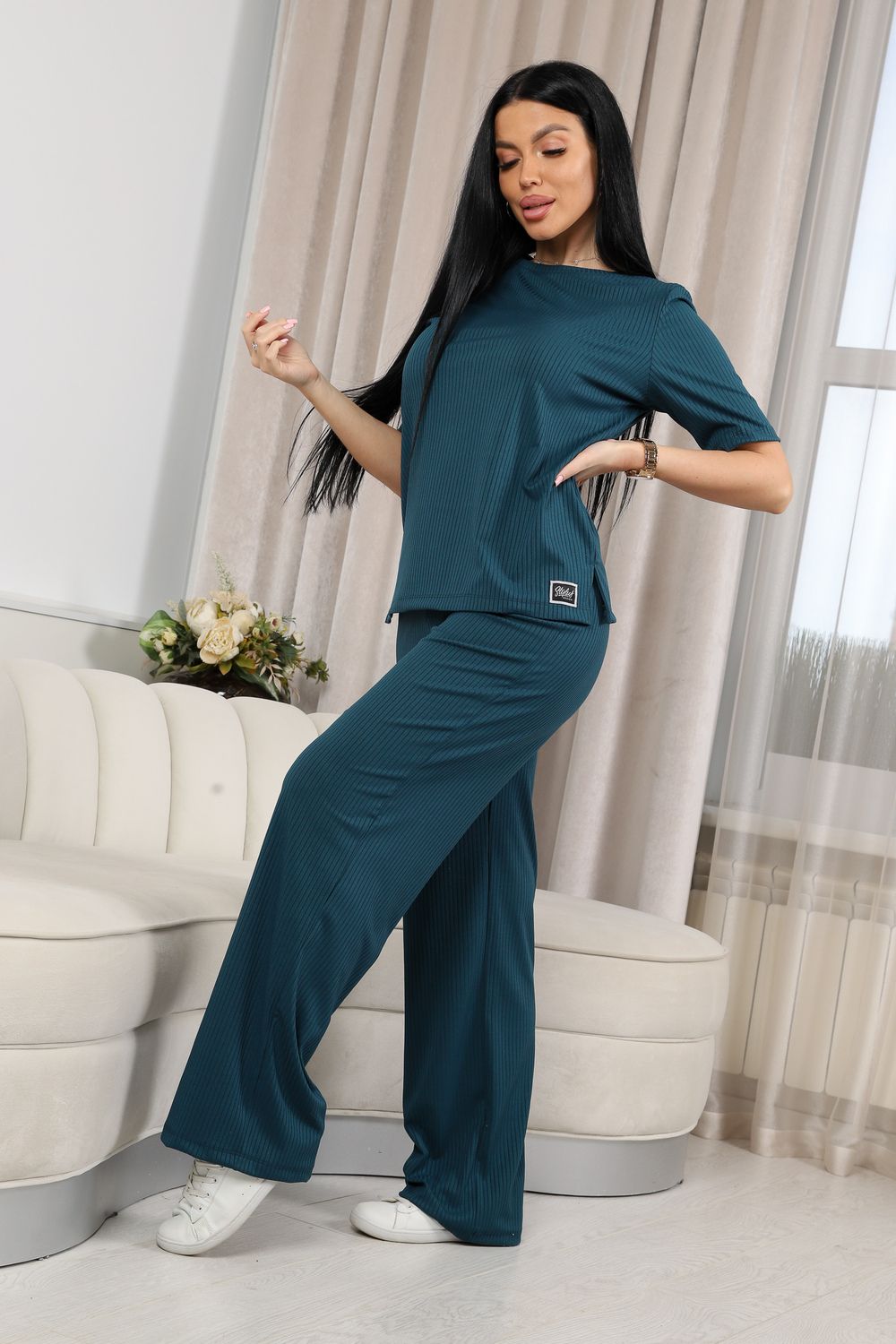 Женский костюм из лапши — это отличный выбор для тех, кто ценит комфорт и стиль в повседневной одежде. Свободный крой футболки обеспечивает свободу движений и расслабленный стиль, а брюки гармонично дополняют образ, придавая ему завершенность.