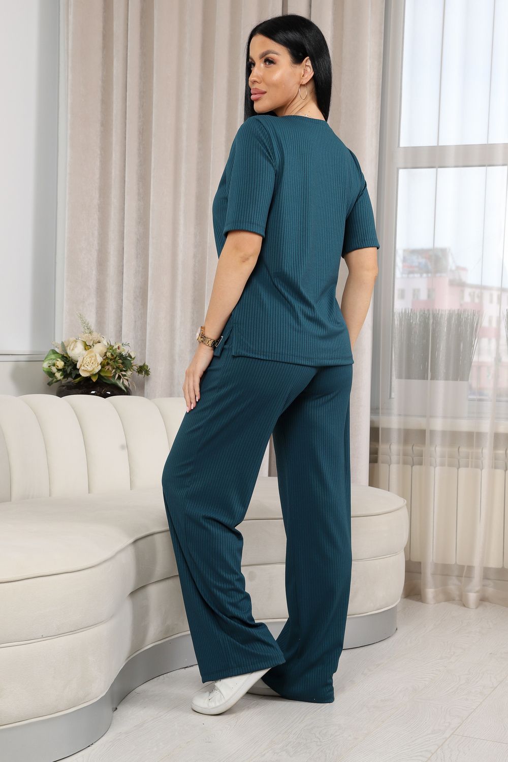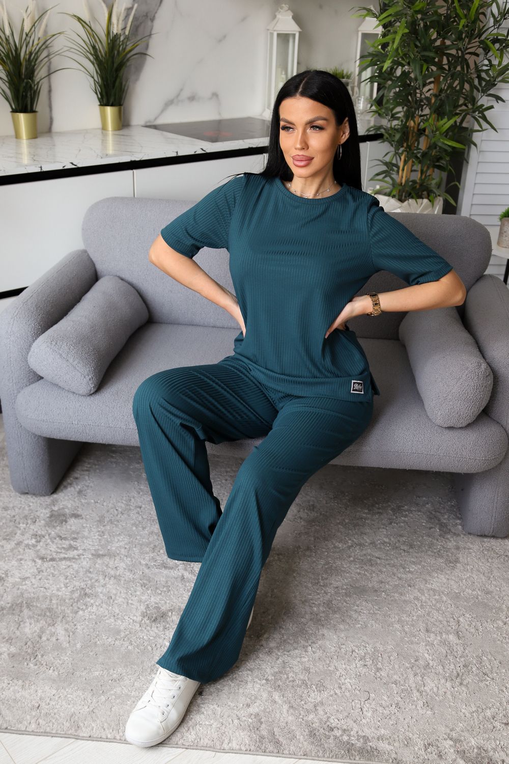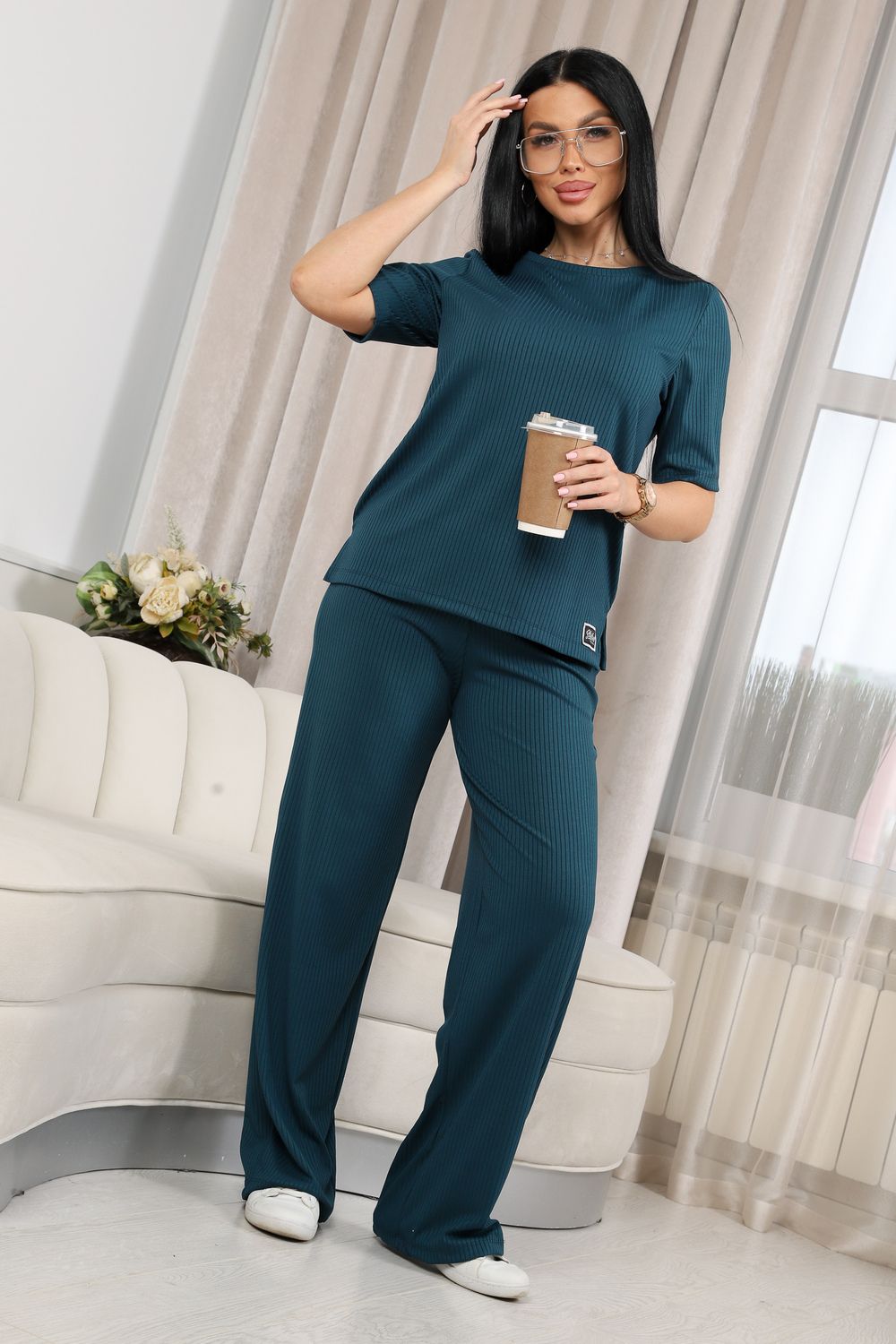 Женский костюм из лапши — это отличный выбор для тех, кто ценит комфорт и стиль в повседневной одежде. Свободный крой футболки обеспечивает свободу движений и расслабленный стиль, а брюки гармонично дополняют образ, придавая ему завершенность.