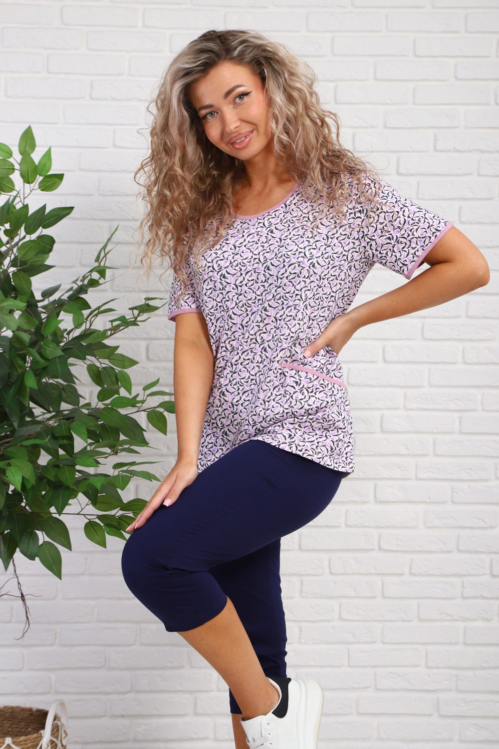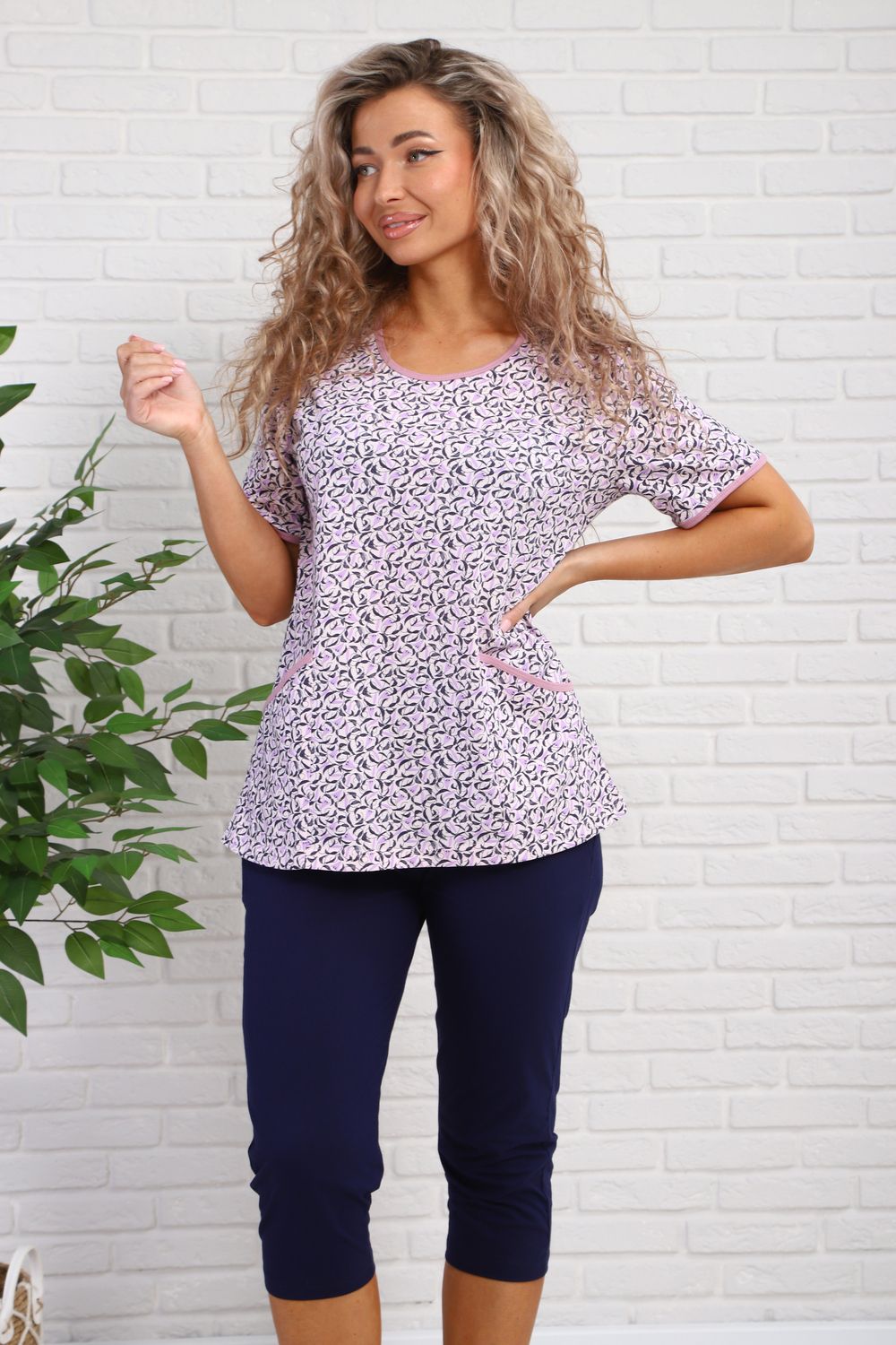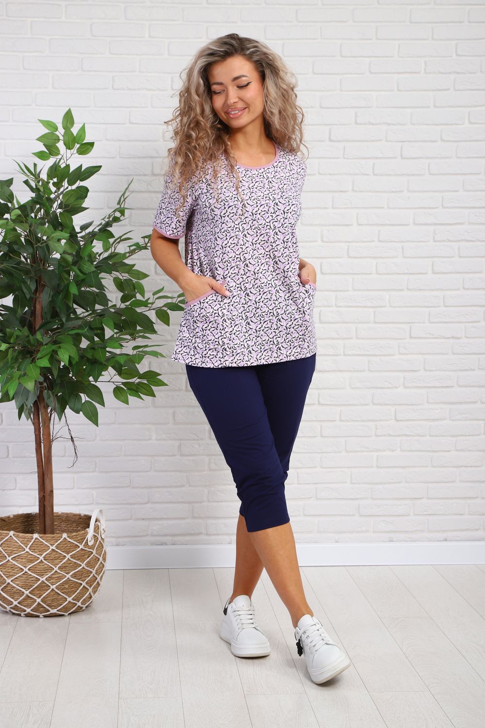 Костюм женский с бриджами. Футболка с карманами, бриджи с карманами.