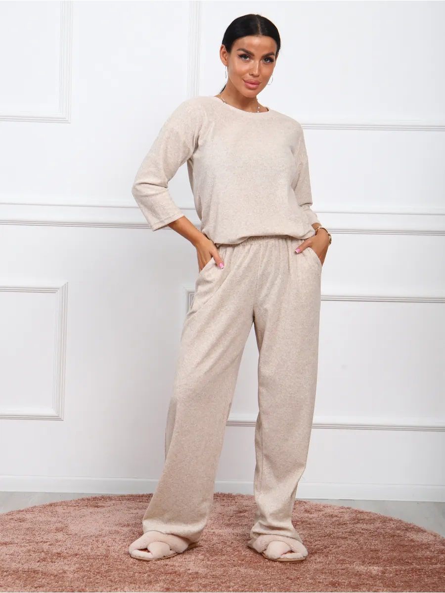 Костюм женский махровый с брюками палаццо КЖ017 - бежевый
