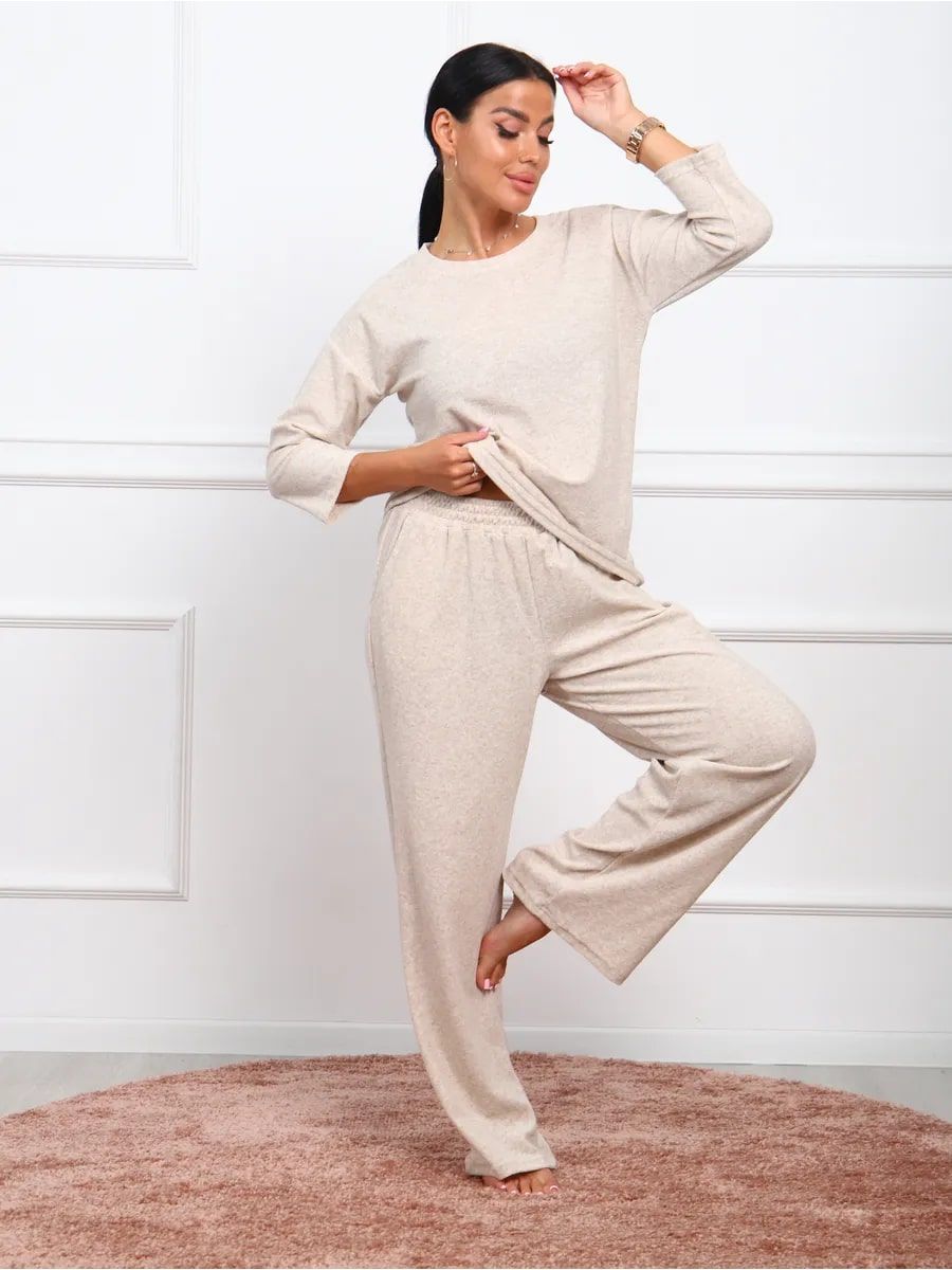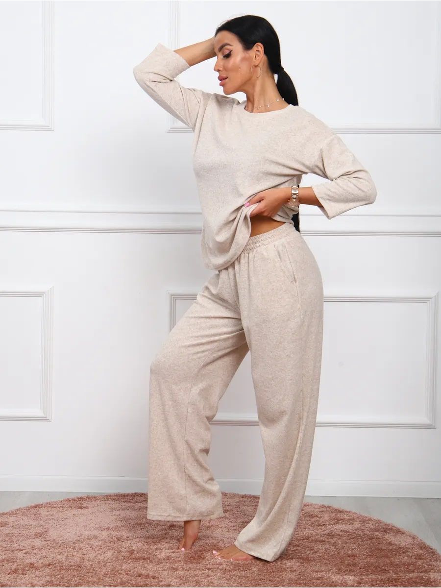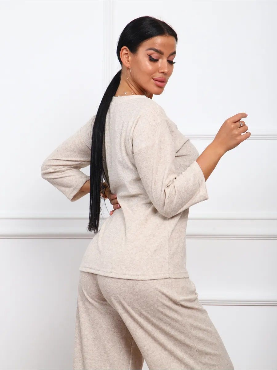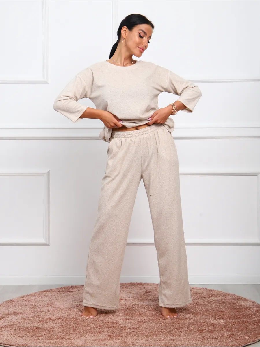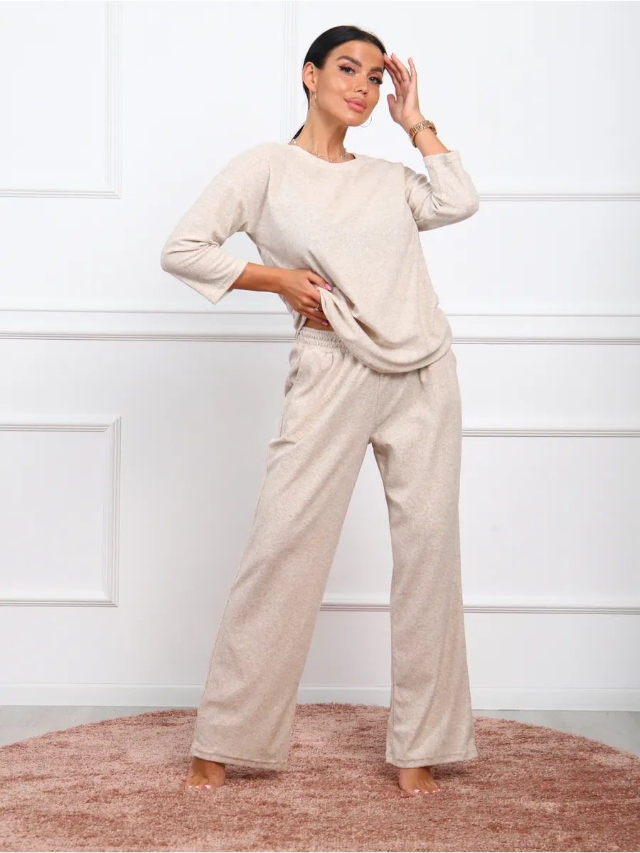 Женский костюм, который идеально подойдет для теплых весенних и летних дней. Обладает теплотой, что делает его подходящим вариантом в период весны и лета. Комплект с рукавом 3/4, отлично подойдет для домашних посиделок. Одежда базовая и однотонная, что позволяет легко комбинировать с другими элементами гардероба. Махровый материал создает невероятно мягкое ощущение, обеспечивая комфорт в течение всего дня. Этот теплый трикотаж отлично удерживает тепло, поэтому вы всегда будете чувствовать себя уютно даже в самые холодные дни. Брючный вариант расширенного кроя оверсайз обеспечивает свободу движений и подходит для женщин больших размеров. Этот модный комплект выполнен из махры великолепного качества, что делает его незаменимой частью любого гардероба и для посиделок дома. Он разработан специально для тех женщин и девушек, которые предпочитают стиль. Мягкий текстиль не только приятно носить на теле, но он также прост в уходе. Домашняя одежда поддерживает молодежный стиль благодаря современному дизайну и продуманным деталям. Костюм подходит для офисной работы в неформальной обстановке. Наш махровый костюм идеально подходит для больницы: он обеспечивает максимальный комфорт и тепло в прохладных помещениях. Двойка легко адаптируется к любому случаю благодаря своей универсальности. Особое внимание уделено адаптации одежды для беременных женщин — фасоны тщательно подобраны, чтобы обеспечить максимальный комфорт в беременность. Широкие штаны типа палаццо создают дополнительное пространство, чтобы каждая будущая мама могла чувствовать себя полностью расслаблено. Благодаря своему демисезонному характеру он является практичным вариантом для прохладного сезона года.