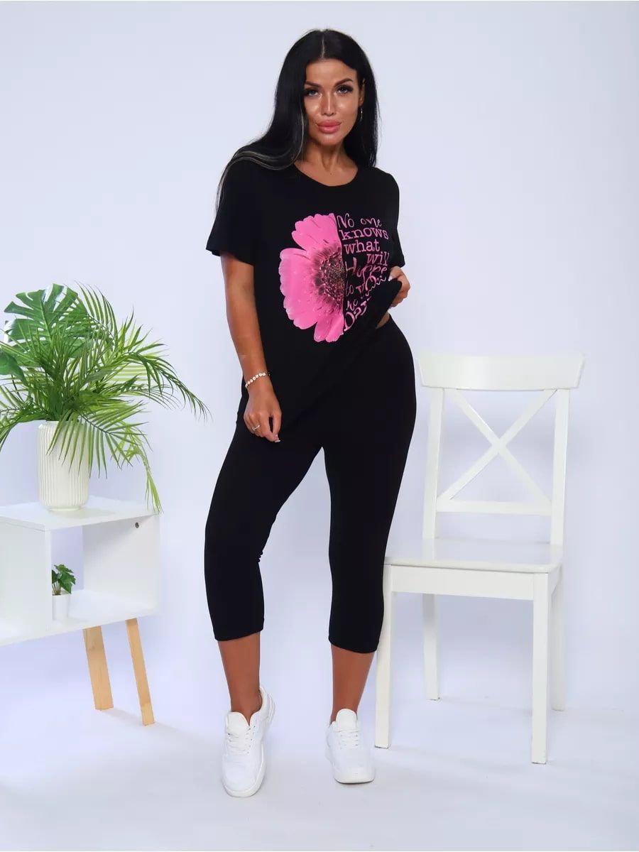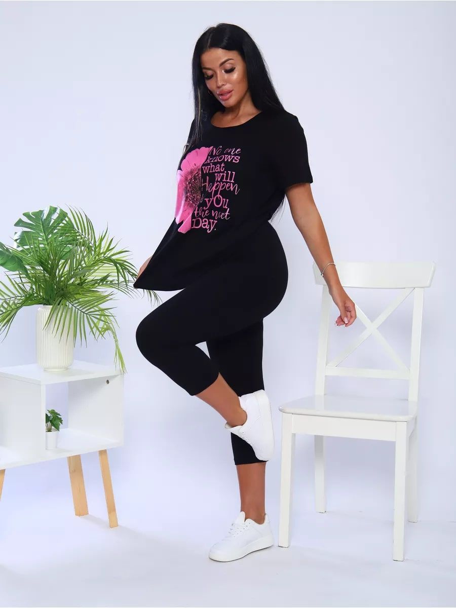 Костюм женский с бриджами КЖ009 - фуксия/черный