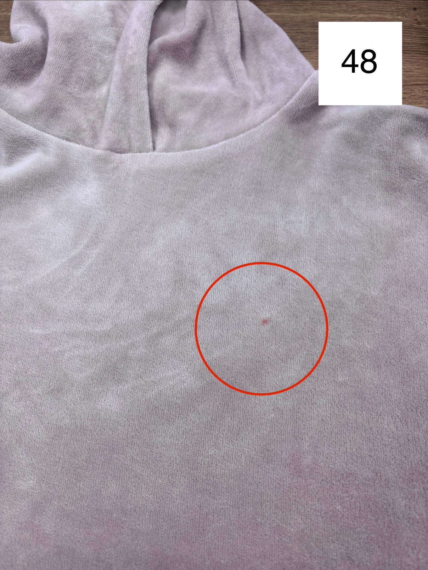 Пятно на кофте на полочке. можем замаскировать нашивкой, если необходимо.