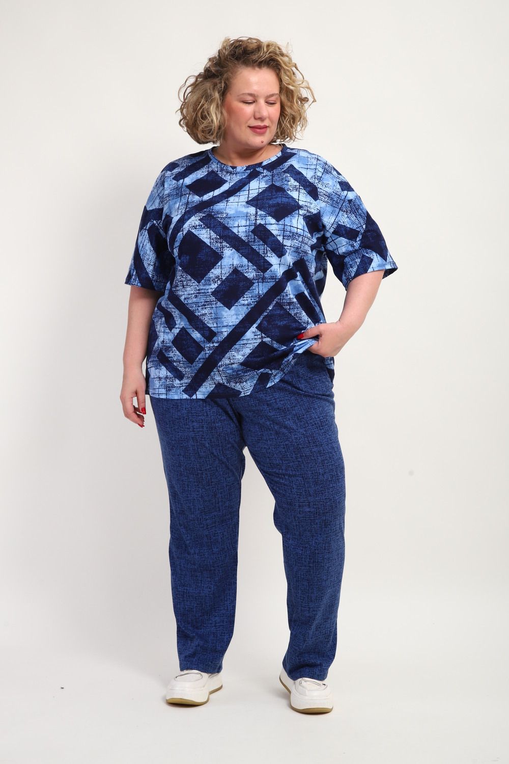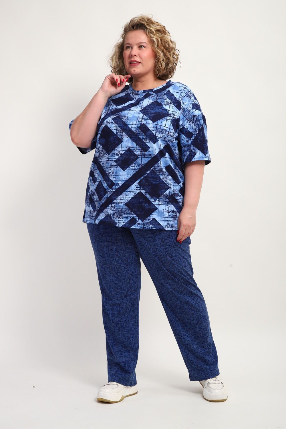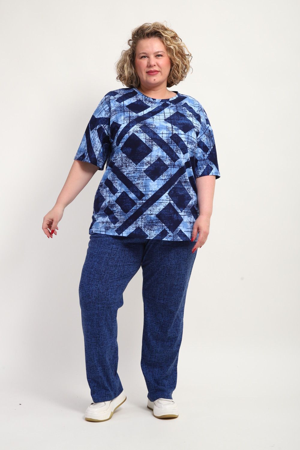 Костюм с брюками КЖ-007 - Синий, ромбы