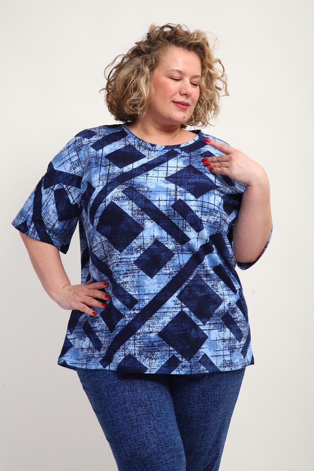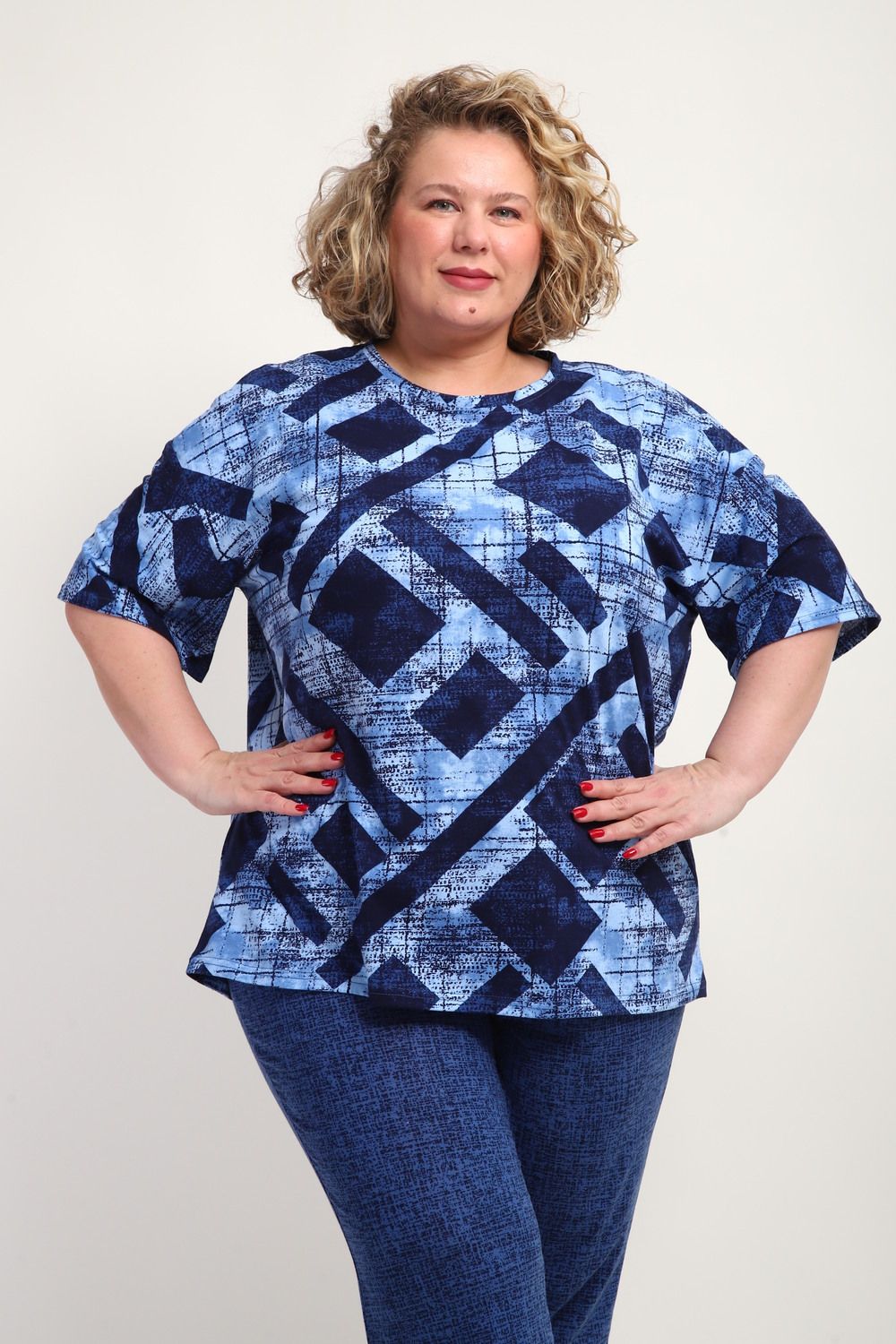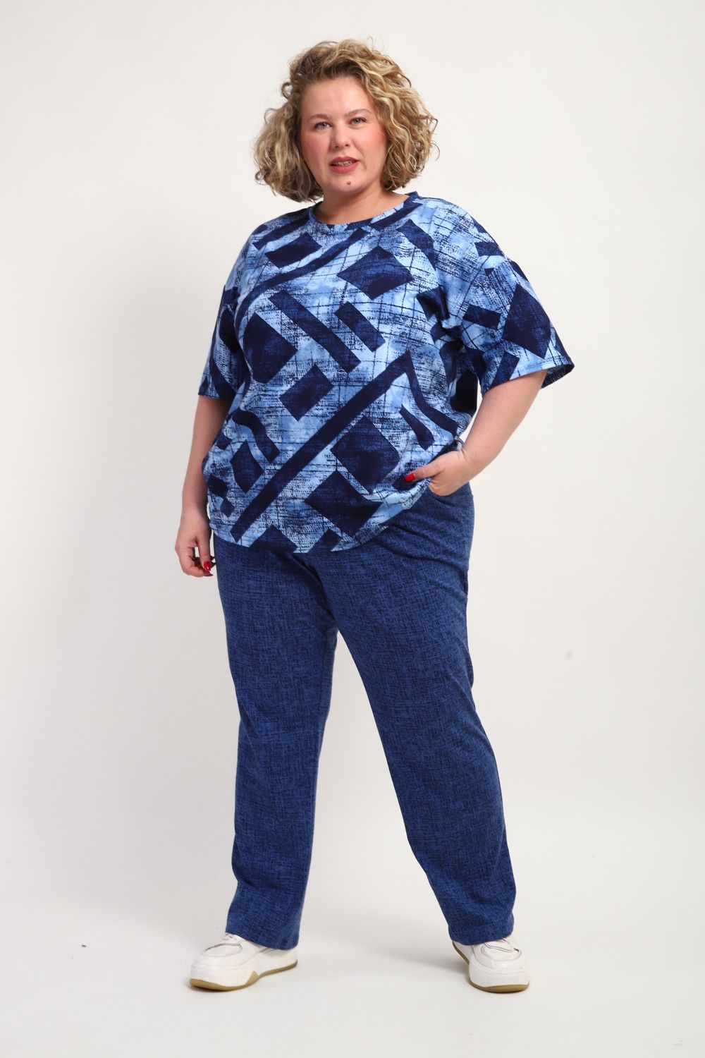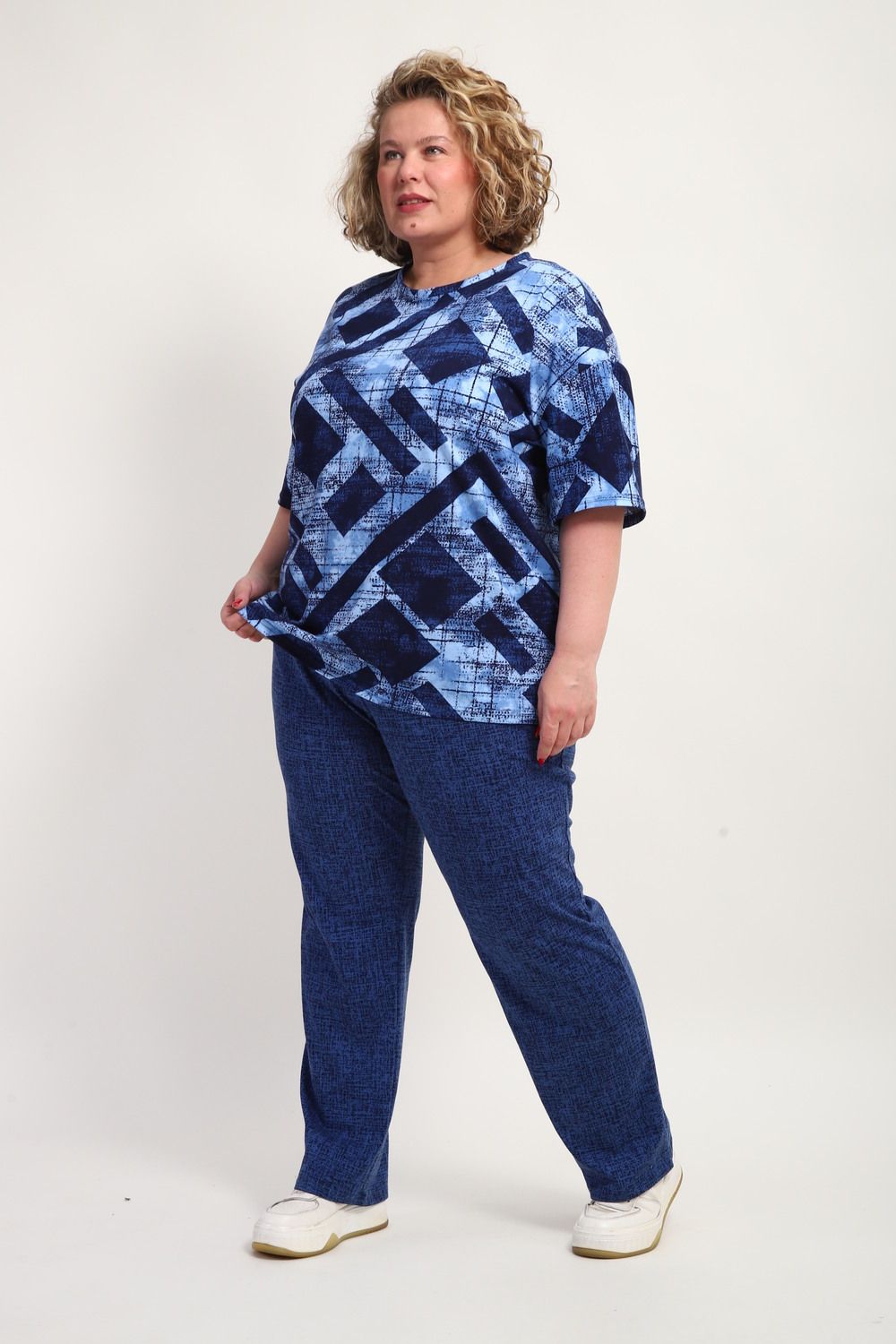Костюм с брюками КЖ-007 - Синий, ромбы
