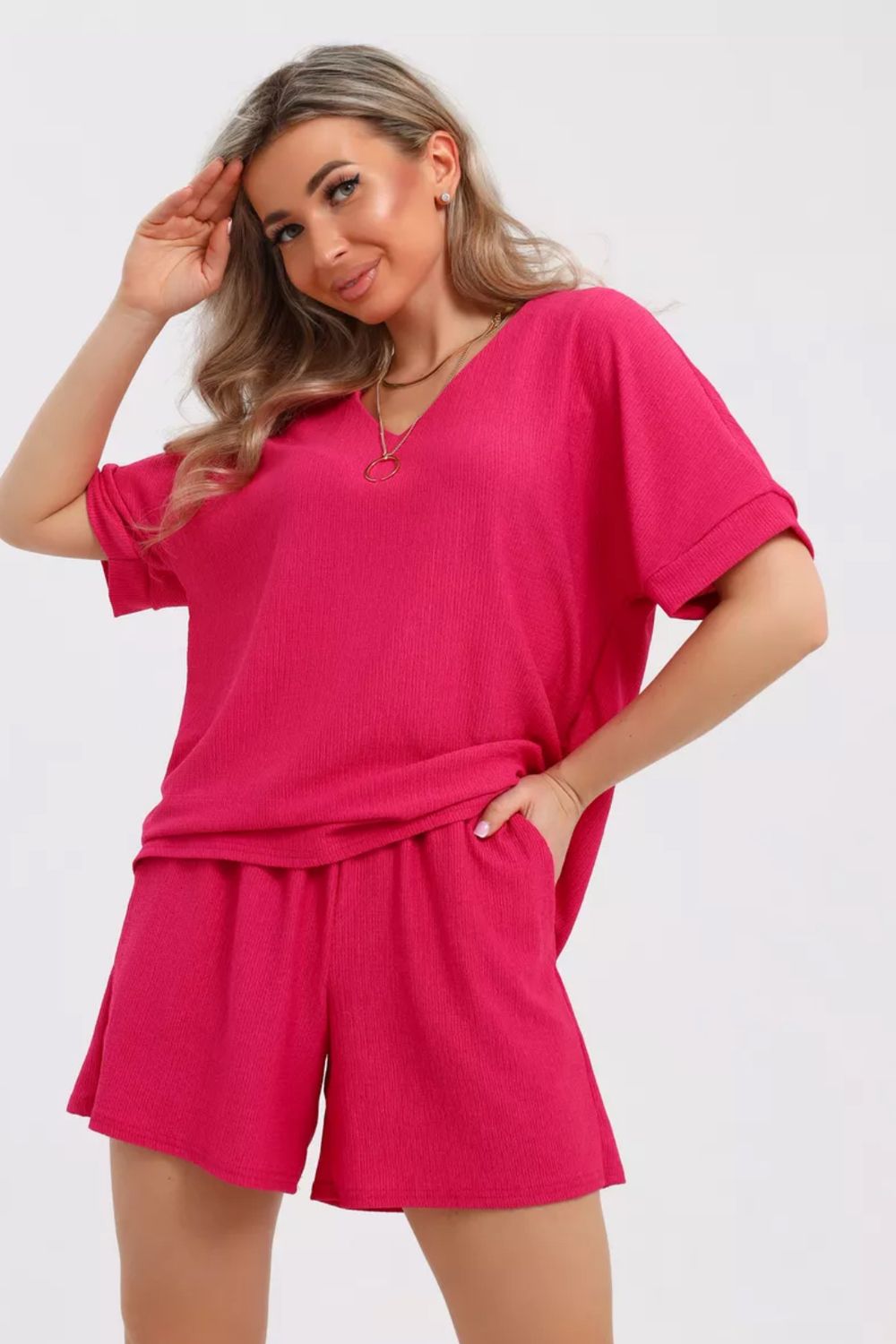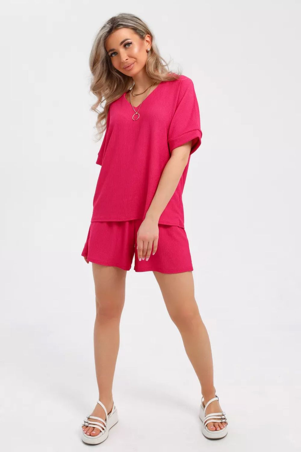 Доступный в широком диапазоне цветов и размеров, включая большие размеры, наш женский костюм с шортами станет идеальным решением для создания вашего уникального летнего образа.