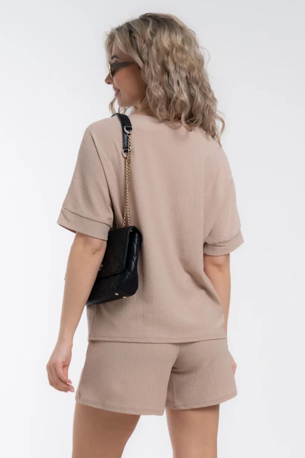 4. Свободные шорты и просторная футболка с коротким рукавом создают непринужденный образ, который легко адаптировать под любой стиль. Замените футболку на блузку, чтобы получить более элегантный вид, или дополните образ спортивной обувью для непринужденной прогулки.