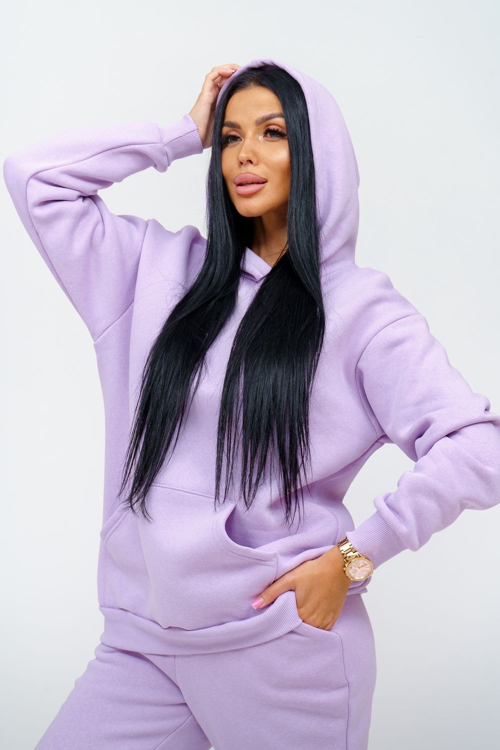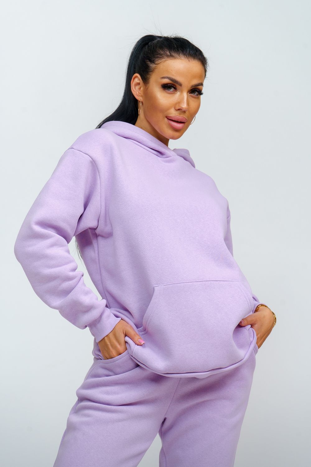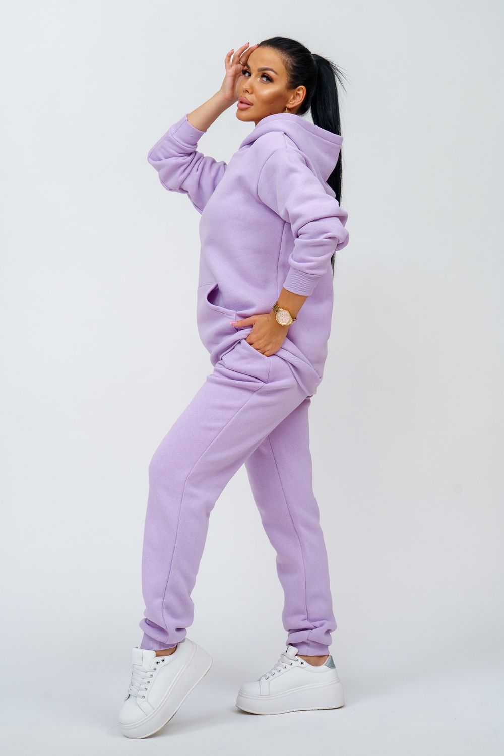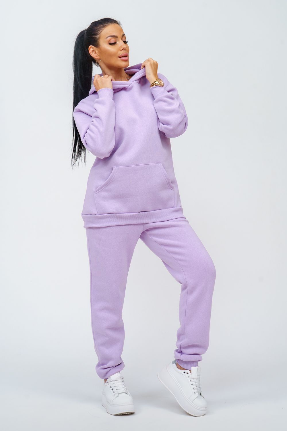 Костюм женский. Куртка со спущенным рукавом на манжете, двойным капюшоном и накладным карманом. Брюки на притачном поясе с резинкой, по низу изделия манжета. На передней части брюк - карманы.
