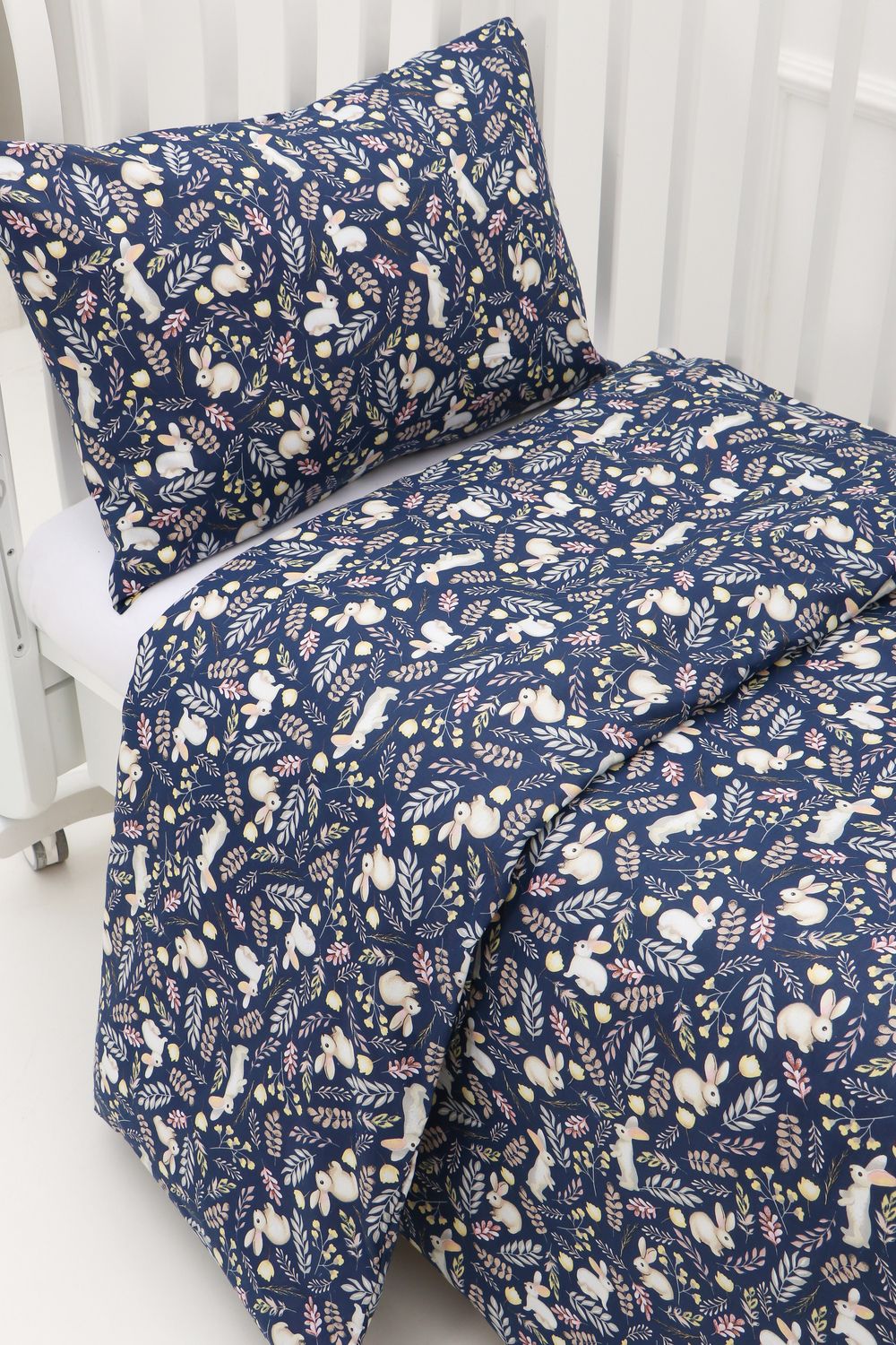 КПБ с простыней на резинке арт. ПРГ-ПР/зайка-синий