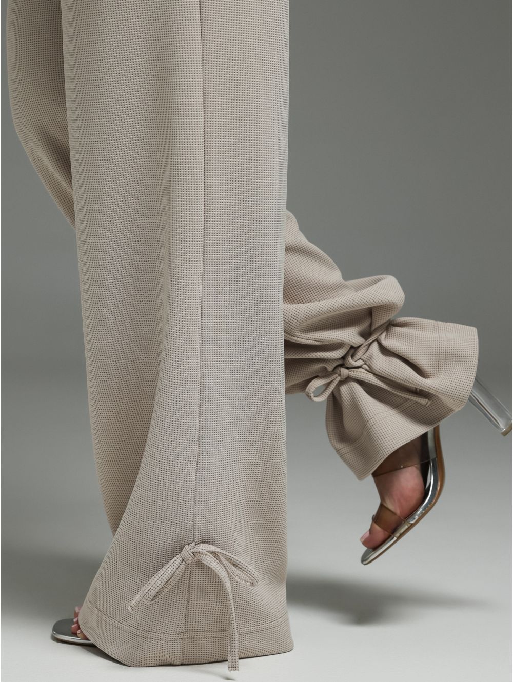 Деталь: В нижней части брючин, в боковые швы, втачаны петли для шнурка. Позволяют регулировать ширину низа, создавая эффект «фонарика» или собирая брючину в мягкую сборку.