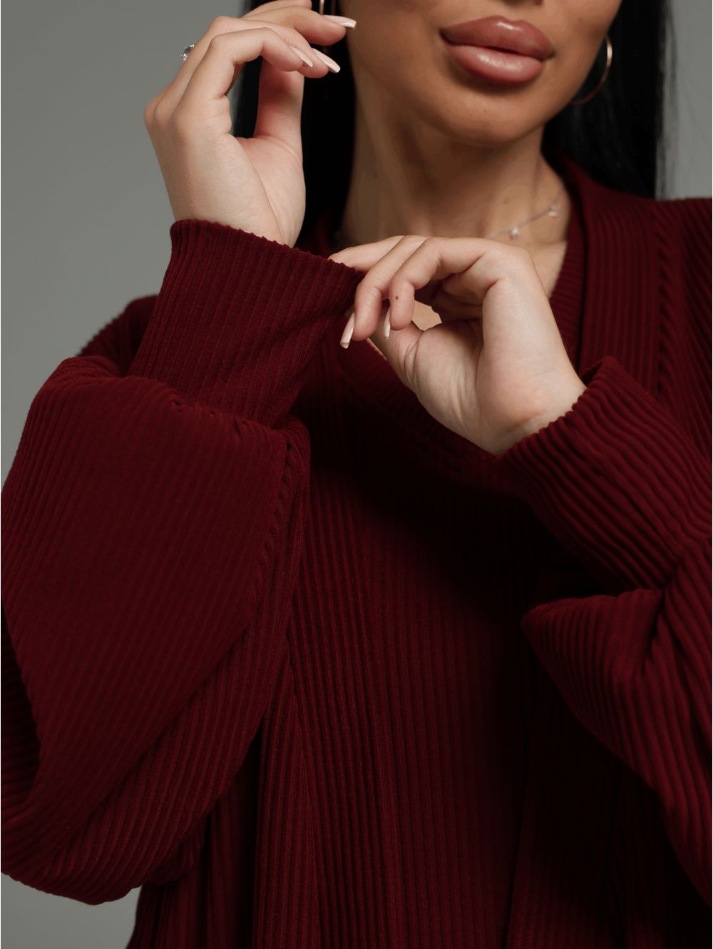 Роскошный материал: "Кашемир лапша" — это премиальная ткань с уникальным рельефом "в рубчик". Она дарит ощущение тепла, идеально садится по фигуре и выглядит по-настоящему дорого.