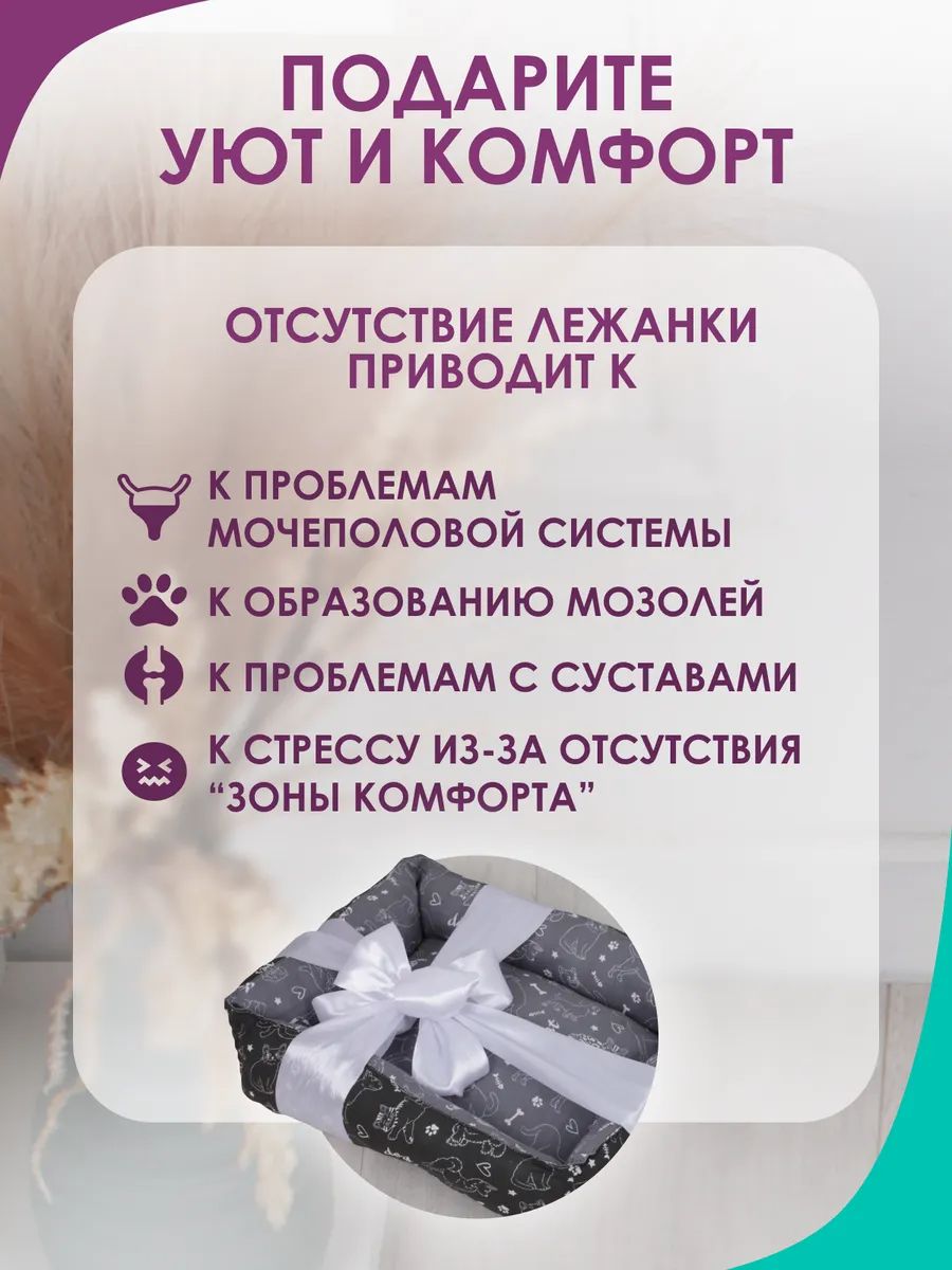 Легко очищается от загрязнений, что делает уход за лежаком простым и быстрым. Дизайн идеально впишется как в современный интерьер квартиры, так и уютного загородного дома. Бортики защищают место отдыха от сквозняков и помогают сохранить тепло внутри пространства. Подойдет как кошачий уголок или спальня для игривых котов любых возрастов. Приятный лежак украсит любую комнату, добавляя стильный акцент вашему дому. Конструкция выдерживает интенсивные игры маленьких питомцев без утраты формы. Лежак для кошек или диван для собак может стать отличным подарком любителям животных – так как товар совмещает комфорт и практичность!