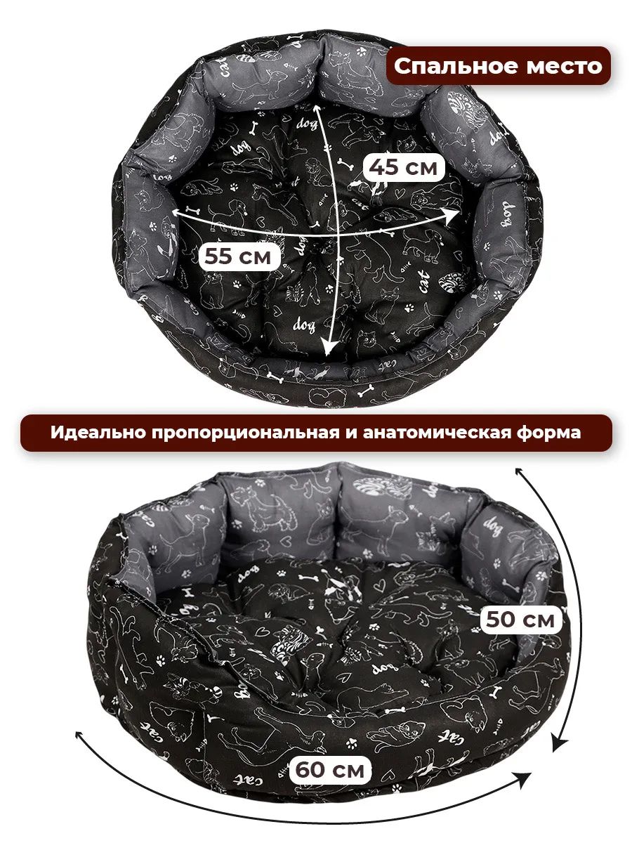 Размер лежанки 50×60 см — универсальный вариант для большинства домашних питомцев. Лежак для кошки или собаки легко разместить в любой комнате: возле дивана, кровати или в любимом месте питомца. Спальное место для животных также удобно брать с собой в машину или в поездки.