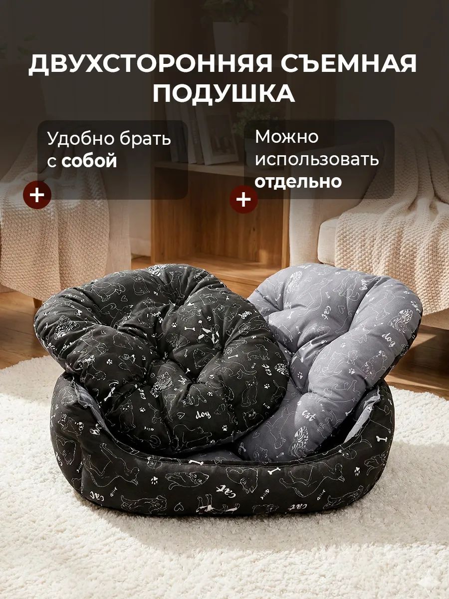 Внутри лежака расположена мягкая съёмная подушка. Подушку можно легко достать и почистить, поэтому лежанка для кошки или собаки проста в уходе и долго сохраняет аккуратный внешний вид.