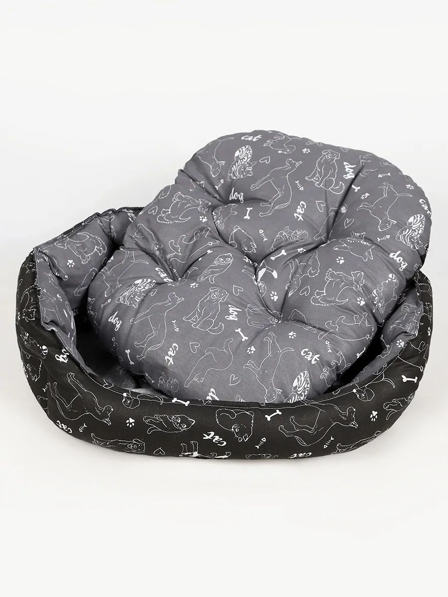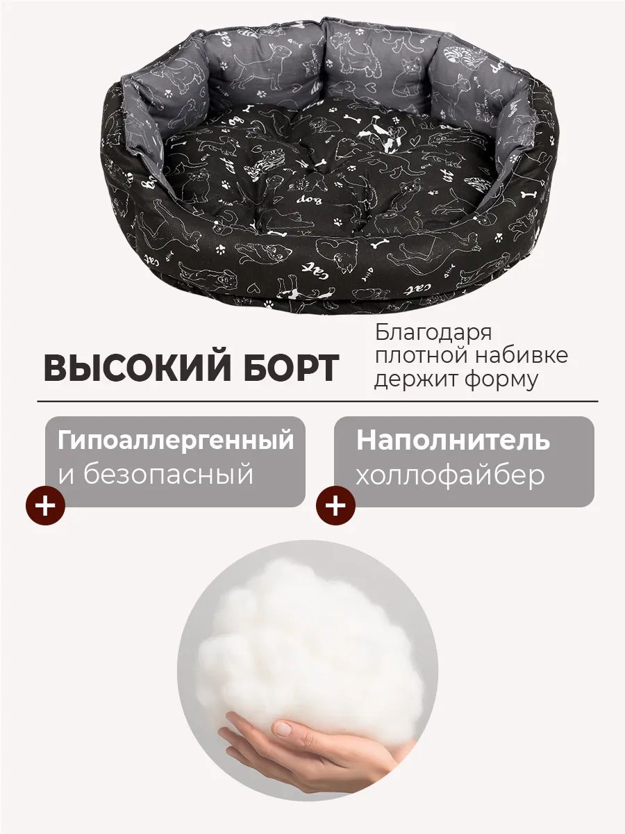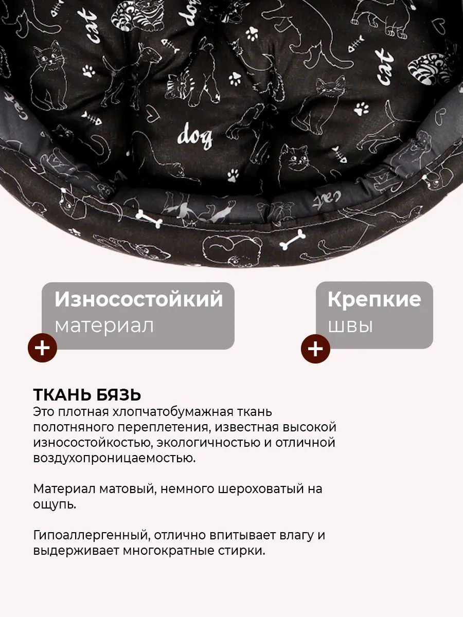 Лежанка для кошек и собак 50×60 с бортиками LDZB, бязь, 100% хлопок, износостойкая, Bio-Line - черный