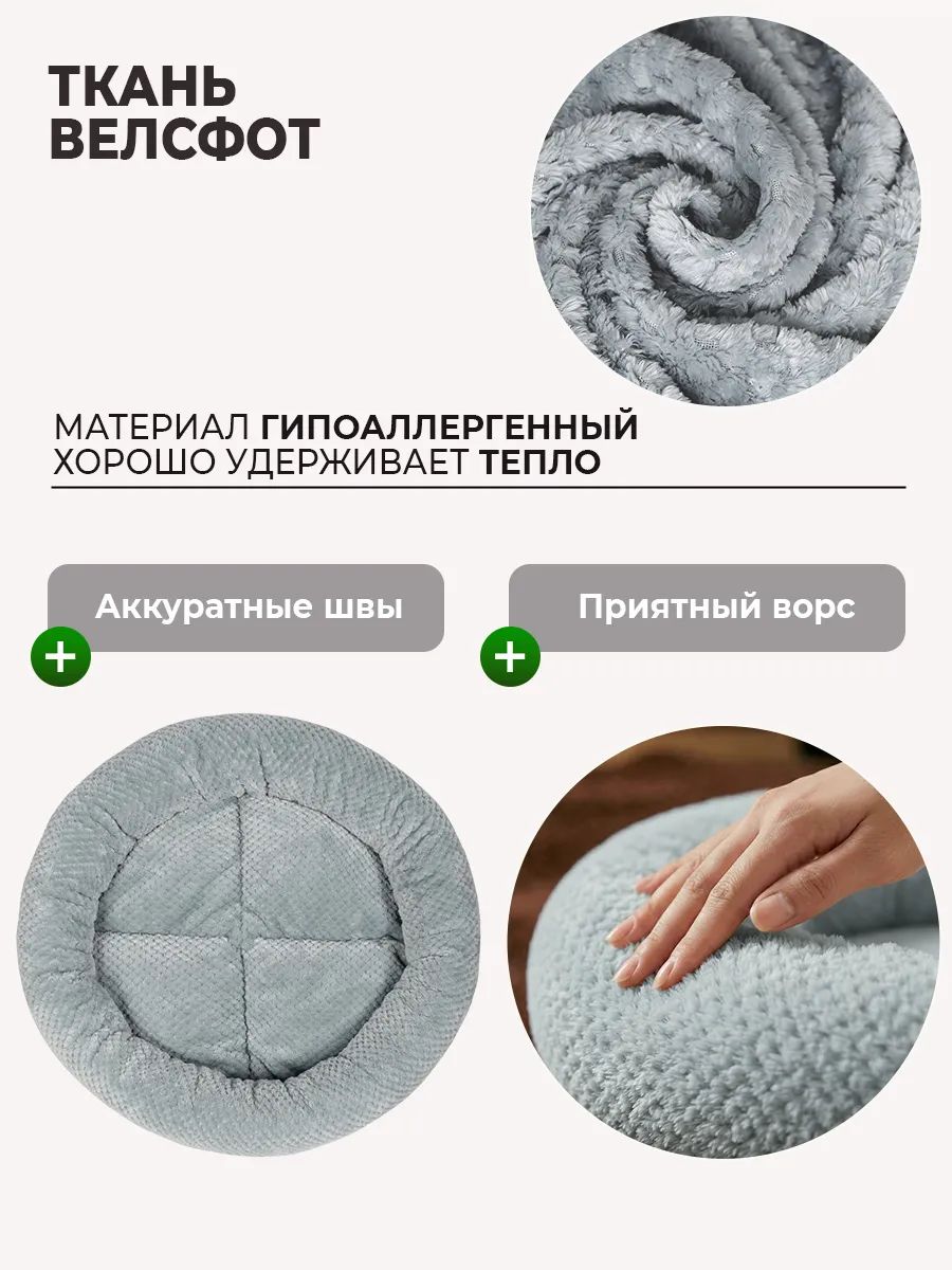 Лежанка для кошек и собак мягкая, круглая с бортом LDZkr, велсофт, Bio-Line - серый