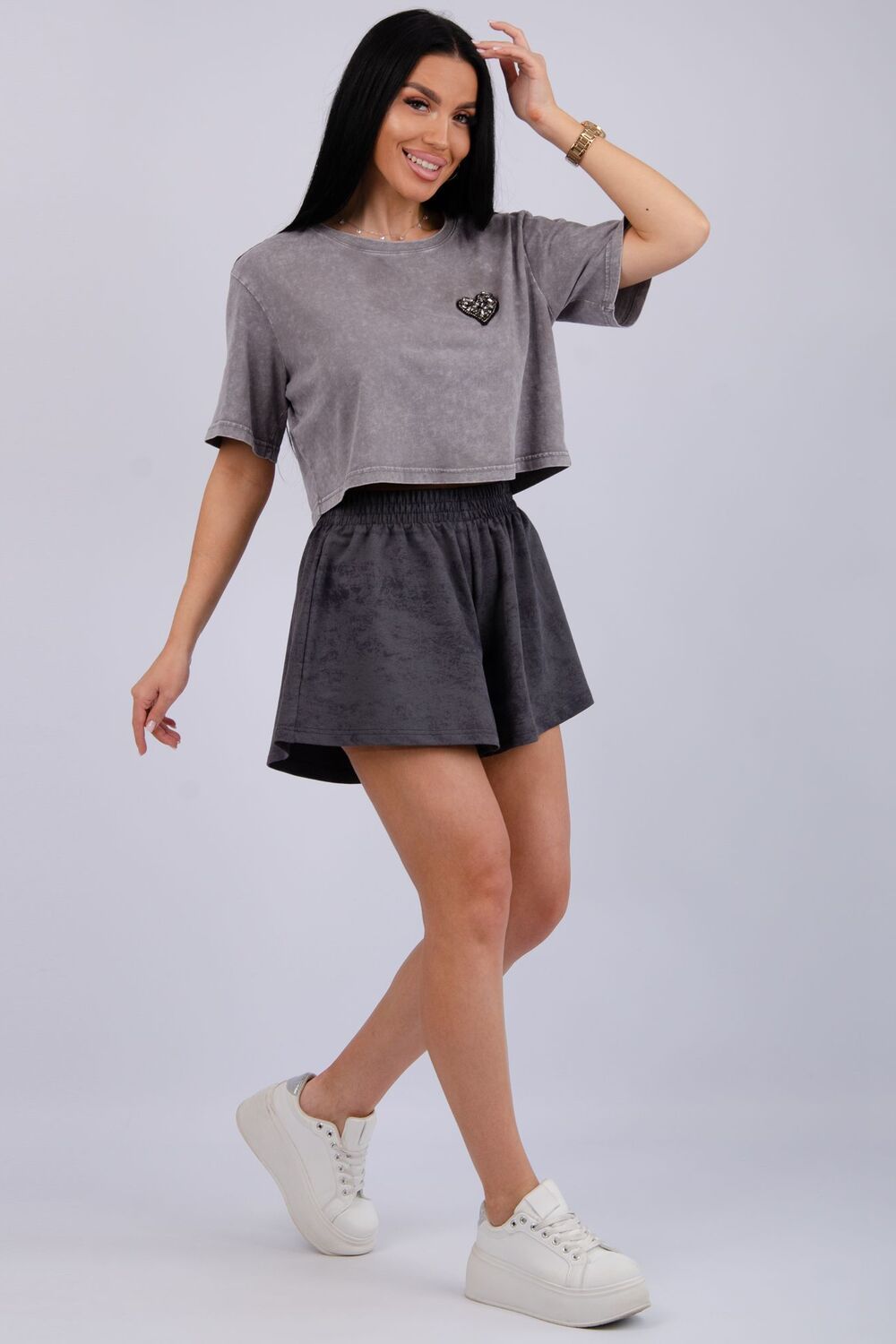 Короткие, но широкие шорты создают эффектный силуэт и не стесняют движений. Ткань премиум-качества не скатывается и отлично дышит даже в жару. Высокая посадка на мягкой резинке подчеркивает талию. Носите их как спортивные шорты, домашнюю одежду или часть дерзкого городского образа с грубыми ботинками. Подходят для девочек, девушек и женщин любого роста