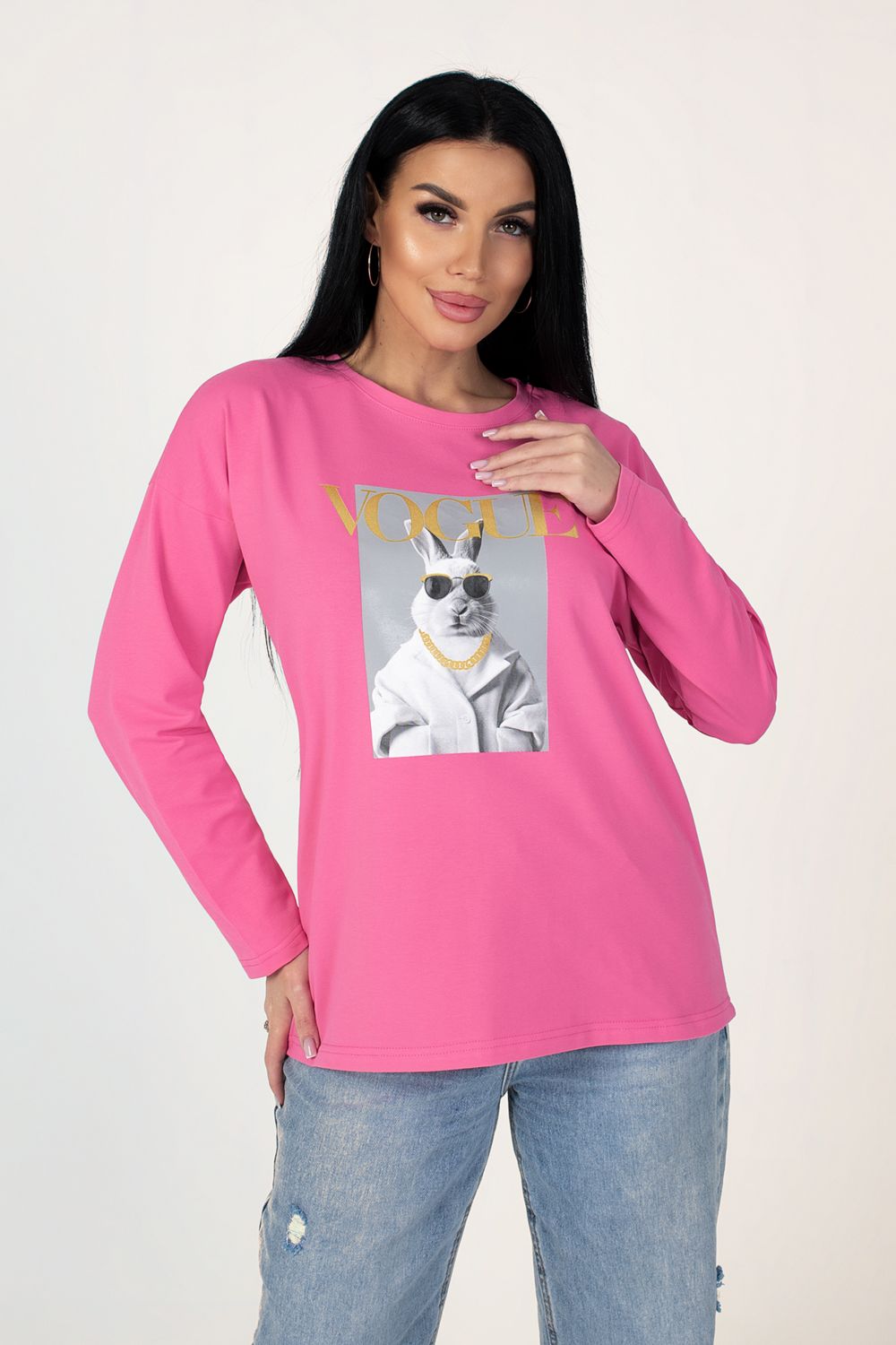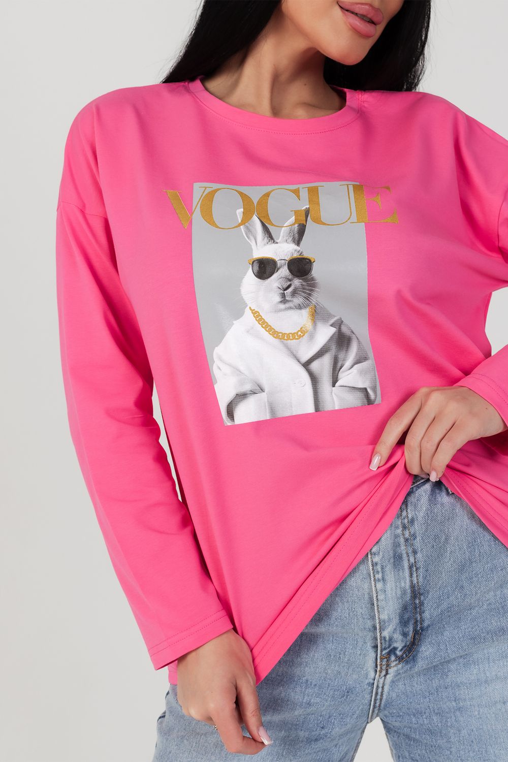Лонгслив с прямым кроем и свободным силуэтом, доходящий до линии бёдер.Плечи слегка приспущены, рукав длинный, втачной. Горловина имеет округлую форму и обтачку. На передней части расположен оригинальный принт.