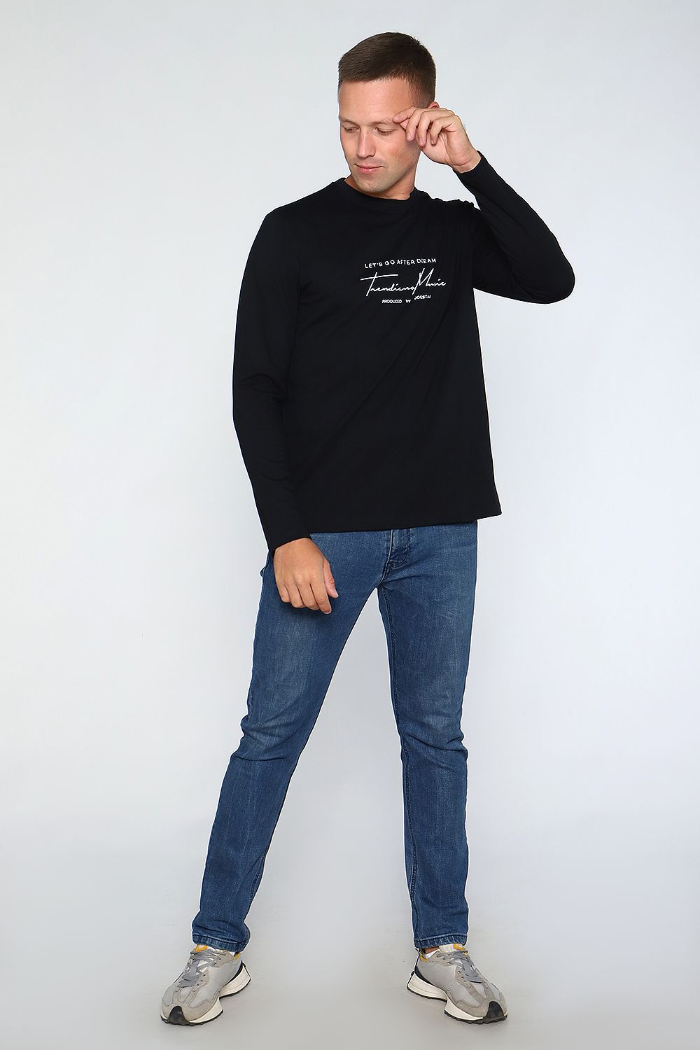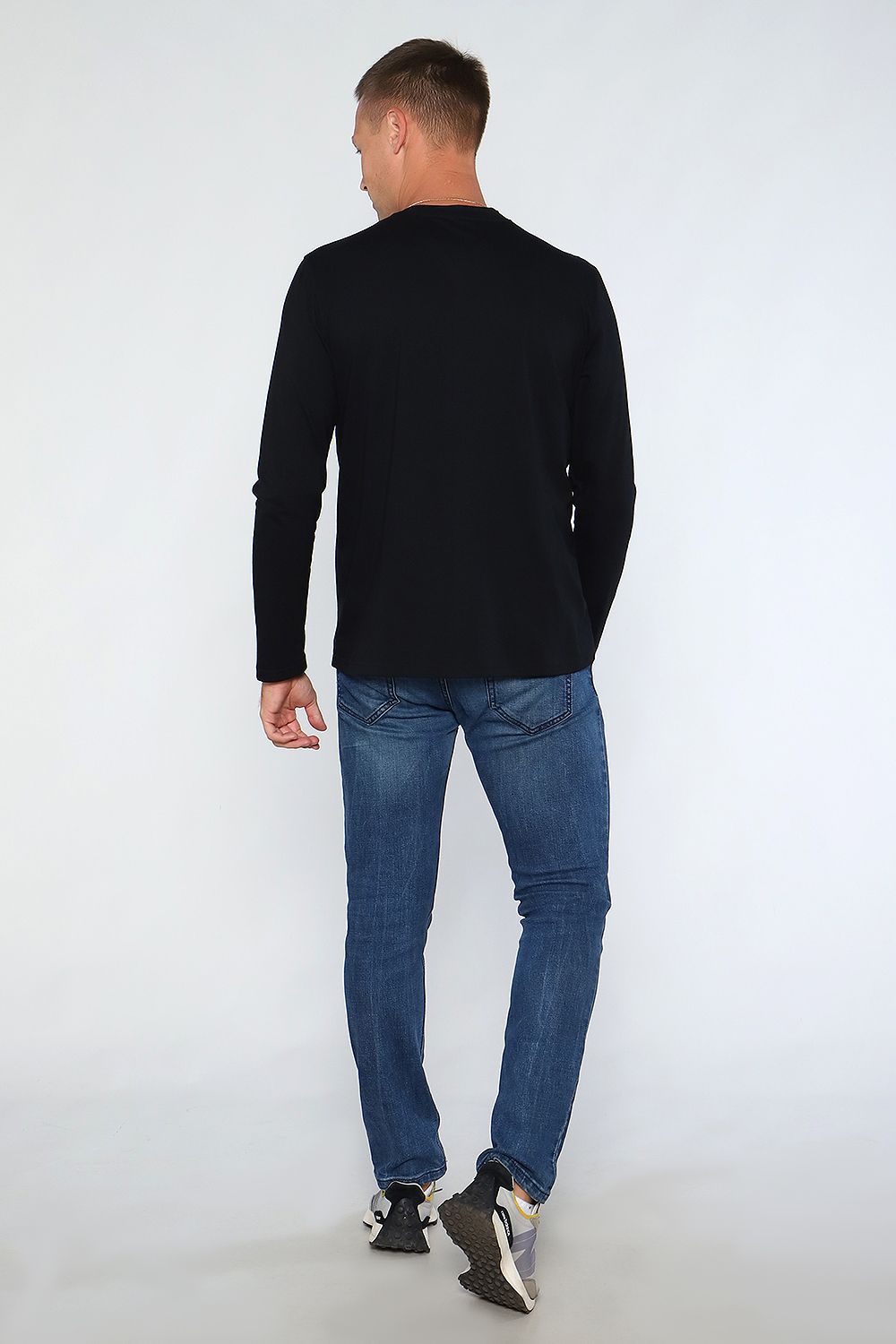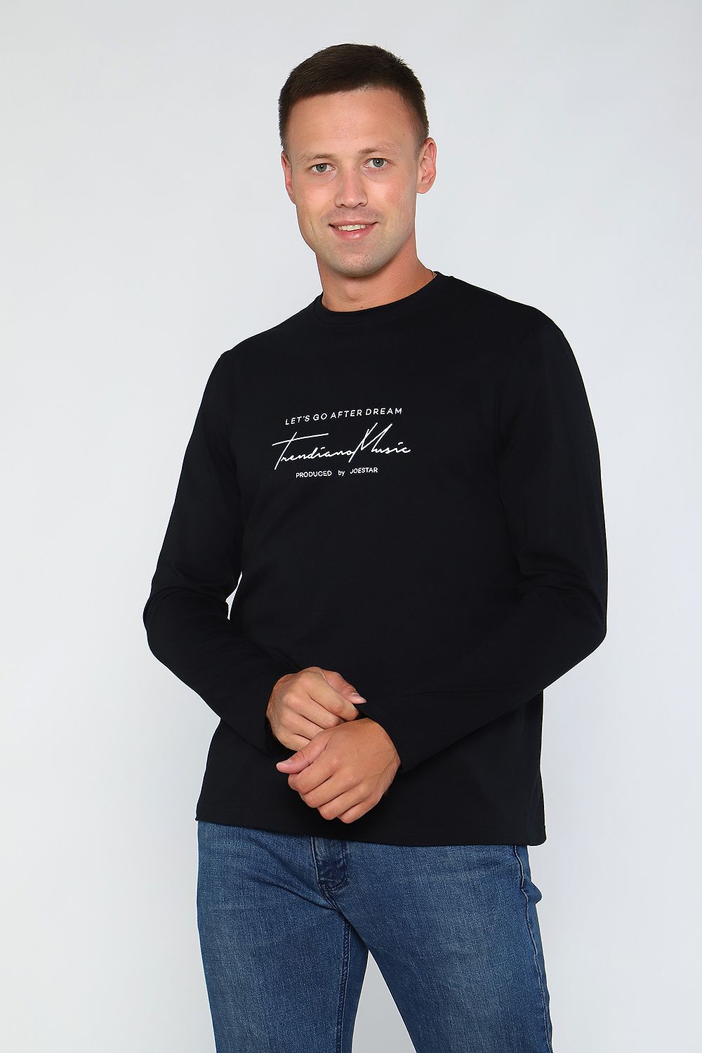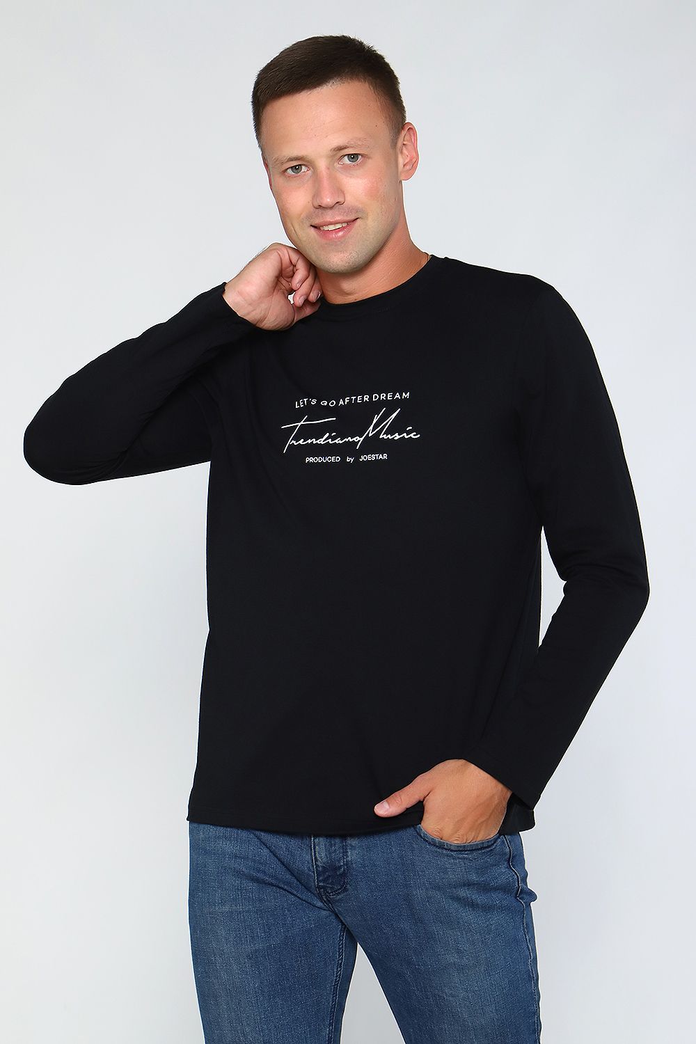 Лонгслив мужской с округлой горловиной, обработанной усилителем. Широкая футболка с длинными рукавами имеет свободный крой и классическую, не спущенную линию плеча.