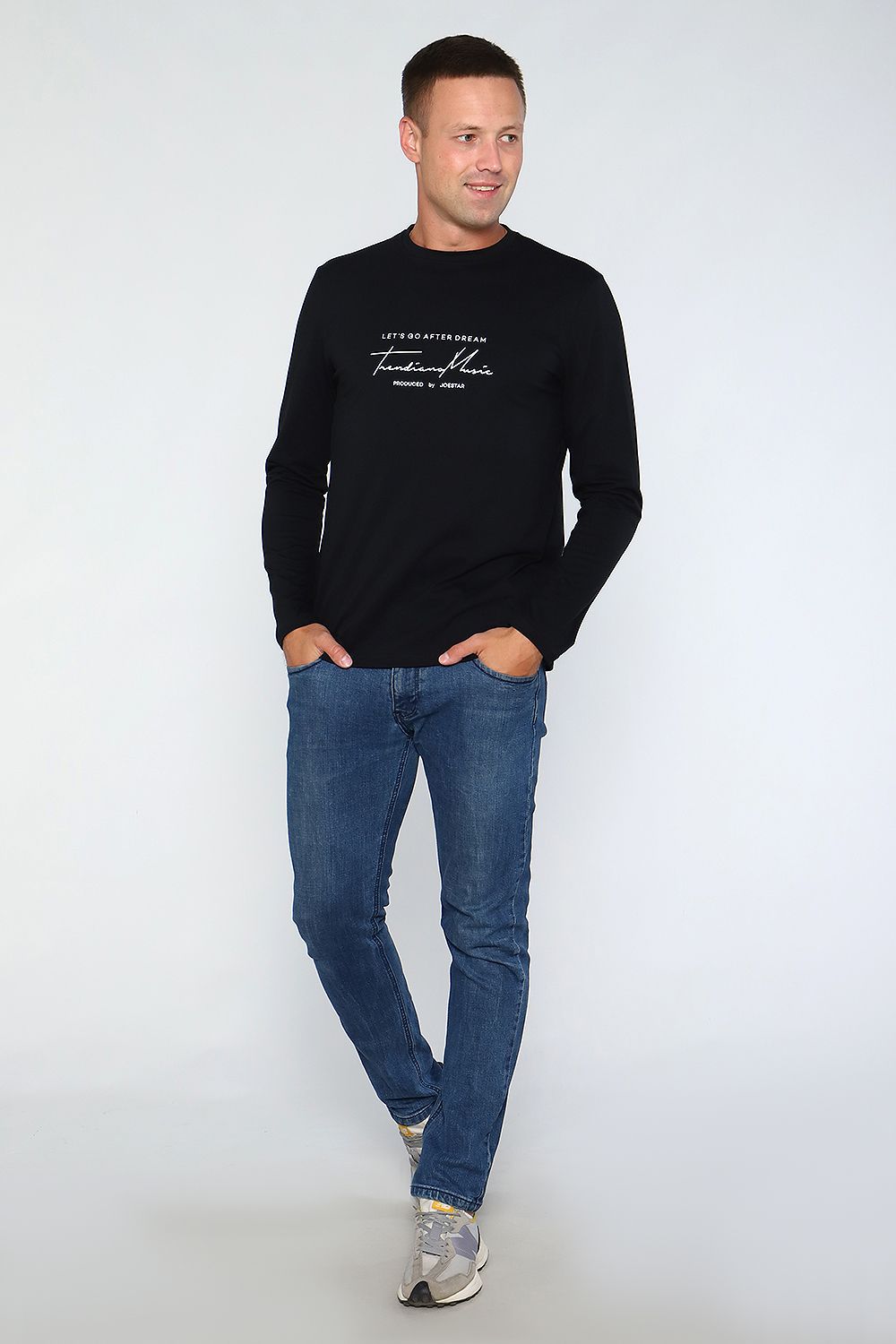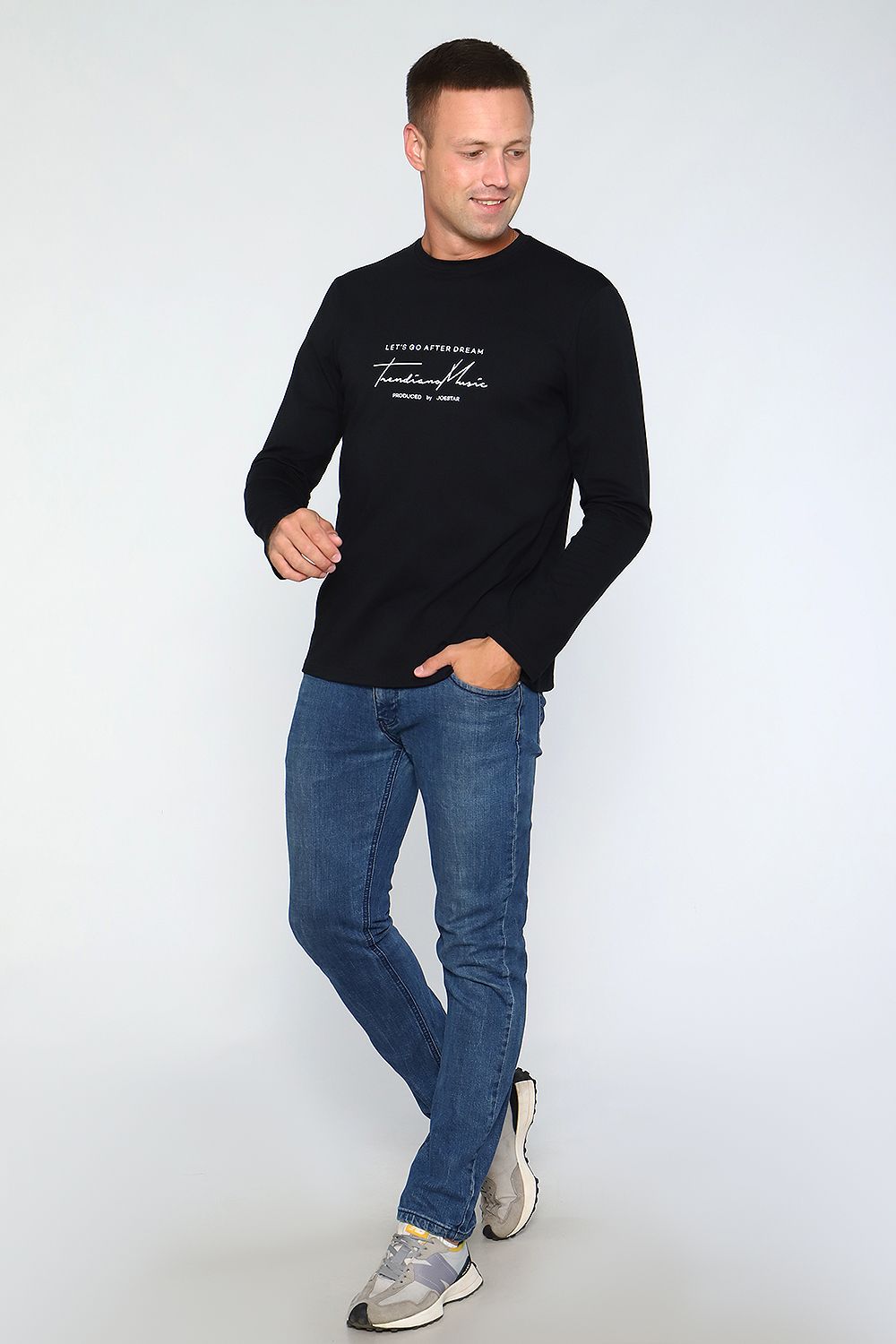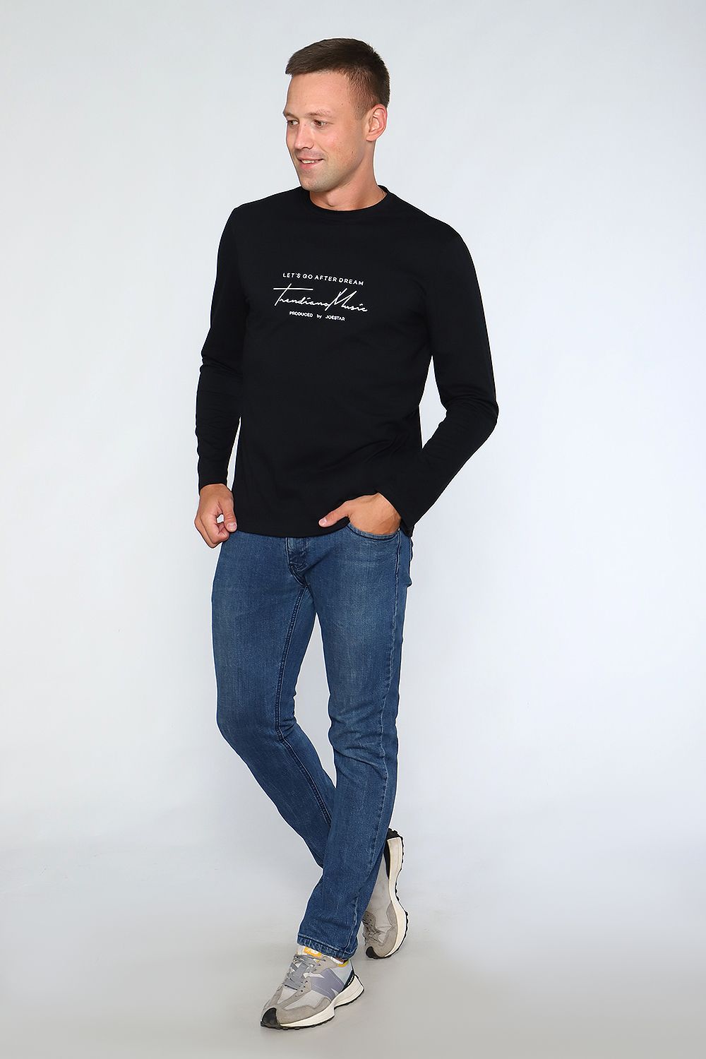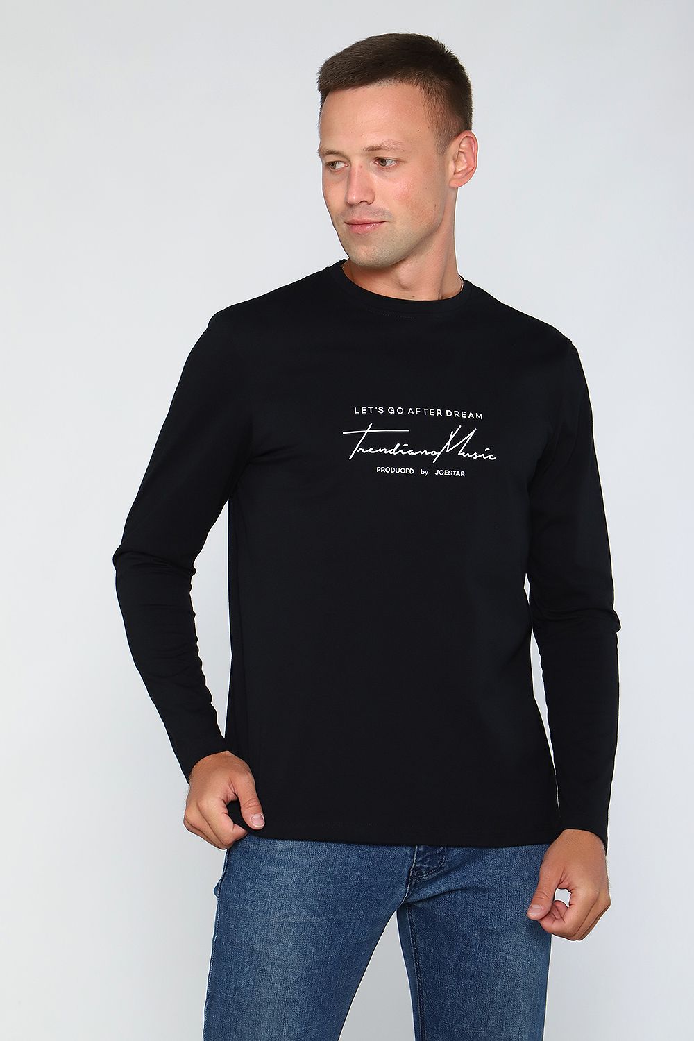 Лонгслив мужской с округлой горловиной, обработанной усилителем. Широкая футболка с длинными рукавами имеет свободный крой и классическую, не спущенную линию плеча.