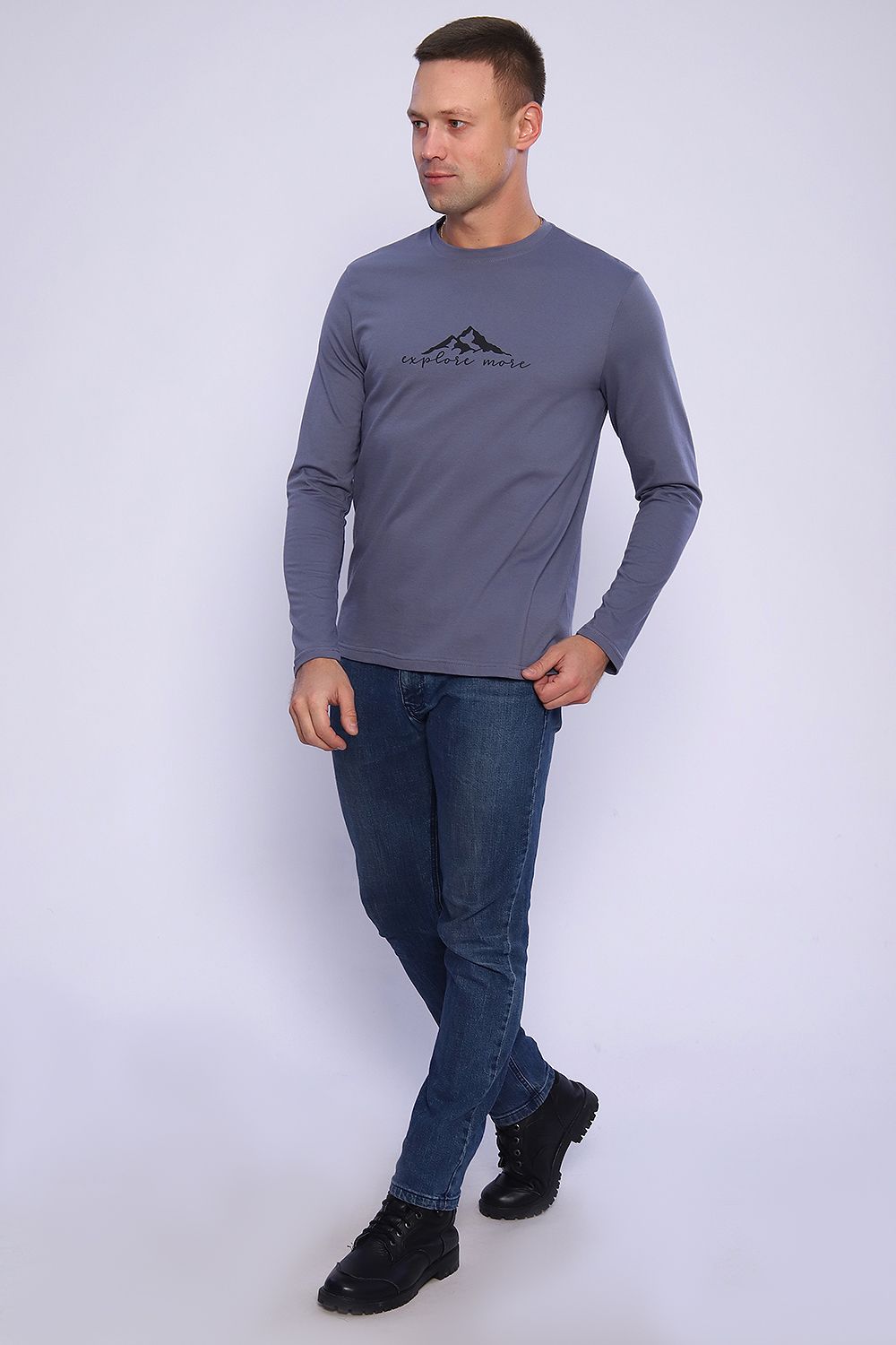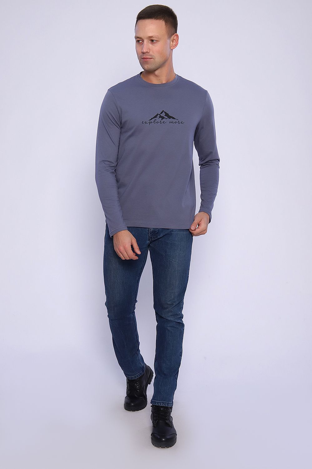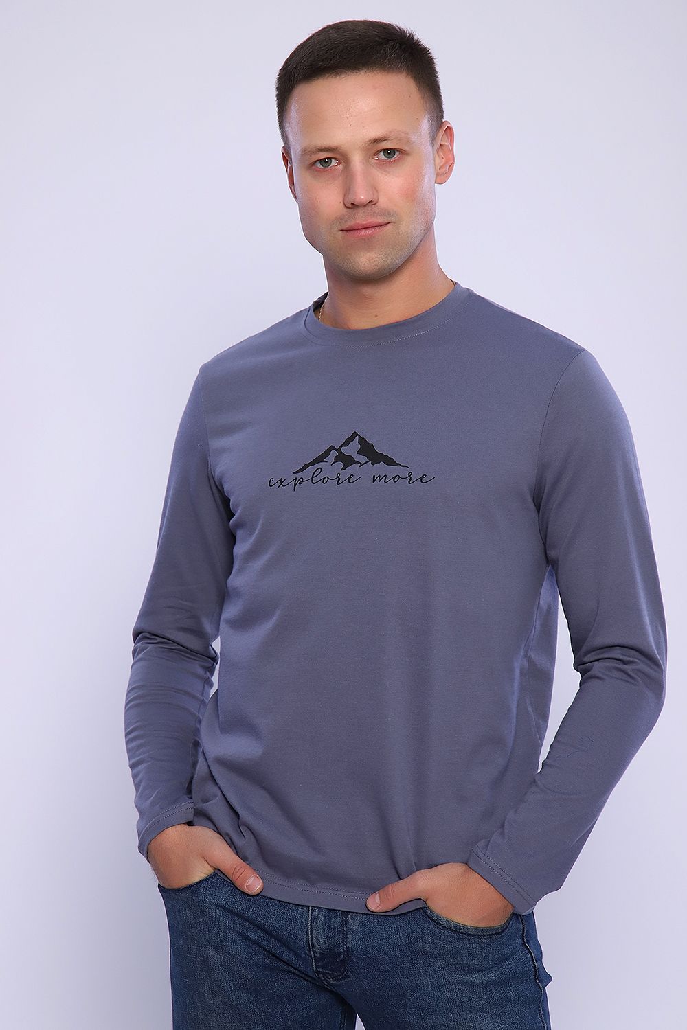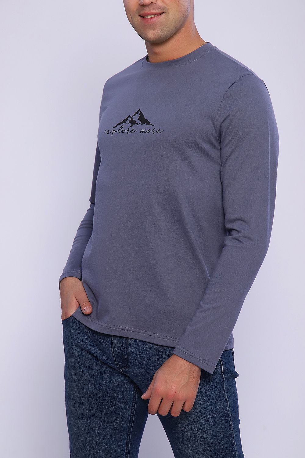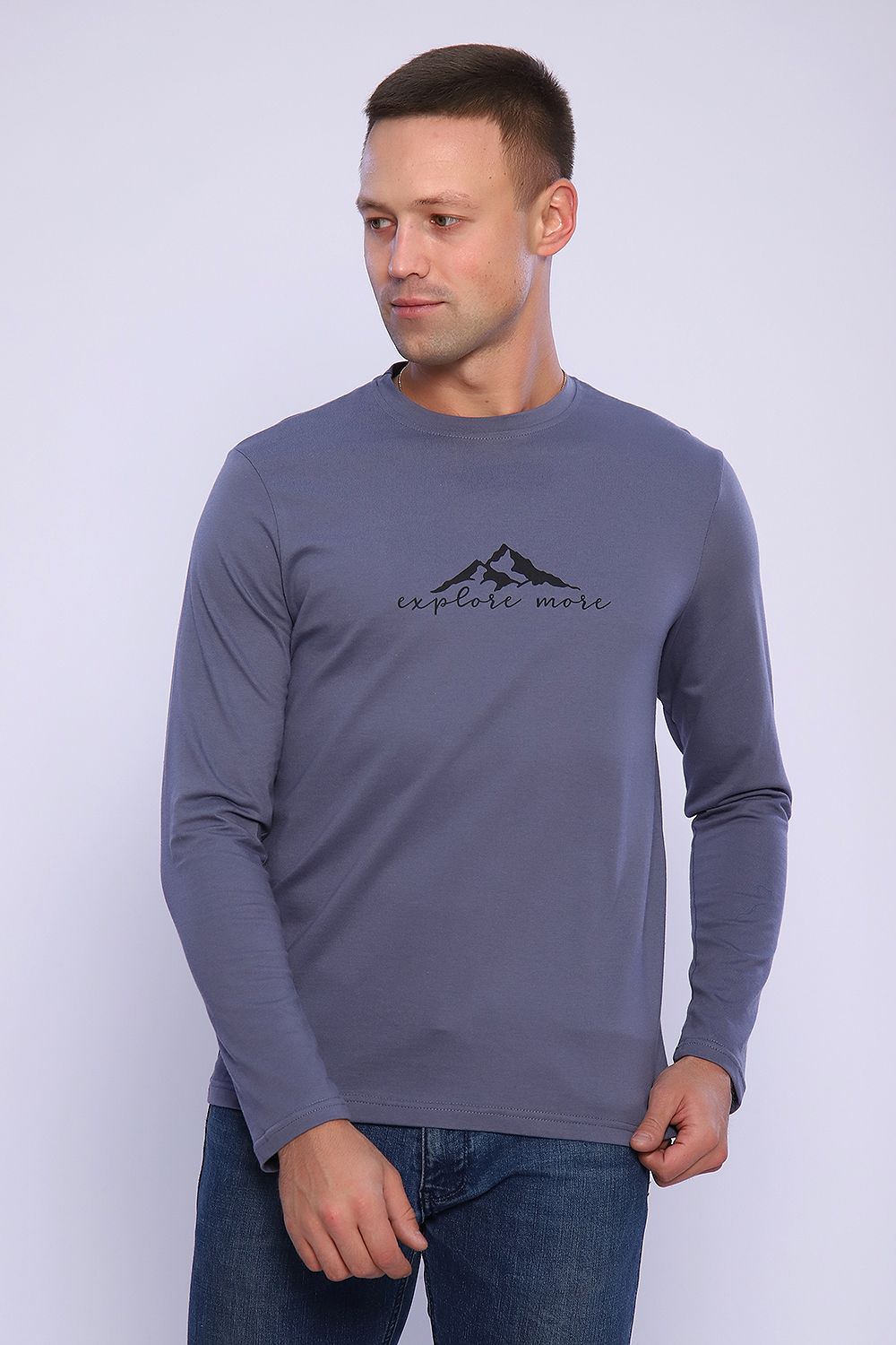 Мужская футболка с длинным рукавом, округлой горловиной обработанной усилителем, на полочке принт . Лонгслив имеет свободный покрой и классическую, не спущенную линию плеча.