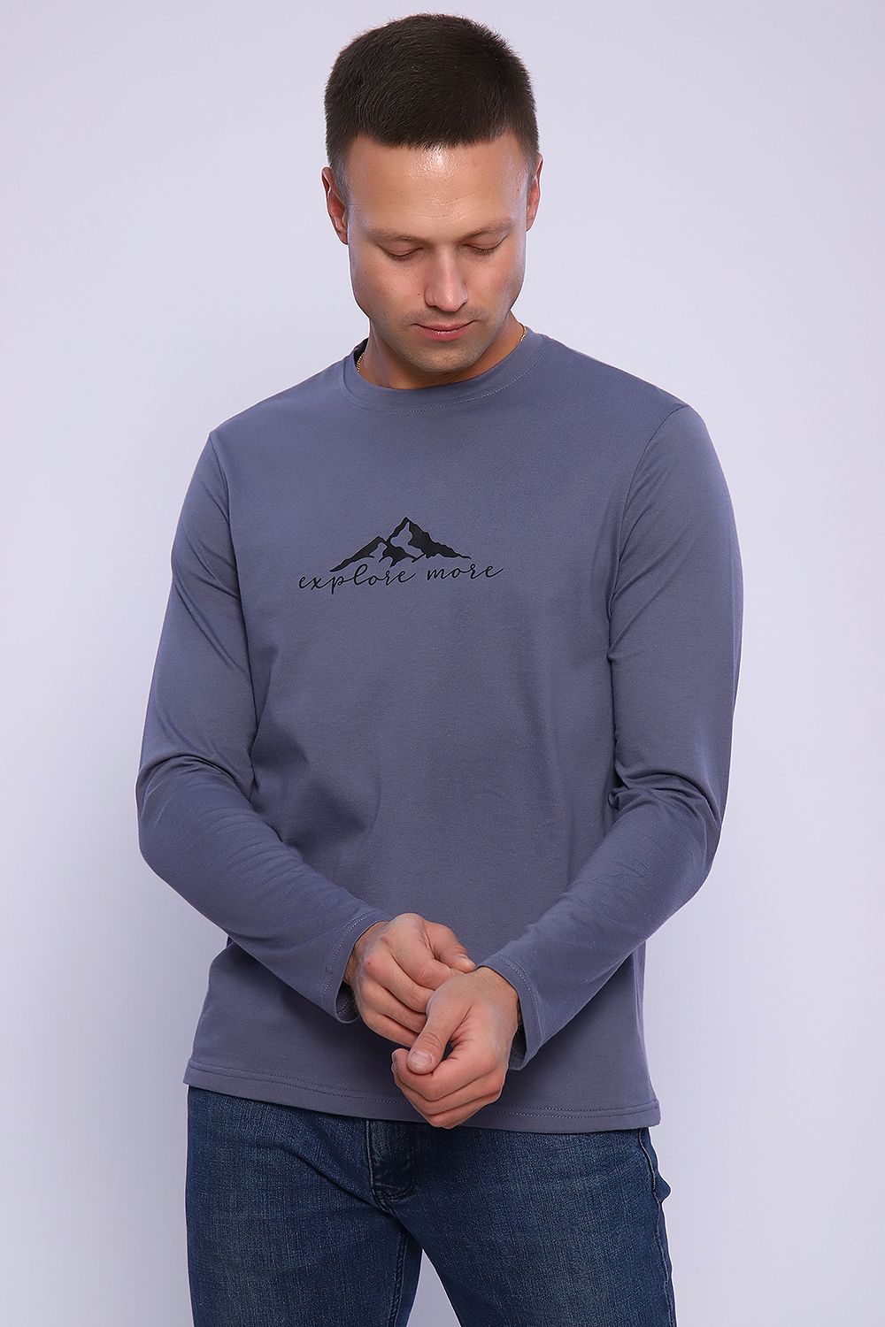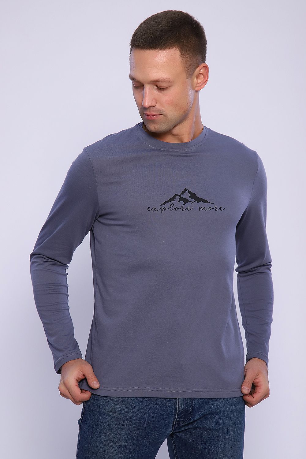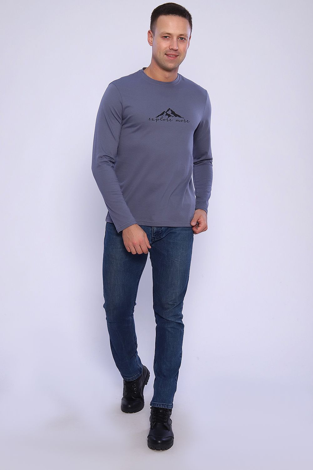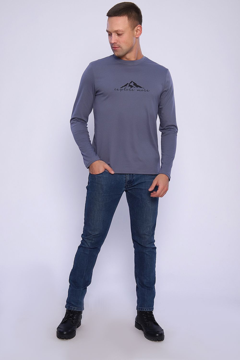 Мужская футболка с длинным рукавом, округлой горловиной обработанной усилителем, на полочке принт . Лонгслив имеет свободный покрой и классическую, не спущенную линию плеча.
