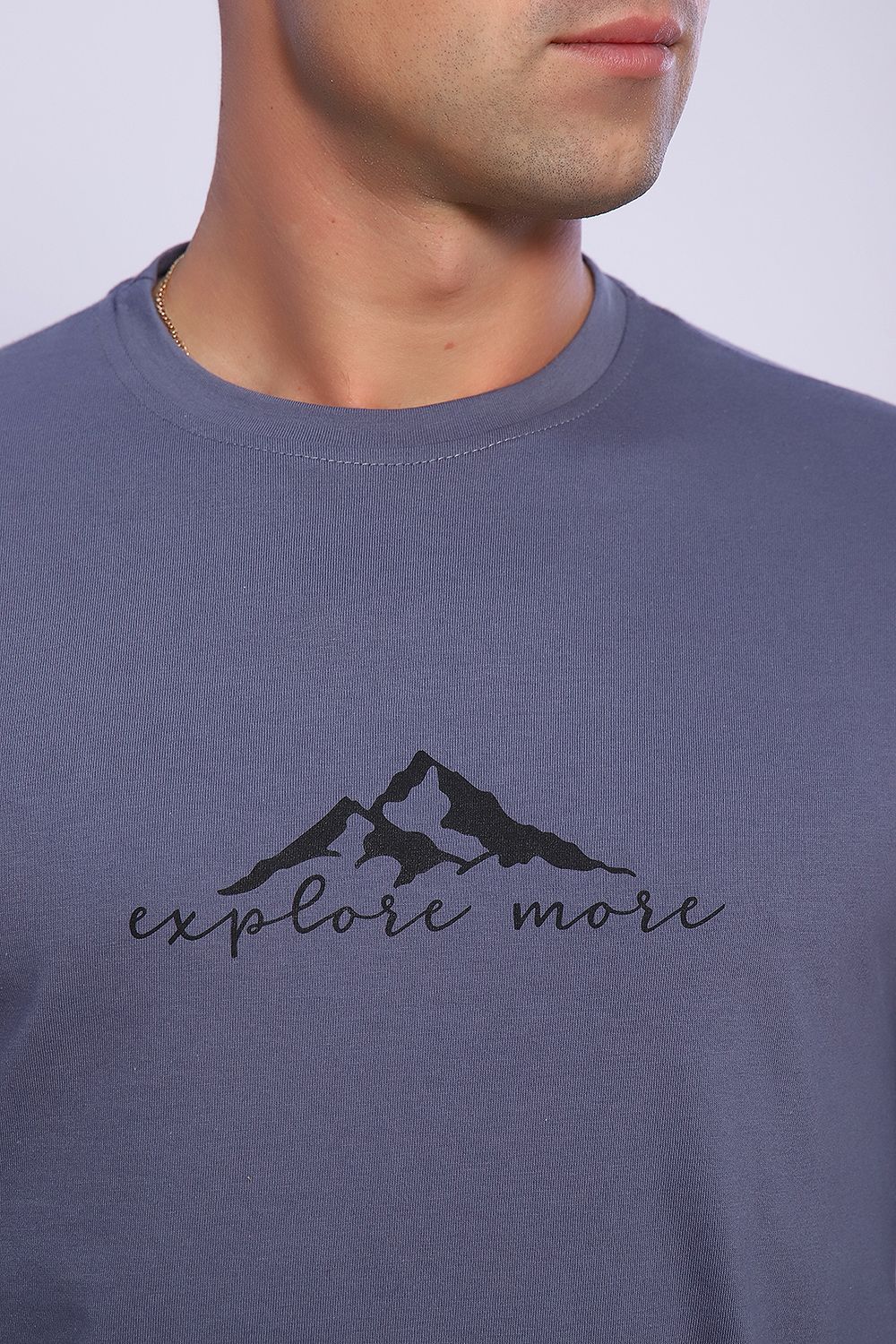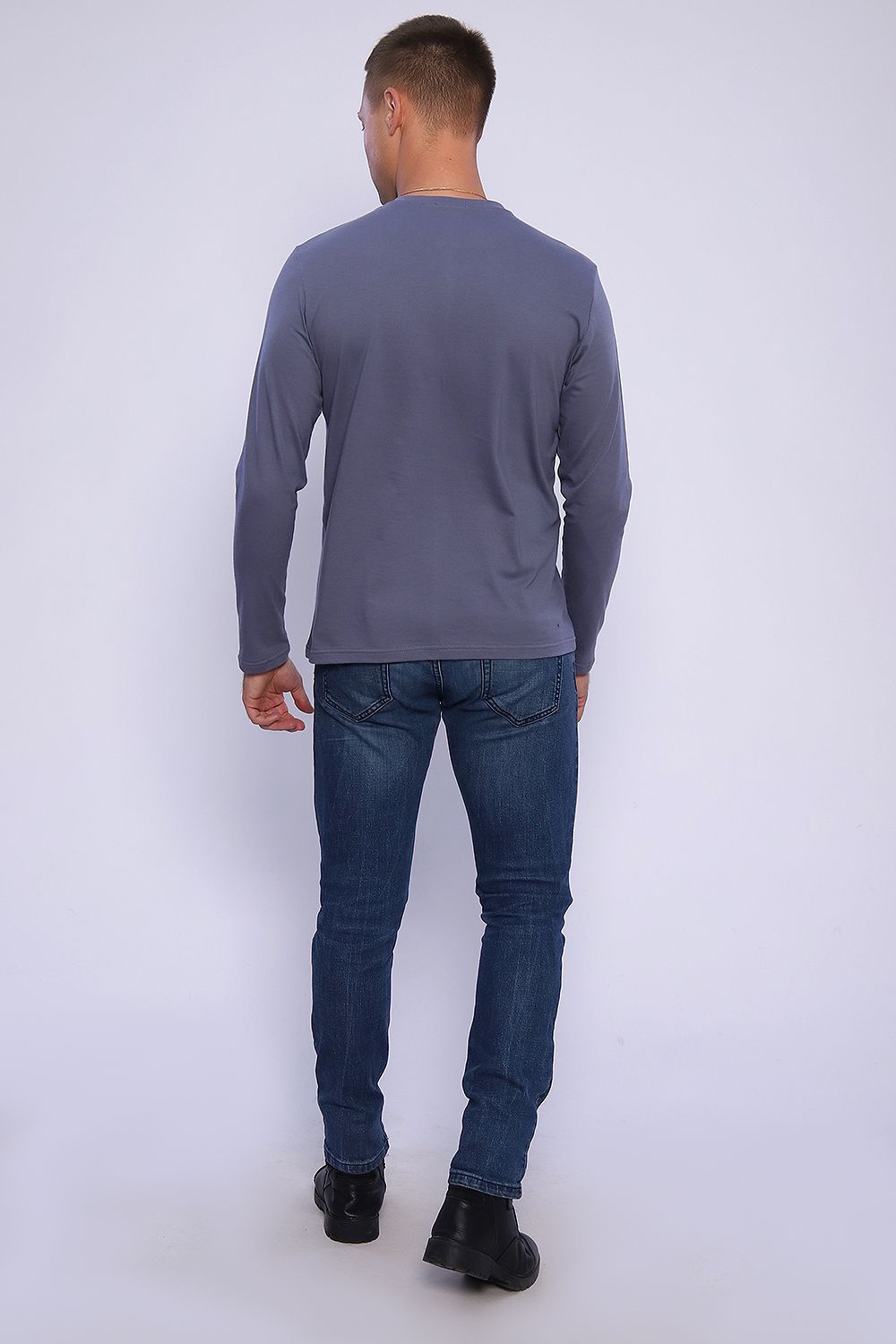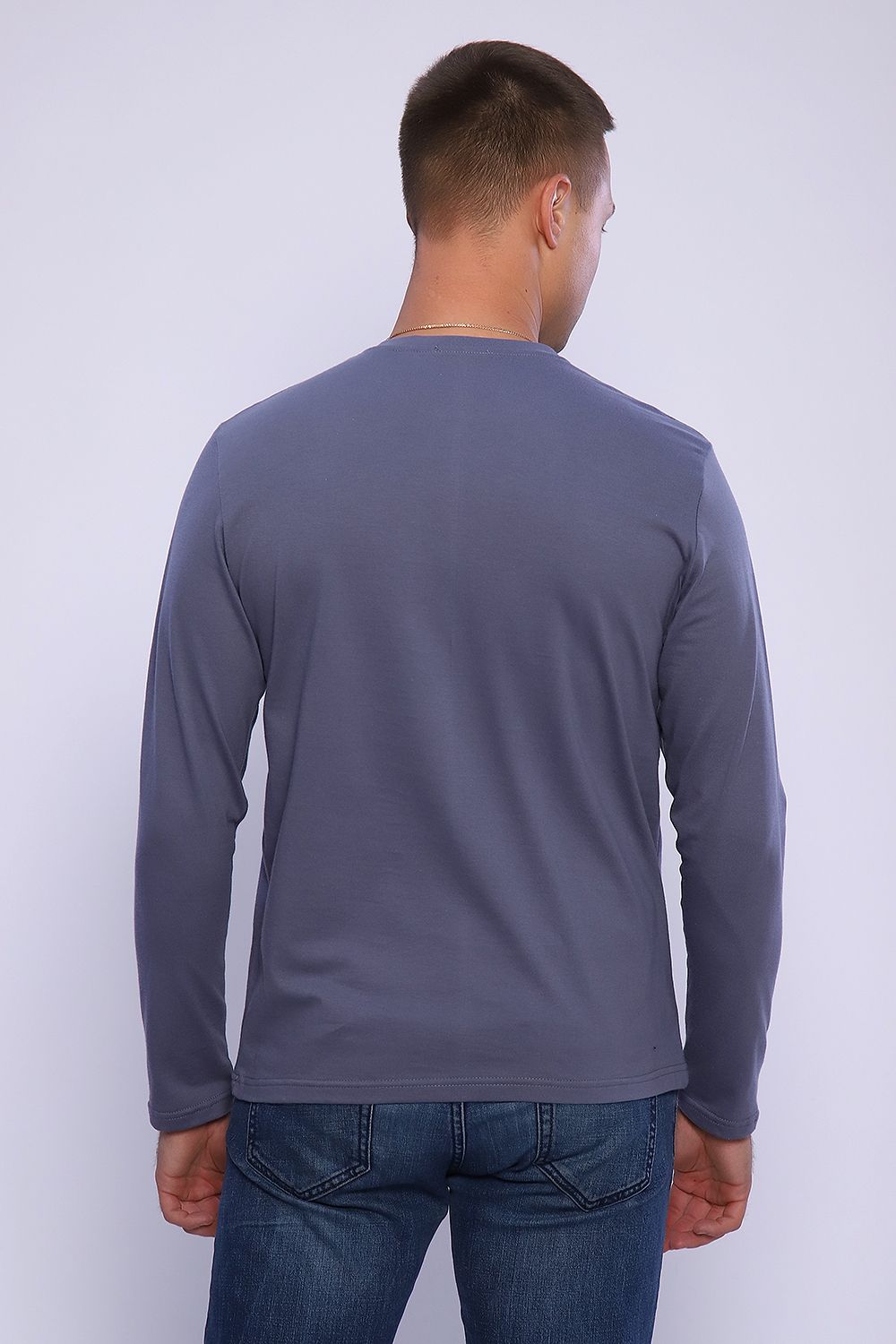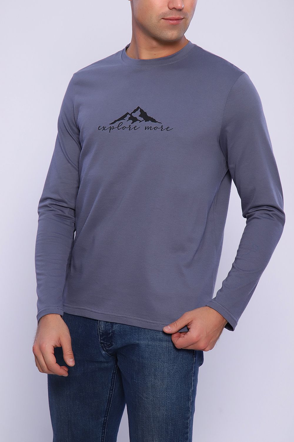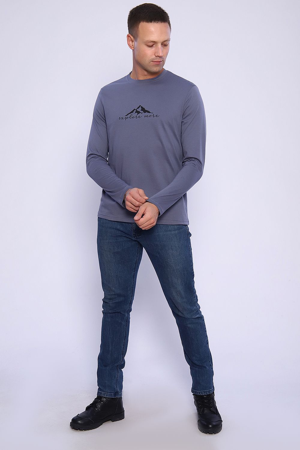 Мужская футболка с длинным рукавом, округлой горловиной обработанной усилителем, на полочке принт . Лонгслив имеет свободный покрой и классическую, не спущенную линию плеча.