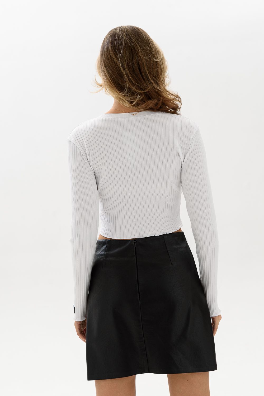 Стильный кроп-топ с длинным рукавом, имеющий фактуру в рубчик - это женский супер хит сезона! Необычный, короткий топик прилегающего кроя выполнен из мягкой, приятной к телу трикотажной ткани лапша. Молодежная модель топа прекрасно впишется в гардероб и поможет создать множество стильных образов. Топ сочетается с одеждой в спортивном, офисном и праздничном стилях. Модный кроп-топ носите с юбкой, джинсами, спортивными брюками. Ткань обладает хорошей растяжимостью.
