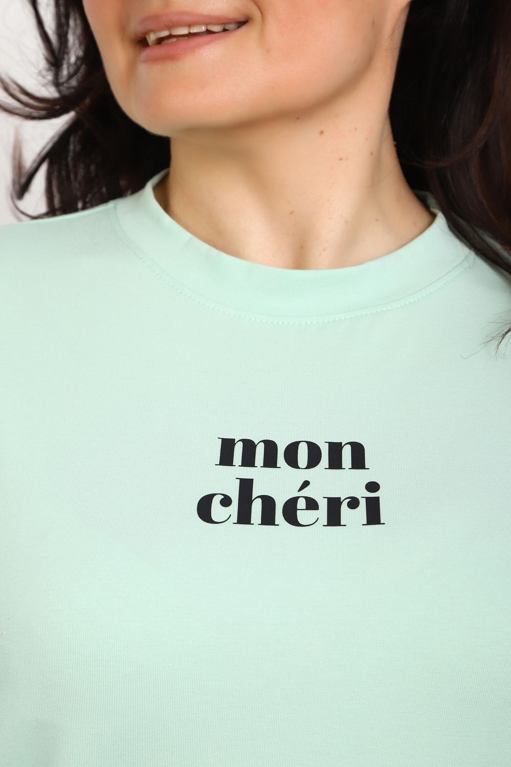 Лонгслив женский MON CHERI Женский лонгслив свободой посадки изготовлен из мягкой и приятной к телу кулирки, которая состоит из высококачественного хлопка (95%) и небольшого процента лайкры (5%), обеспечивающей лёгкую эластичность и долговечность изделия. Свободный прямой и удлиненный крой подчеркивает удобство и расслабленный стиль, позволяя носить его ежедневно. Длинные рукава и круглая горловина создают гармоничный внешний вид, подчеркивая женственность и утончённость. Элегантный минималистичный принт на груди с романтичным французским выражением "Mon Cheri" привносит особую атмосферу романтики и легкости в образ. Важным преимуществом является сдвоенный размер, позволяющий комфортно подобрать модель каждой женщине, независимо от особенностей фигуры. Данный лонгслив станет идеальным выбором для тех, кто ценит сочетание комфорта, удобства и современного дизайна.