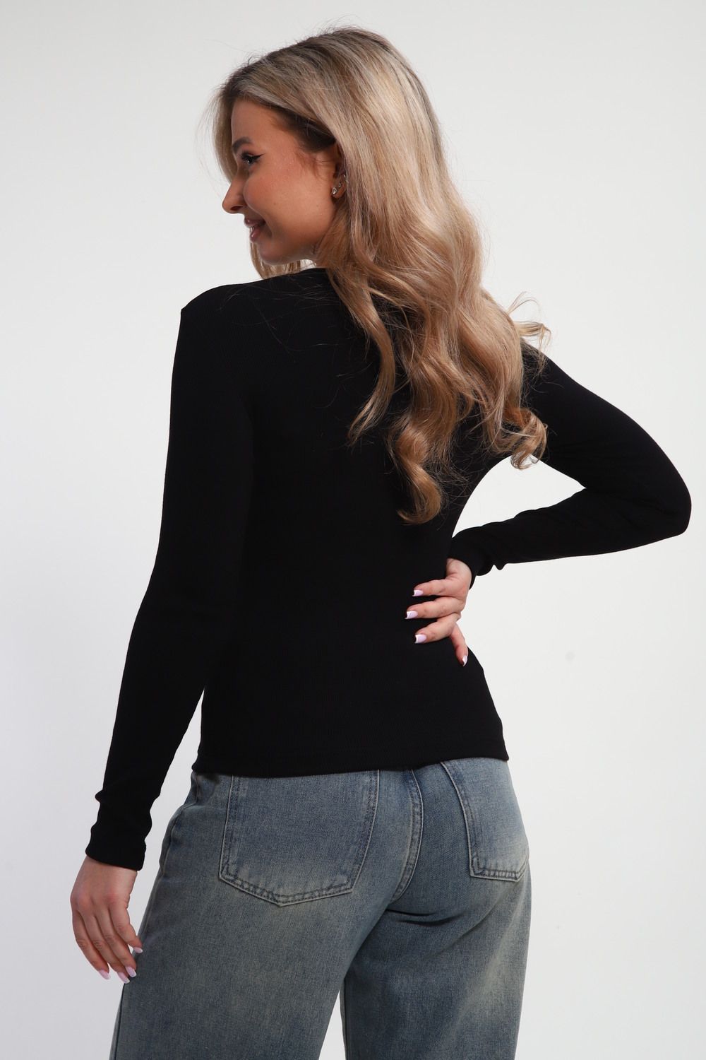 Лонгслив женский облегающий со швом ЛГ-03 - черный