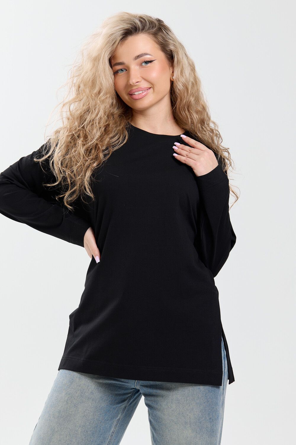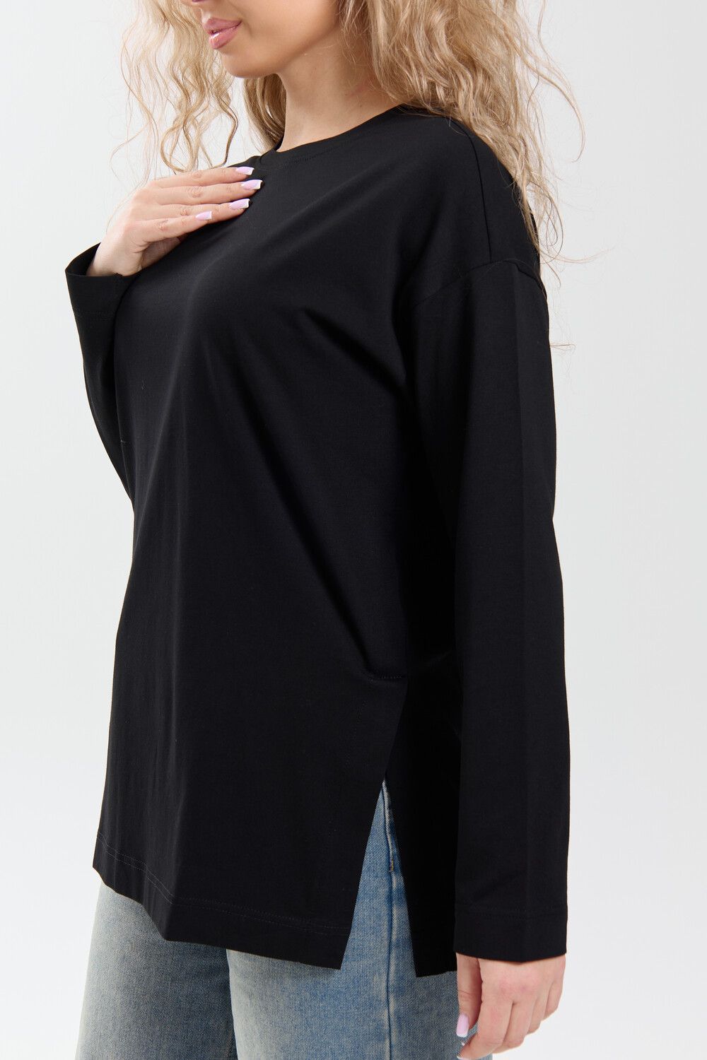 Лонгслив женский оверсайз 26014 - черный