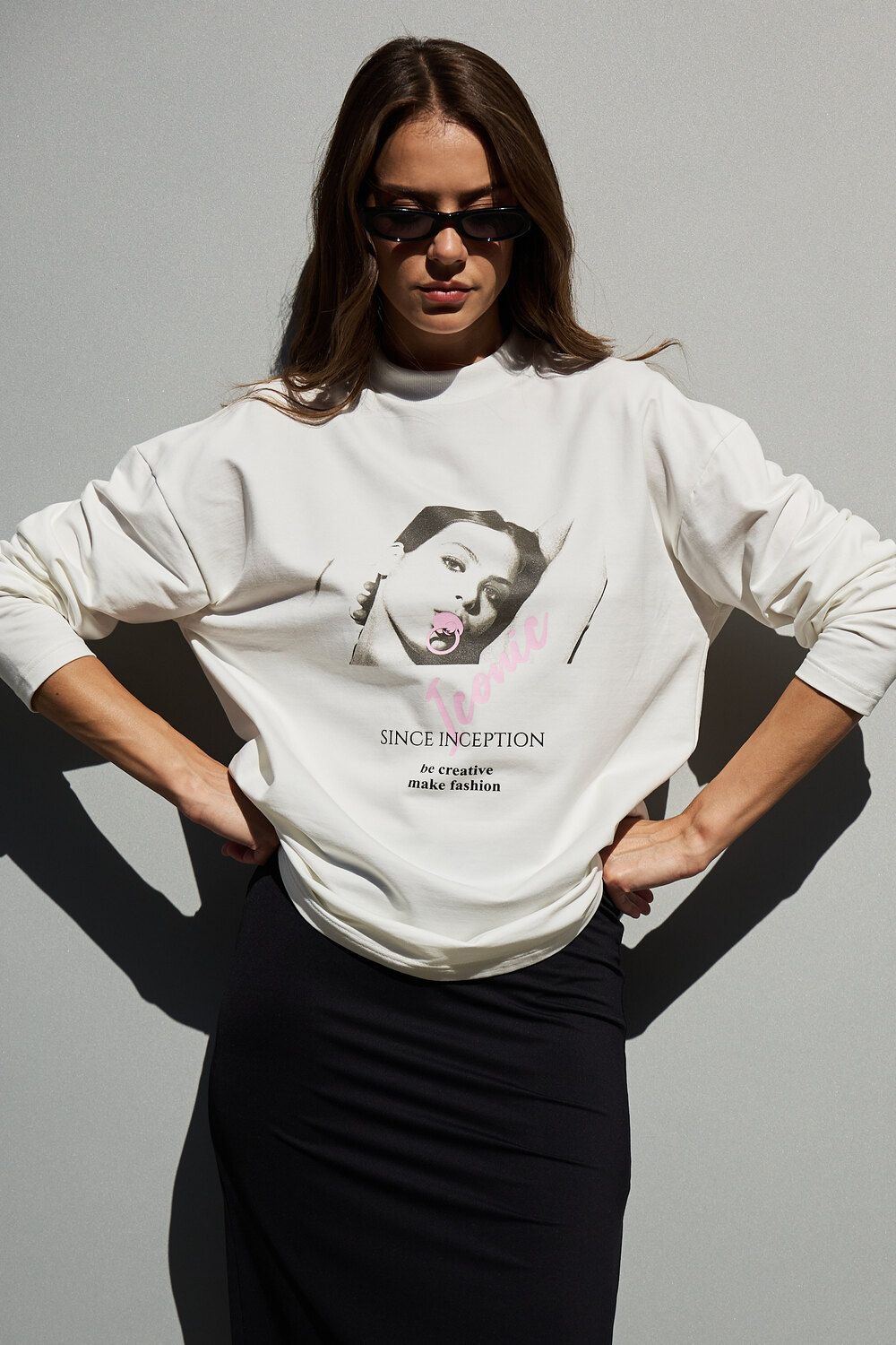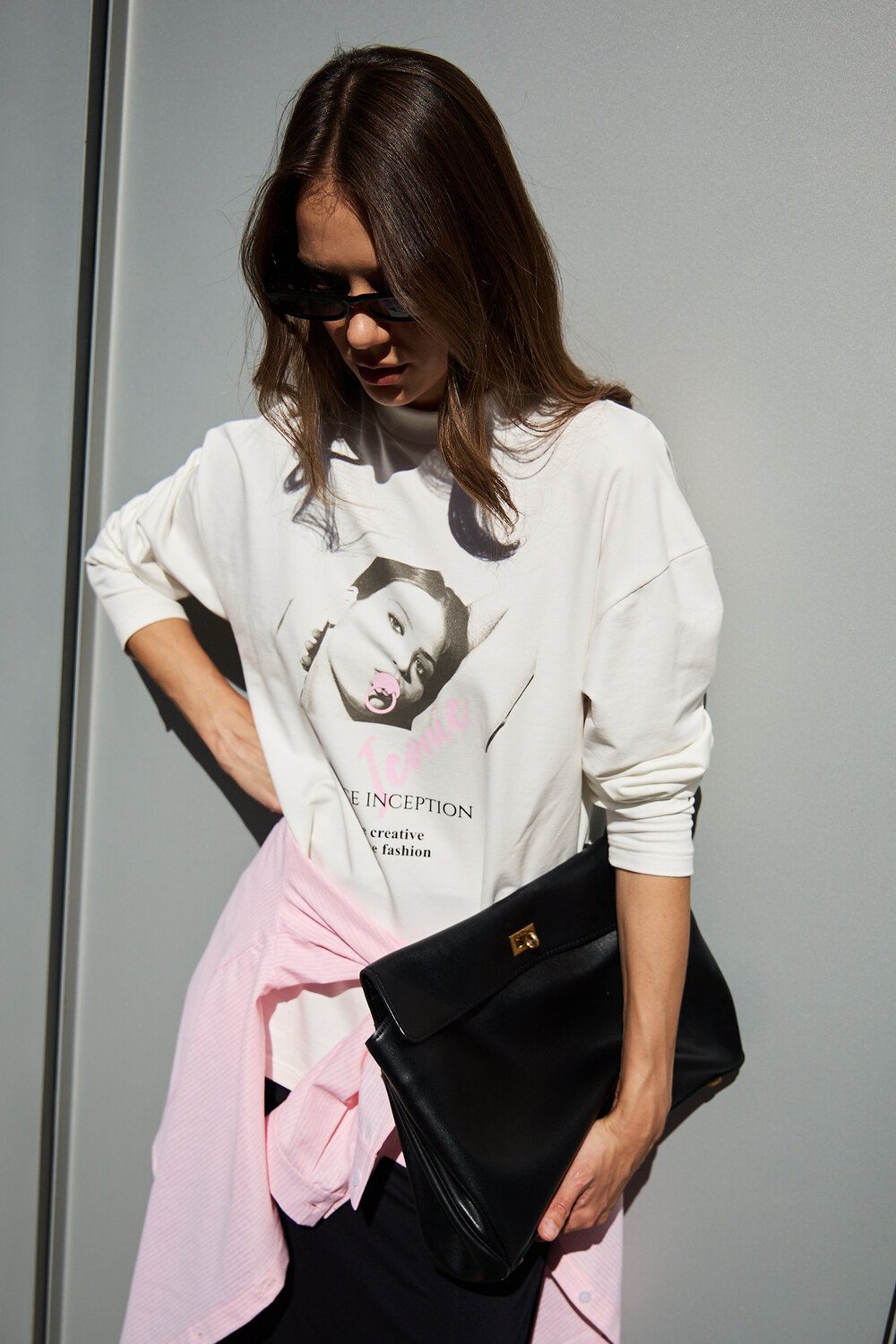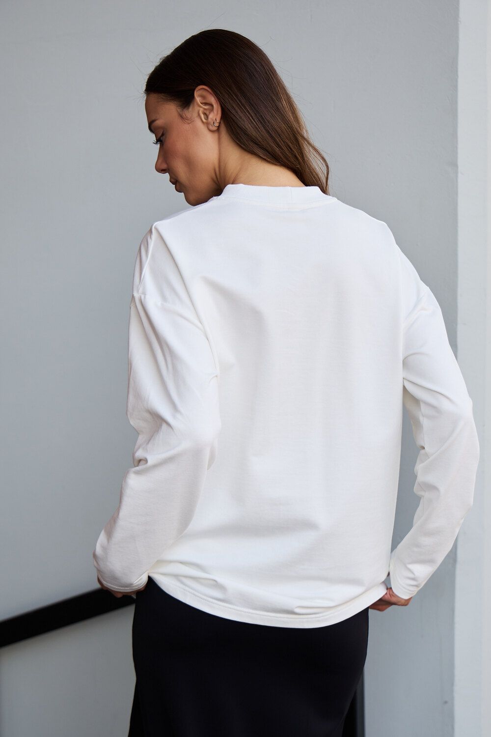 Лонгслив женский оверсайз идеально подойдет для создания модного образа . Эта кофточка с длинным рукавом станет универсальным элементом гардероба, гармонируя с любыми вещами.