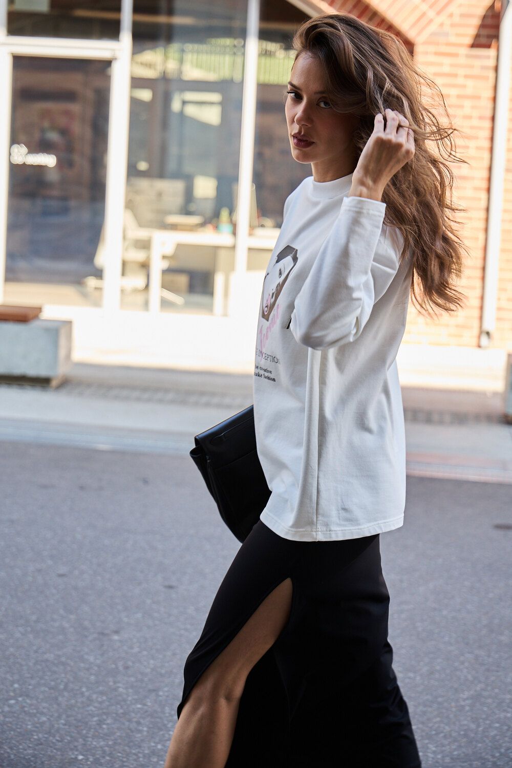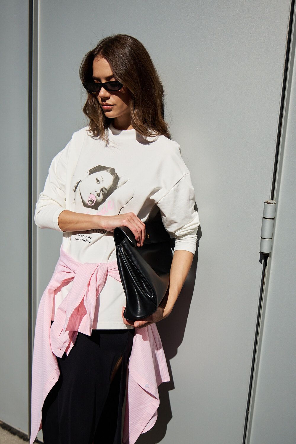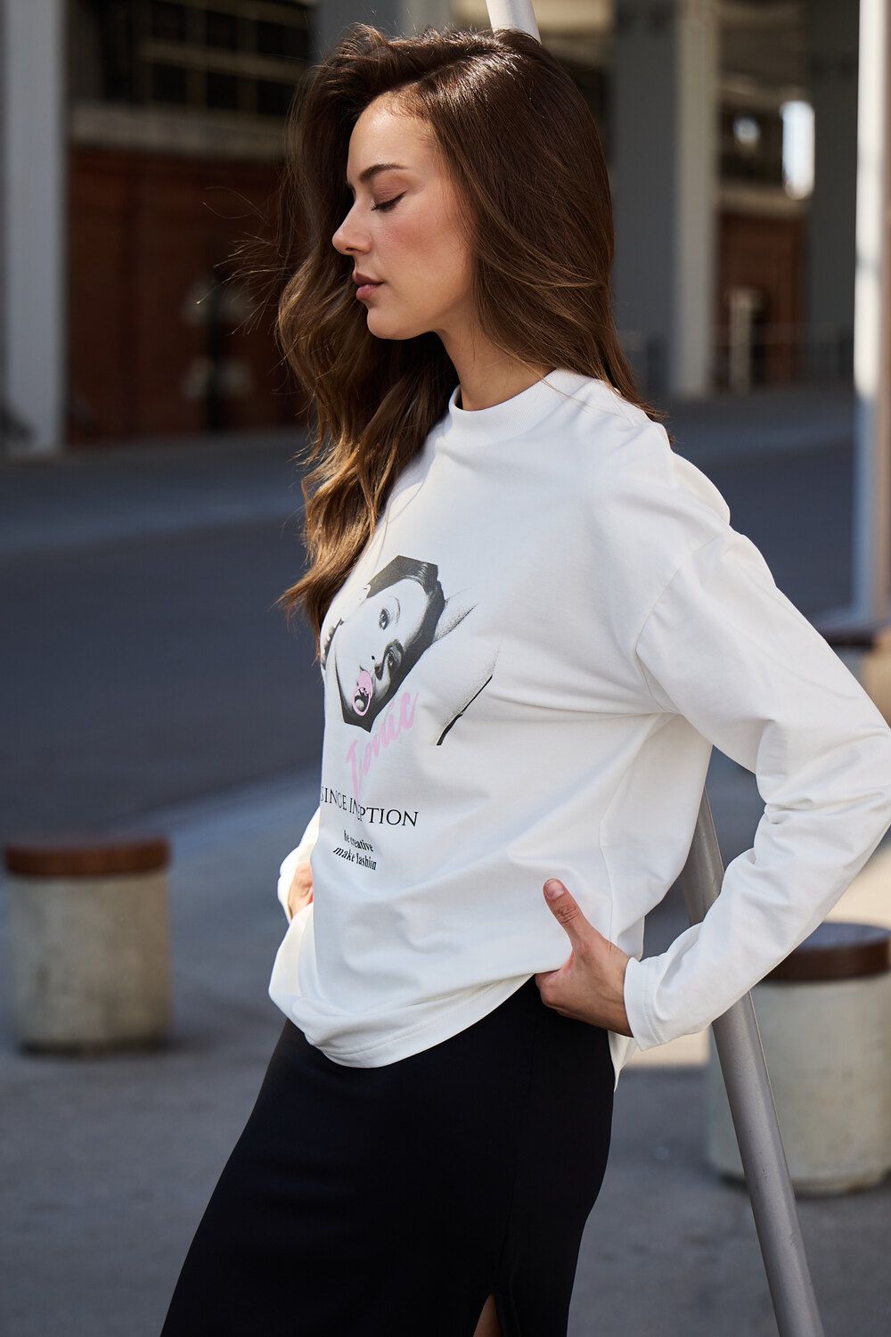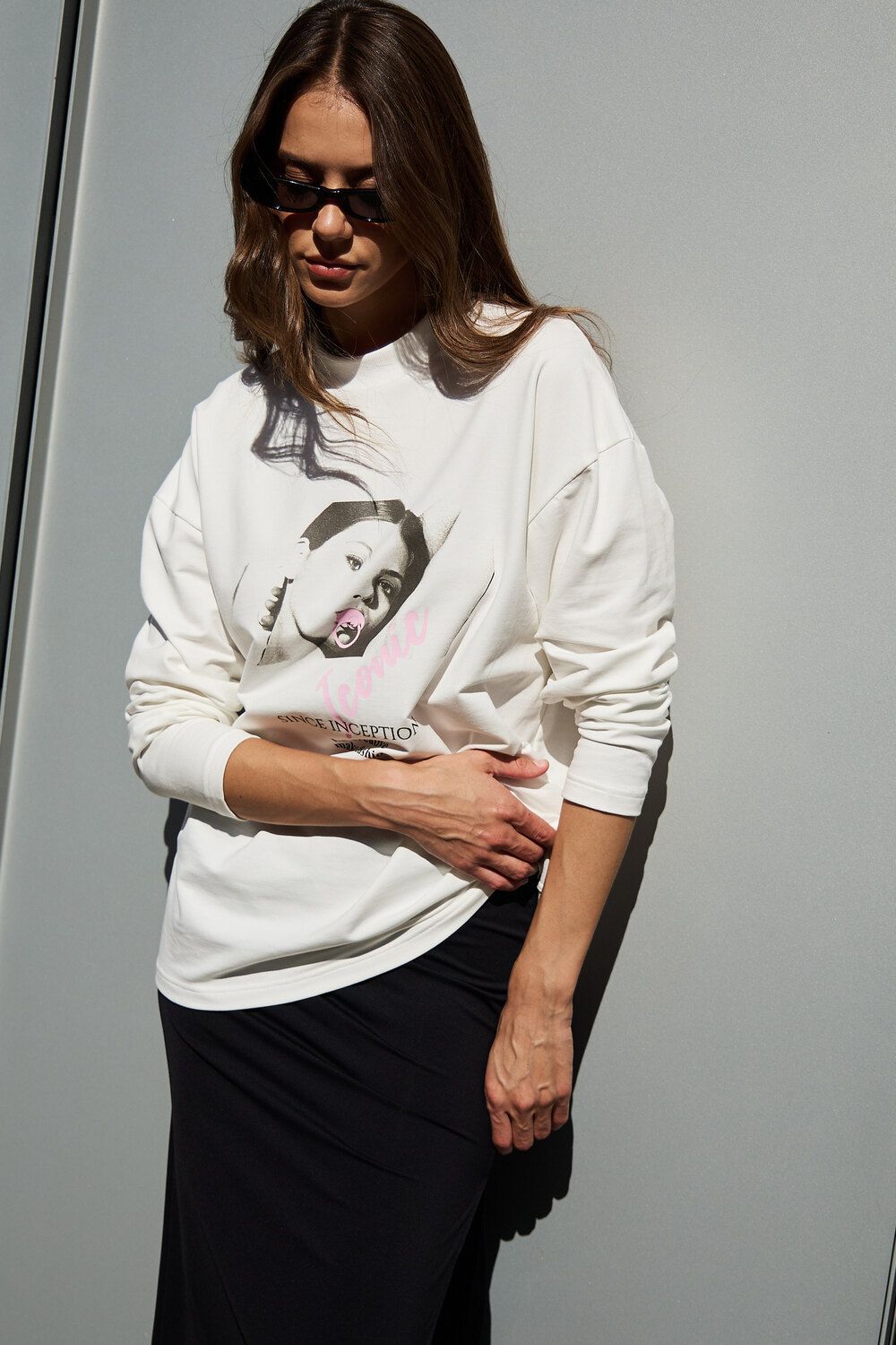 Лонгслив женский оверсайз идеально подойдет для создания модного образа . Эта кофточка с длинным рукавом станет универсальным элементом гардероба, гармонируя с любыми вещами.