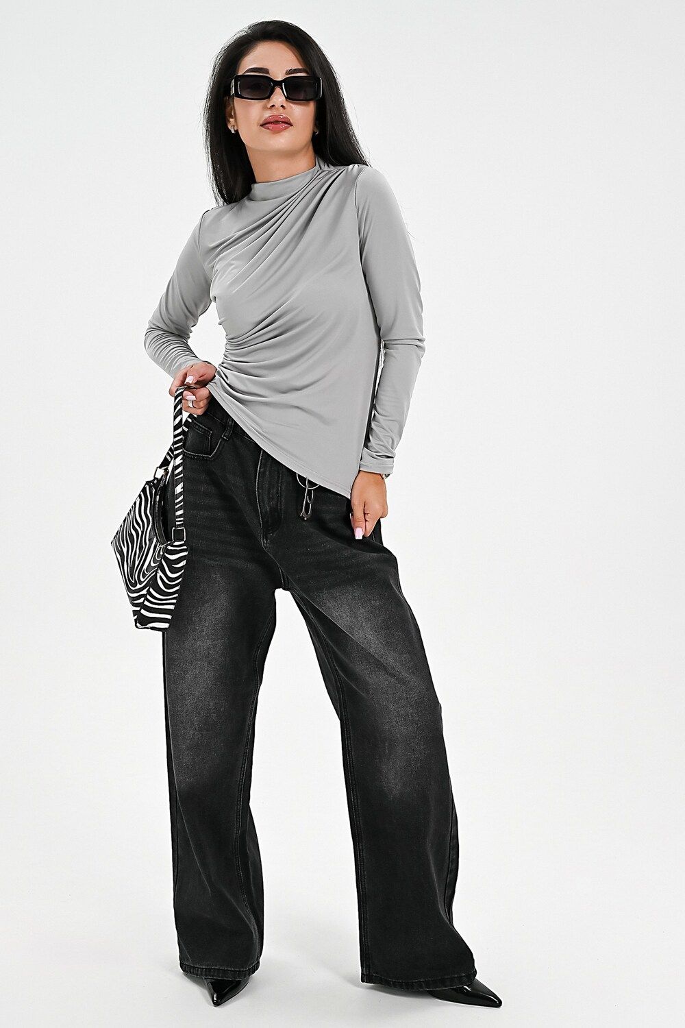 Лонгслив с драпировкой - серый